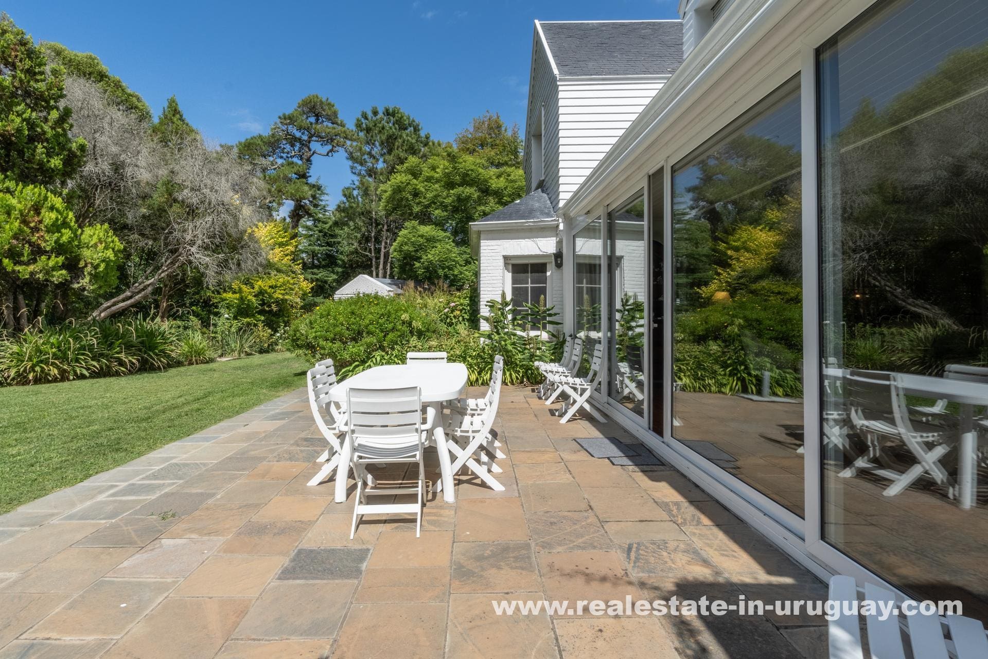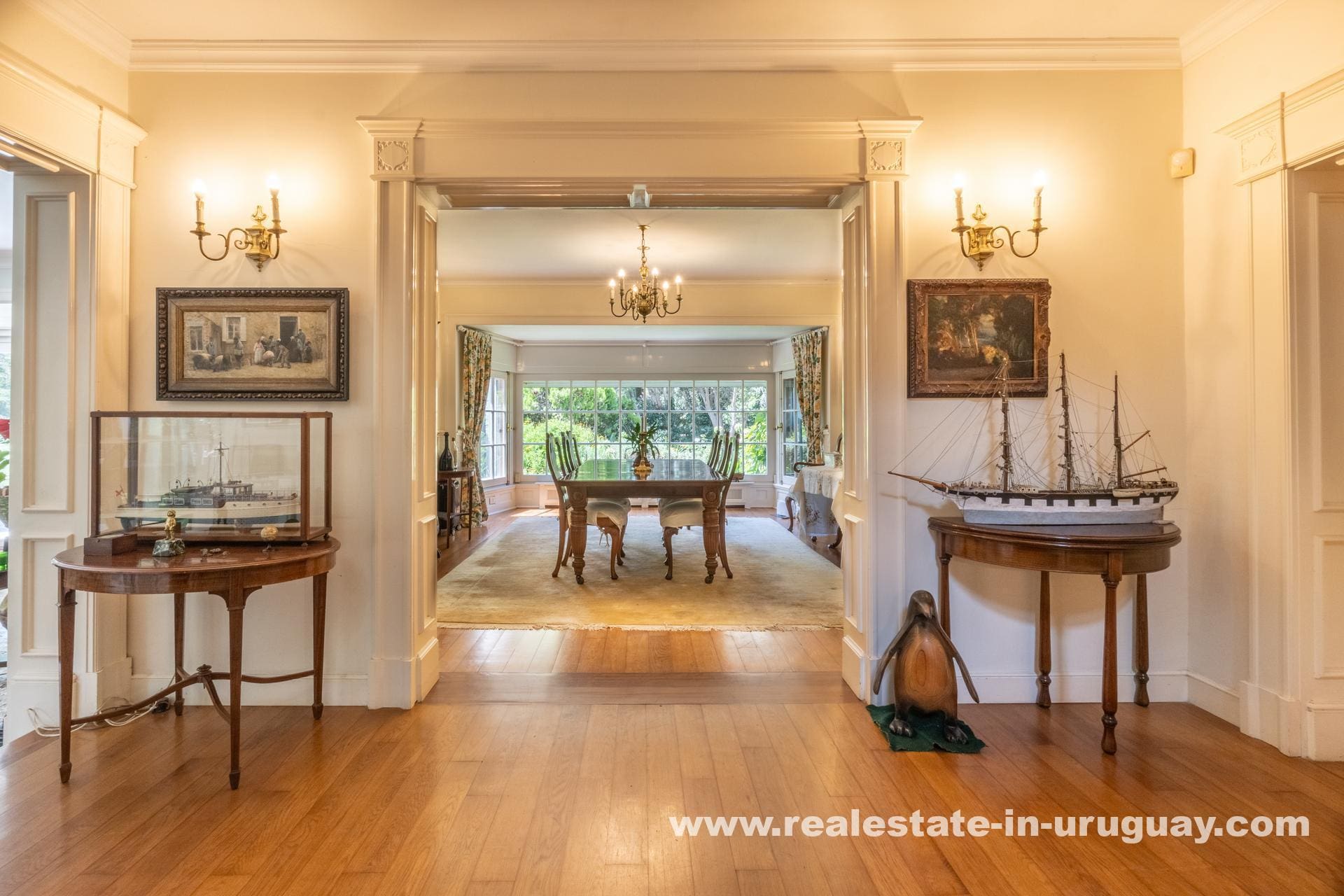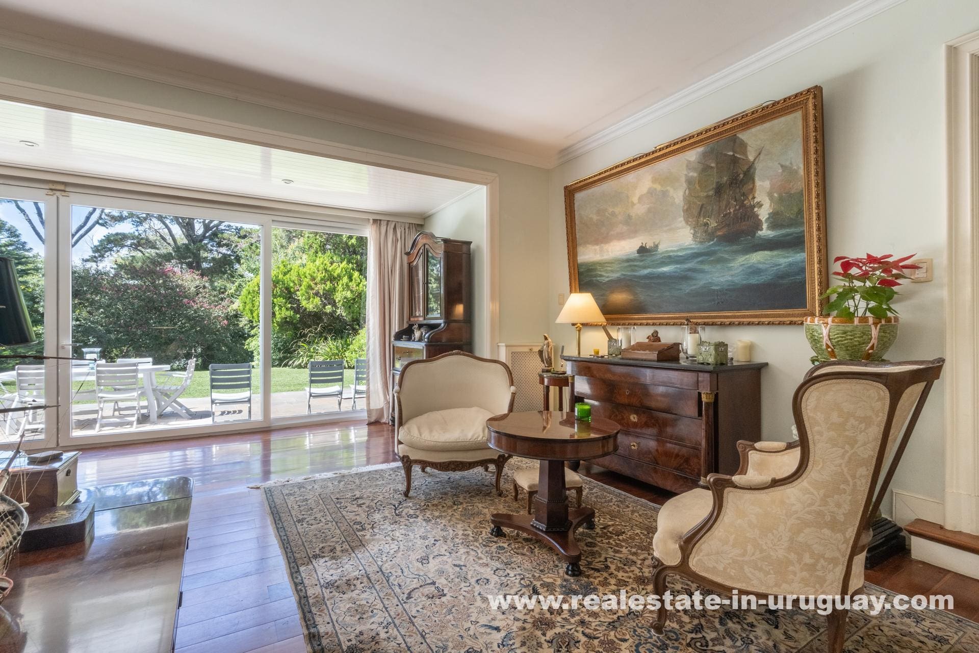 Nestled in the exclusive El Golf neighborhood of Punta del Este, Uruguay, “Miraflores” is a quintessential representation of classic luxury. Designed in 1948 by renowned architect Carlos Boxer Anaya, this residence stands as a testament to timeless elegance. The property spans over half a hectare of meticulously landscaped parkland, crafted by the English landscape designer Coombs. The grounds boast mature specimens like ginkgo biloba, oaks, and elms, ensuring privacy and an elegant aesthetic.