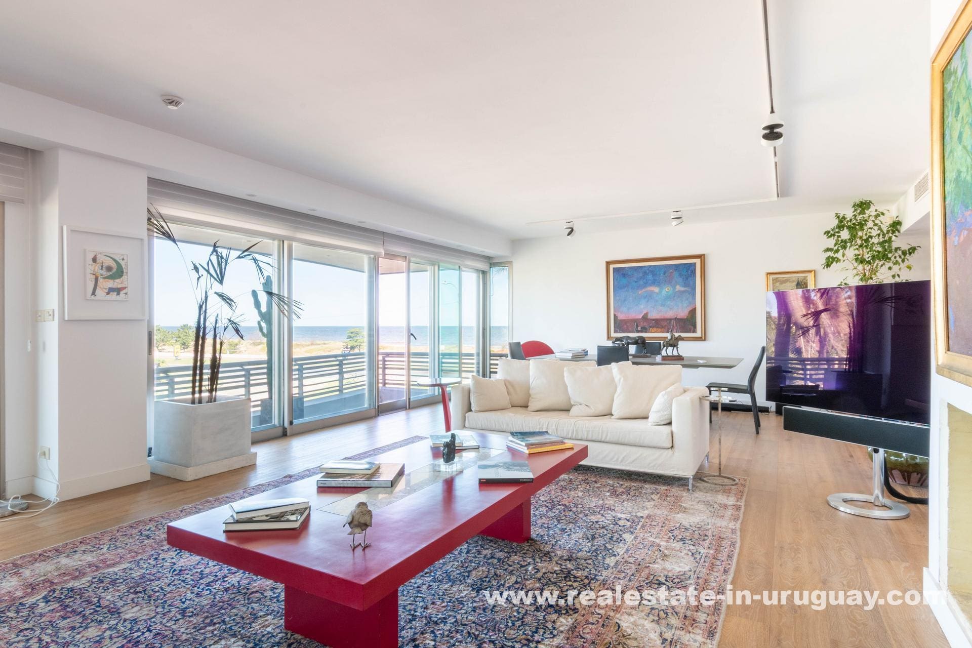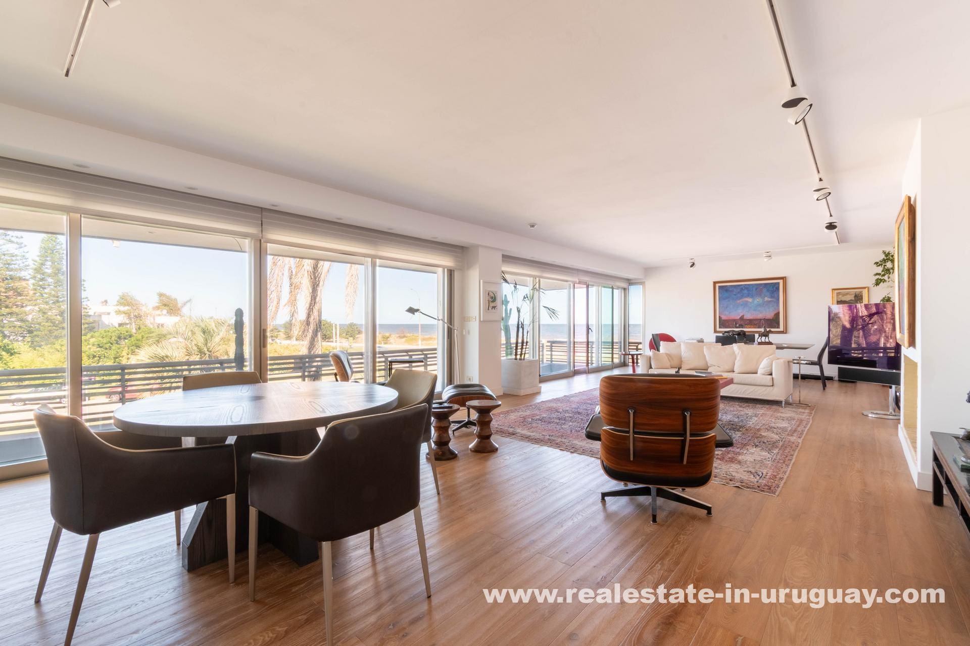 Discover the epitome of luxury living with this sophisticated 3-bedroom apartment situated on the prestigious Carrasco Rambla. This property embodies refined coastal living, offering a blend of comfort, modern design, and unparalleled location. Within its expansive 296 m² of interior space, residents are greeted by an elegant entry hall leading to an open living and dining area, enriched with natural light and views of the Rambla.