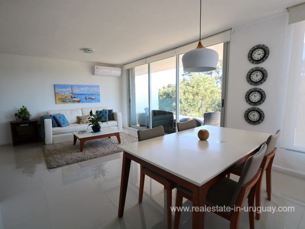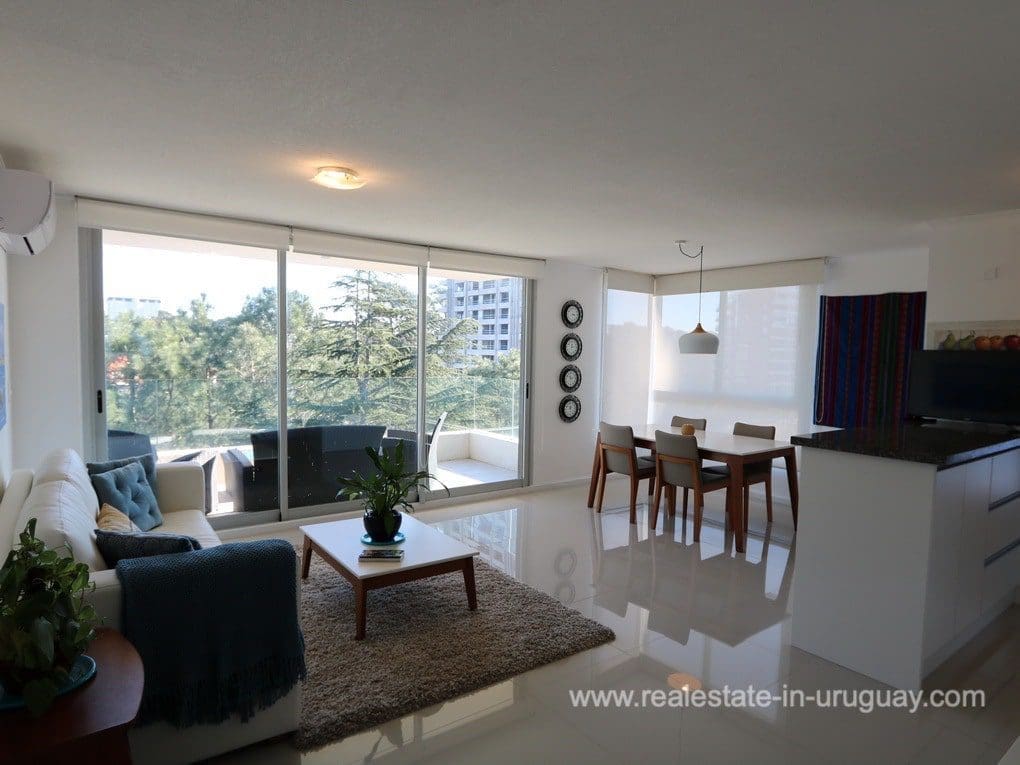 Presenting a fantastic city apartment in Punta Del Este on Roosevelt Avenue, located centrally on Parada 16 near all amenities. This unit is on the 5th floor of a six-story building, just about two minutes from Mansa Beach. It has been tastefully furnished and features a bright and open concept living/dining area with a pull-out sofa to become a queen size bed, an open kitchen fully equipped, a large balcony, one bedroom with queen size bed, a built-in wardrobe, and 1 bathroom with a shower. The building offers an indoor heated pool, an outdoor pool on the rooftop with a sun deck, a BBQ room, a gym, and a playroom—an ideal place to spend your vacation over Christmas and New Year’s in Punta del Este.