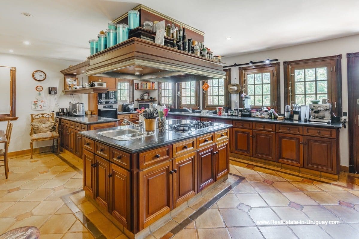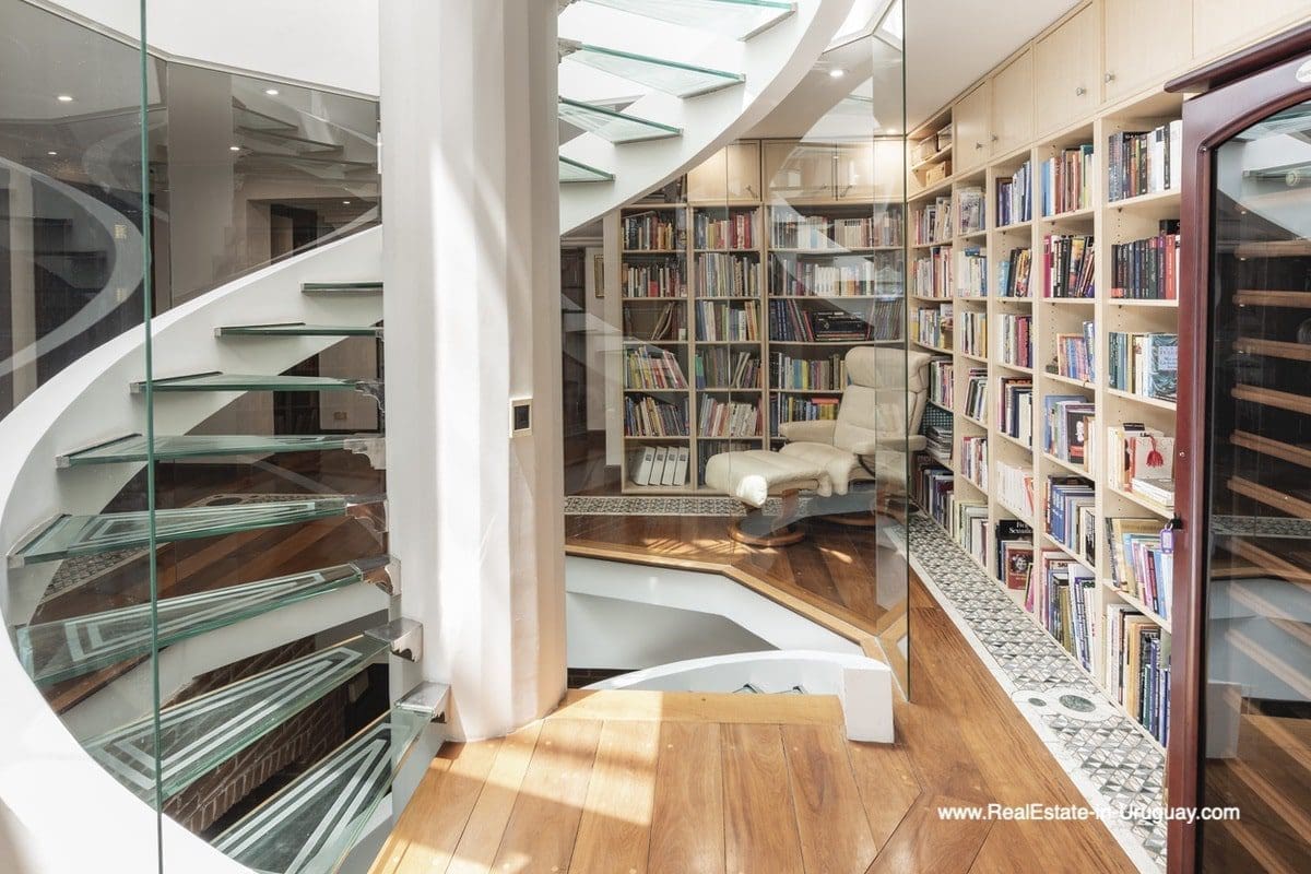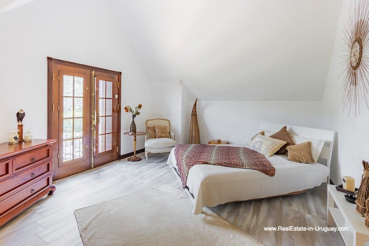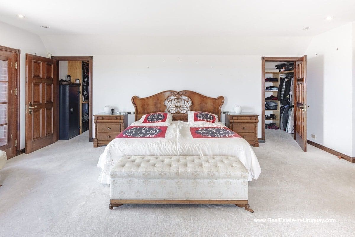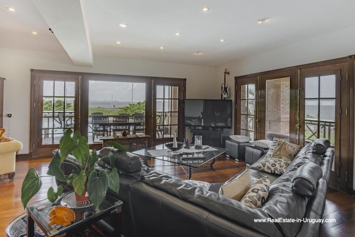 This frontline estate on the Mansa Beach in Punta del Este is one of a kind. It is a traditional villa very well built with double cavity walls. The woodwork in the interior shows excellent craftsmanship, which is hard to find nowadays. Many rooms have original hardwood floors and doors.The classical Uruguayan style mansion sits on a large piece of prime land and offers stunning views to the ocean, Isla Gorriti, and the Punta del Este skyline. On the main level are a large living room with a study, dining room, the main kitchen, and a second smaller kitchen. The enclosed BBQ room features an indoor pool which leads to an enormous outdoor pool and deck, inviting for great entertainment. There are three bedrooms on the main level of which two are duplex with en-suite bathrooms. A glass staircase leads to the upper level with four more bedrooms, including the master suite. The master bathroom is a piece of art by itself, all done with mosaic tiles. Opposite the master suite is a large dressing room which used to be another bedroom. On the ground floor is a huge garage with room for at least 4-6 cars, a cinema room, and gym area as well as a servant quarter with a bedroom and bathroom, kitchen and living area. An exceptional property ideal for someone who prefers to be away from downtown, but still likes to be close to all schools and amenities. The property sits on elevated land and is protected by a berm and provides absolute privacy. Please contact us for a viewing to fully appreciate the location, quality, and views of this property.