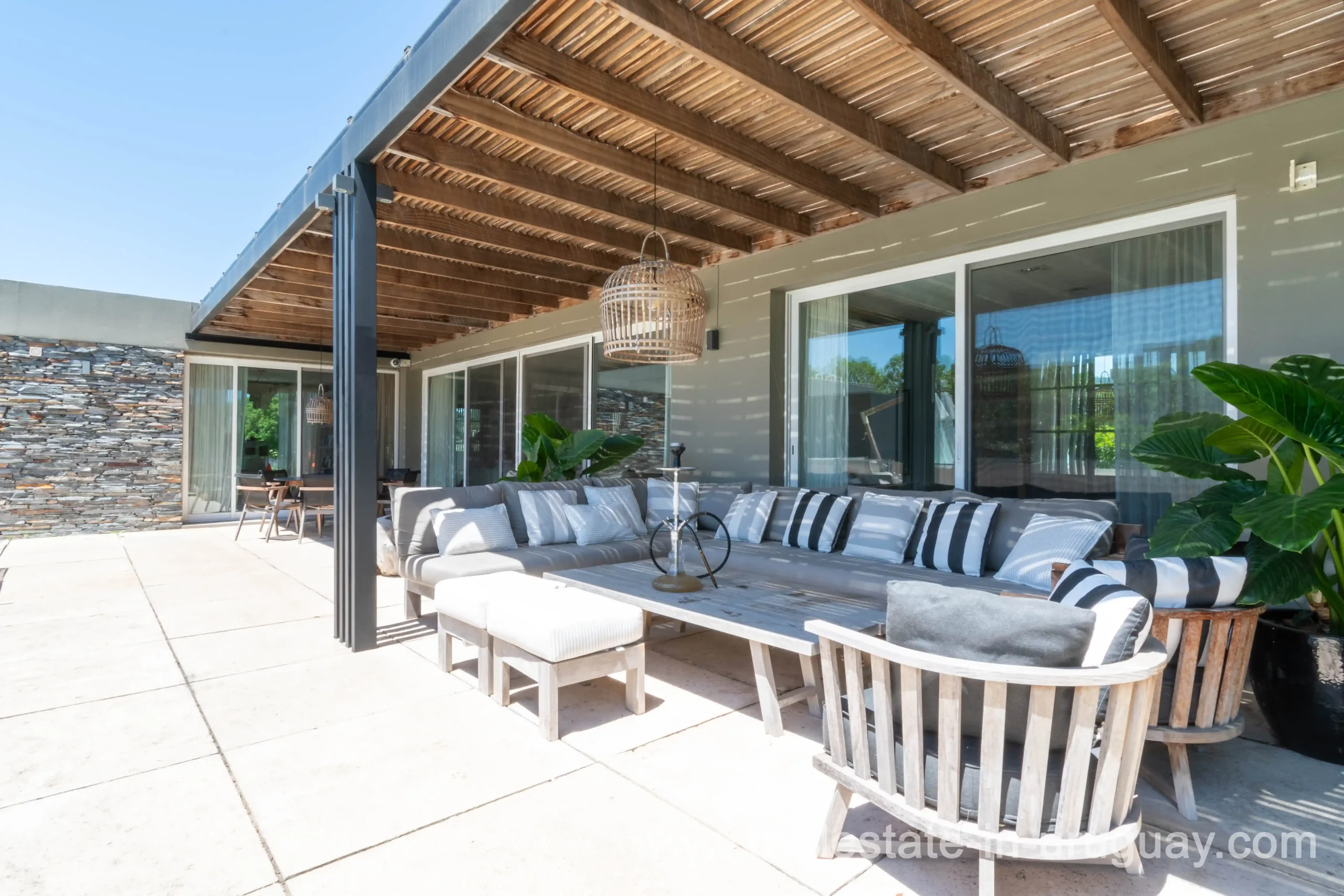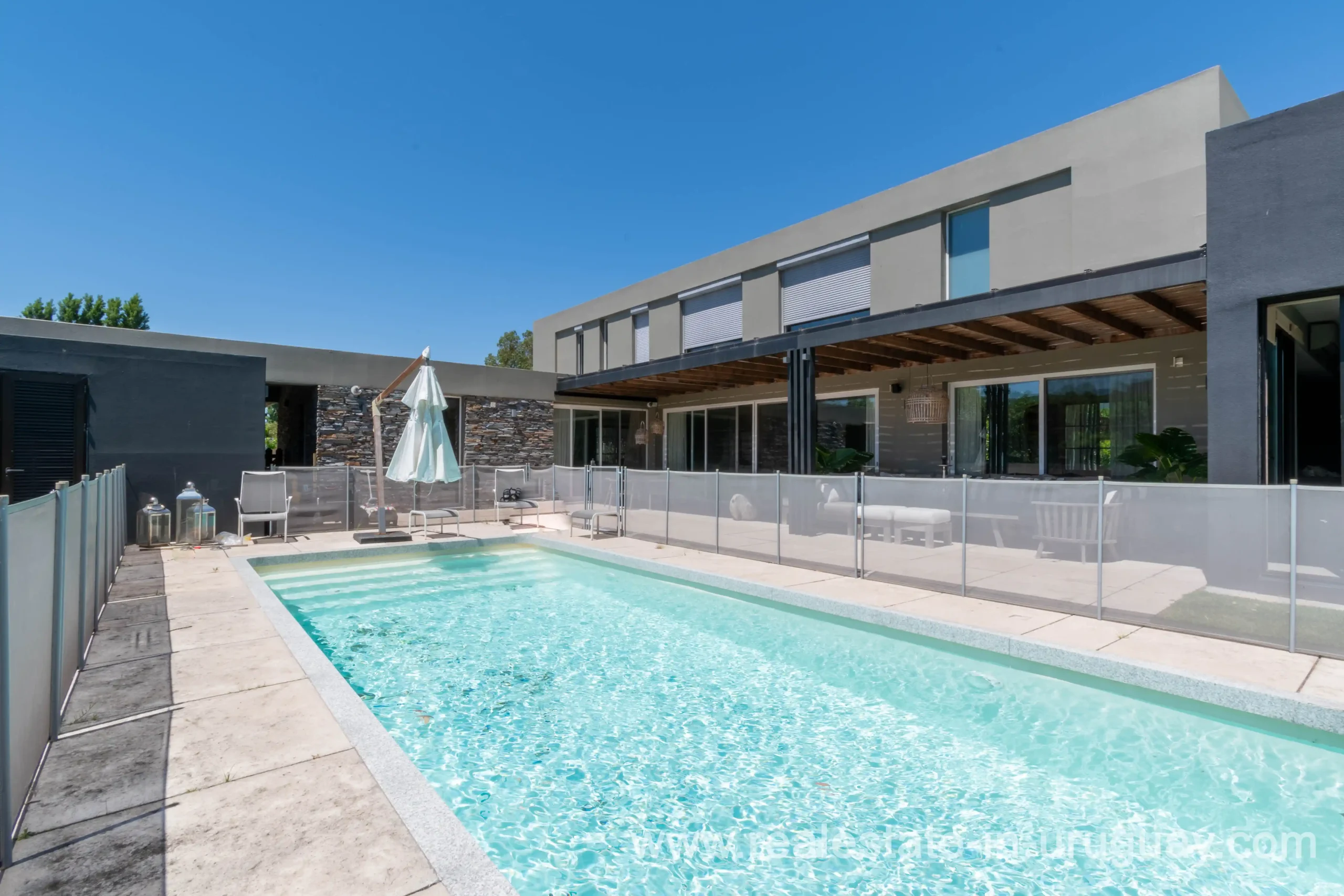 This house was built in 2014 and recycled in 2020. On the first floor we find a spacious integrated living room, dining room and living room that in turn can be connected to a large barbecue and a playroom or desk. It has a nice and square kitchen with large laundry area and full service. Upstairs there are two large bedrooms sharing a bathroom, and a beautiful suite with dressing room and bathroom. Finest finishes and ample dimensions: 370 meters built and 1279 meters of land. Underfloor heating with heat pump. Heated swimming pool.