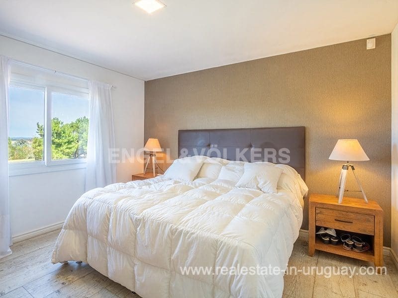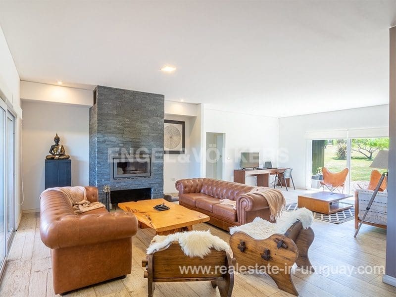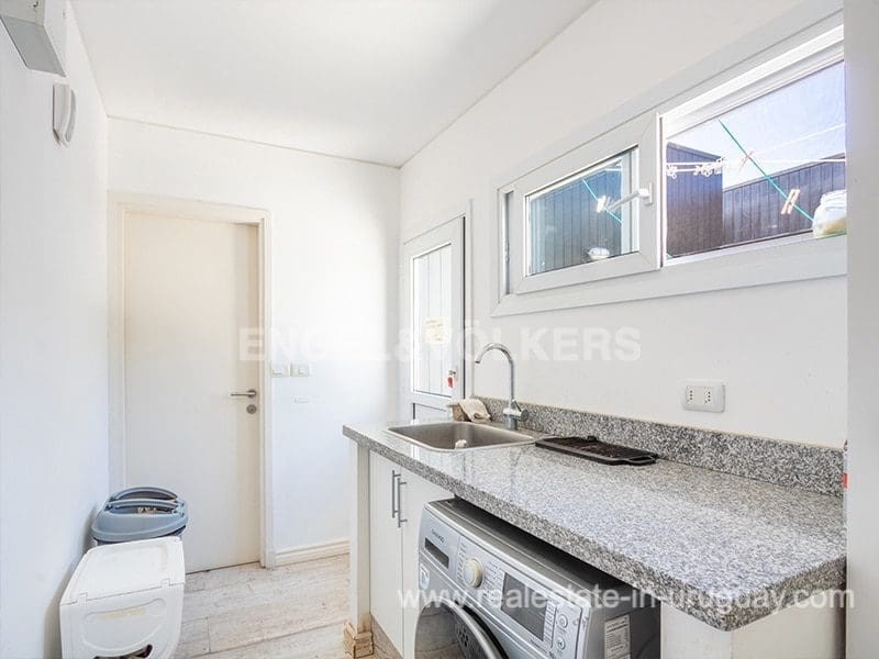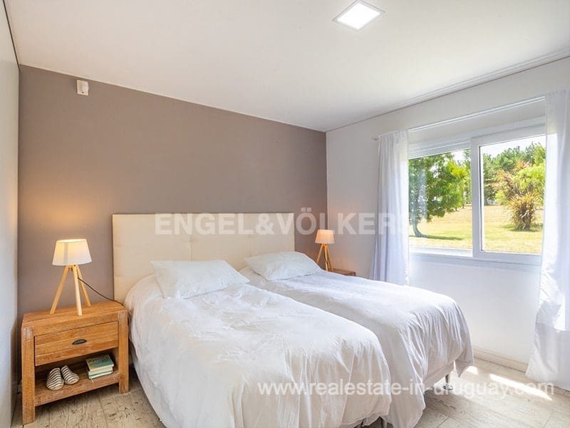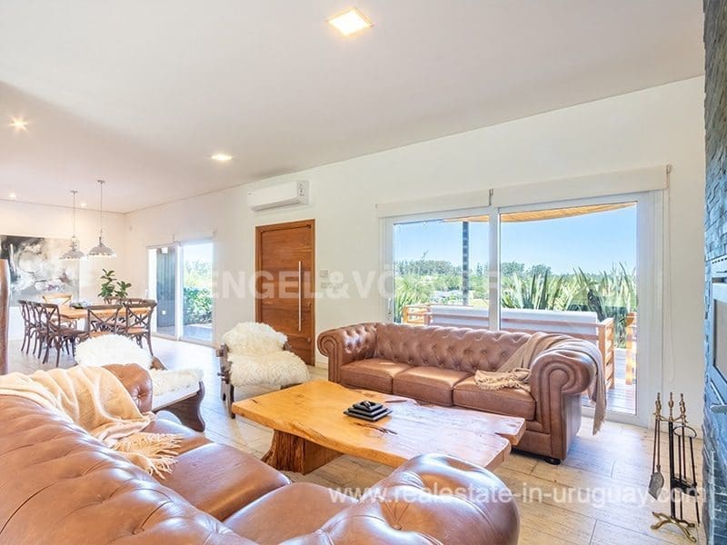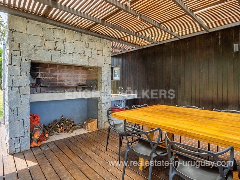 In the prestigious gated community Pueblo Mio we find this beautiful residence designed for year-round living in terms of thermal insulation and heating. At the exterior entrance, you can appreciate a terrace with a deck, ideal to enjoy the view of the landscape of lagoons and wooded areas. The main entrance leads to the spacious and bright living-dining room with an integrated kitchen. The living room has a high-performance stove with stone cladding, to the right we find a large and complete kitchen with a bar, a spacious TV room, suitable for use as a relaxation area, four bedrooms en suite, and a fifth bedroom service. A laundry room with an exit to the outside, and its roofed barbecue, are spectacular to enjoy lunches and dinners outdoors in a pleasant way with a jacuzzi and social bathroom.