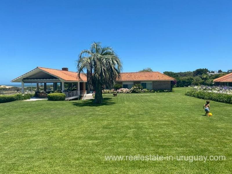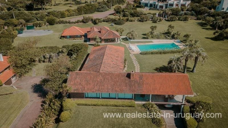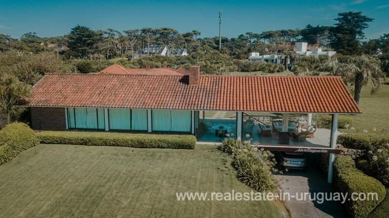 Located on the seafront of Playa Brava, within beautiful grounds of 5600m2, we find this iconic house in Punta del Este. It dates back to 1960, but thanks to the renovation it has had over time, along with maintenance work, it is in excellent condition. It comprises six bedrooms in total; two in the main house and four in the guest house next to the barbecue. Adjacent to this area, there is also a really large swimming pool. The house is heated by reverse-cycle air conditioning, ducted in the living/dining room and TV room, and split units in the bedrooms. There are also hermetic double-glazed windows in some rooms, and the kitchen was modernized in 2012. It stands out for its spacious rooms, brightness and sea views, plus its top location with an enormous land value.