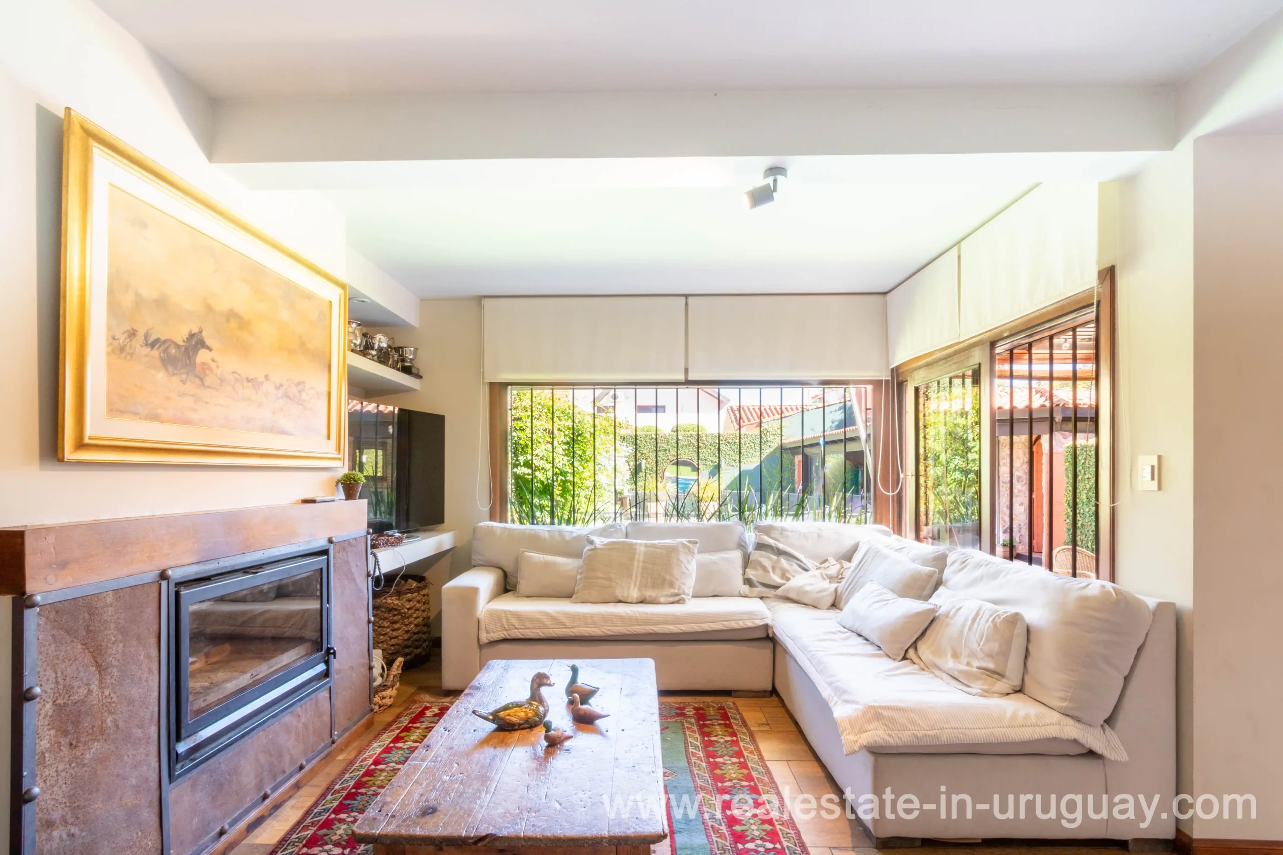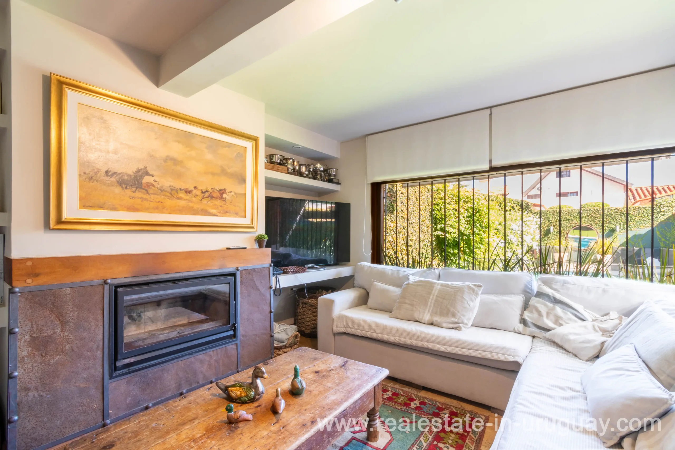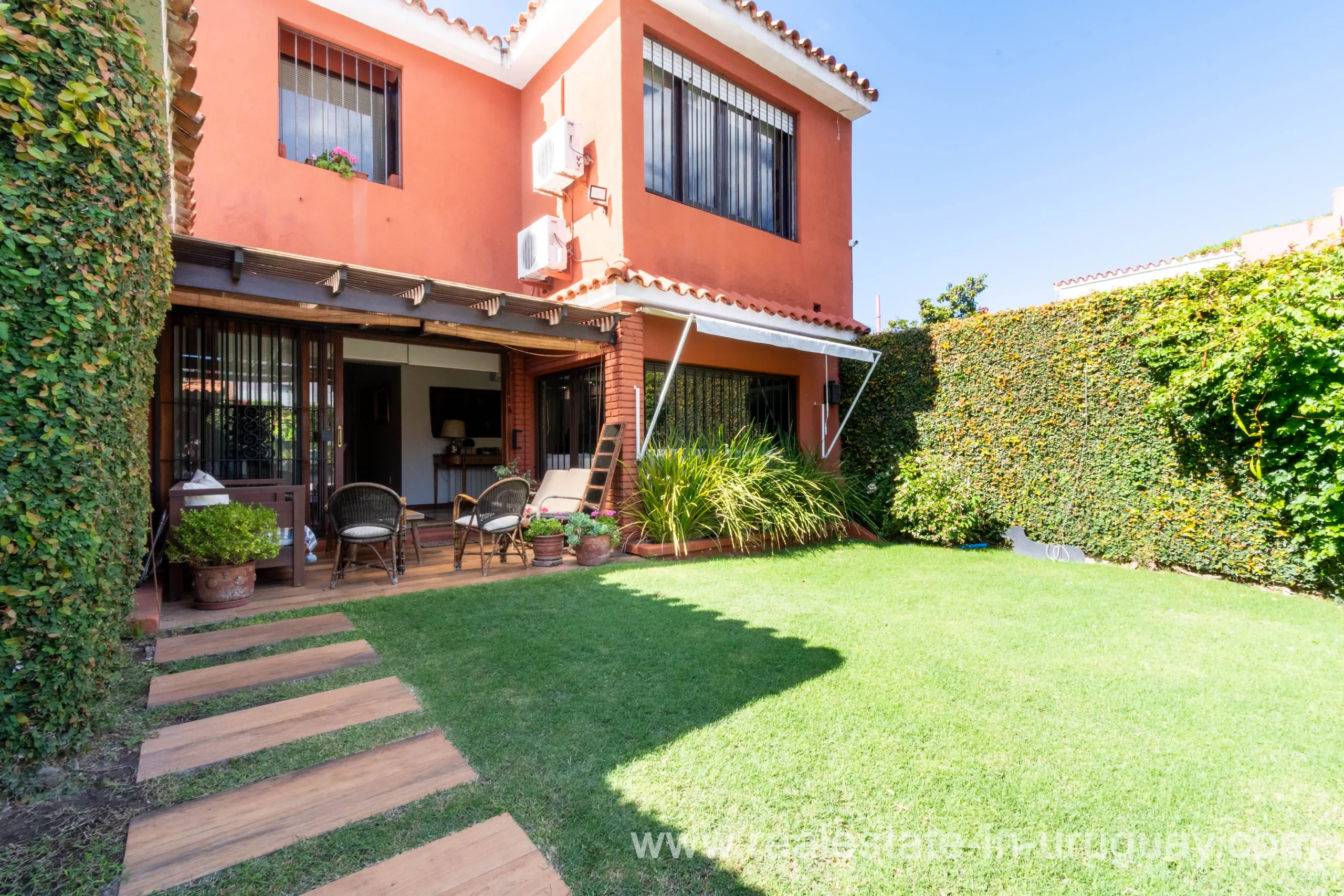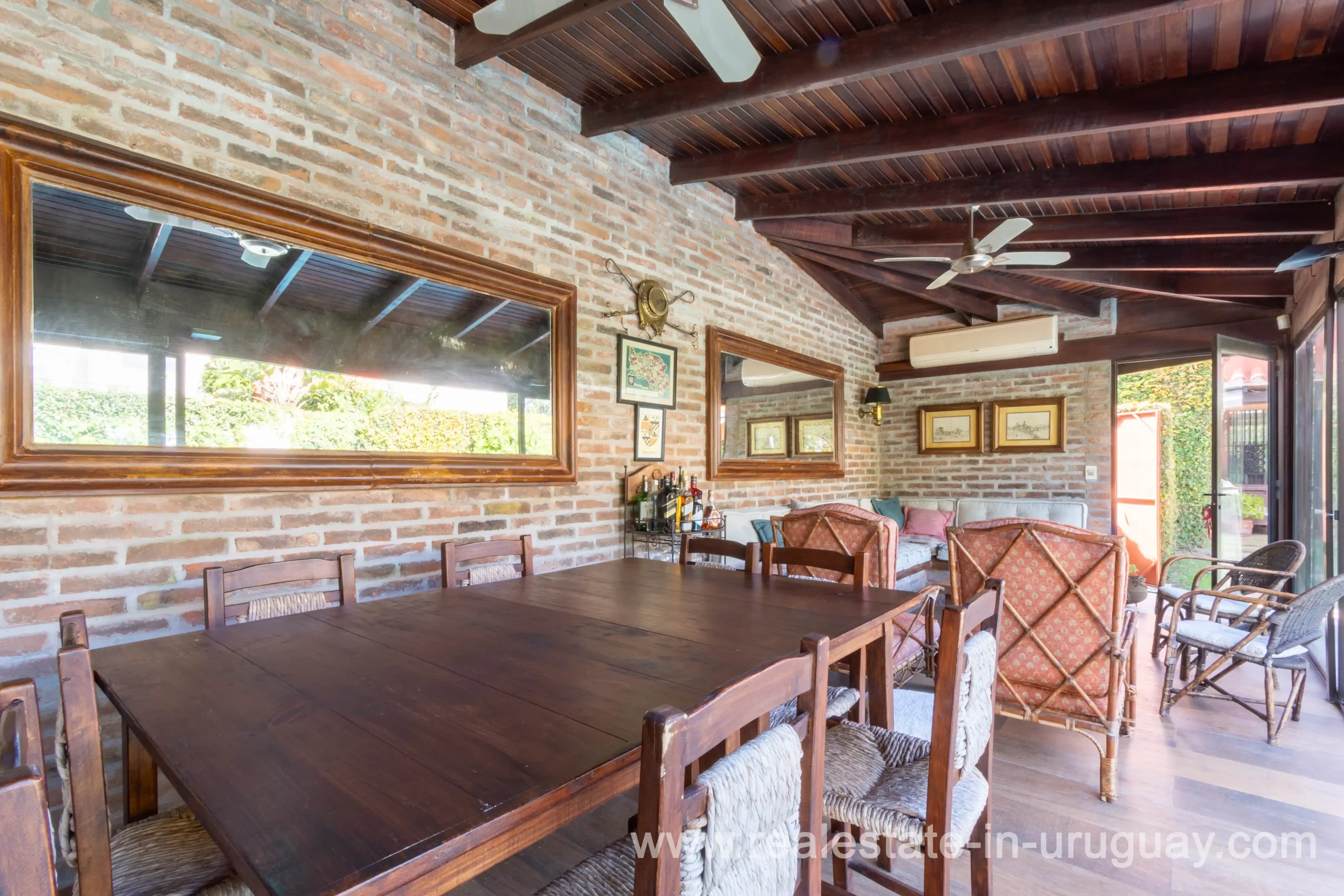 Impeccable house for sale in Carrasco Sur, just one block from the Rambla and close to Arocena. It is situated on 420 square meters of land, with 230 square meters of interior space spread over two floors and a 32-square-meter barbecue area. Built in the traditional style of the 1950s with several renovations and updates, the most recent being in 2018. The property features a comfortable entrance hall with double circulation around the formal living room with a wood-burning stove. To the left, we enter the daily living area with a high-efficiency stove and a view to the back; to the right, we find the guest bathroom, a dining room that seats 10 with a view to the gallery and access to the garden and kitchen. The kitchen is spacious, well-defined, and offers plenty of storage, connecting to the car entrance at the front and the service bedroom with a side exit to the garden. The north-facing garden includes a recently installed heated pool with a heat pump and an enclosed barbecue area. Upstairs, there are three good-sized bedrooms with closets and plenty of natural light. The master bedroom is suite-style with a walk-in closet. The other two bedrooms share a bathroom, each with its own water heater. Heating is provided by radiators in the bedrooms and underfloor heating in the bathrooms. The high-efficiency stove also heats the master bedroom and formal living room. This house is extremely comfortable, well-maintained, and in an unbeatable location. Contact us to schedule your visit.