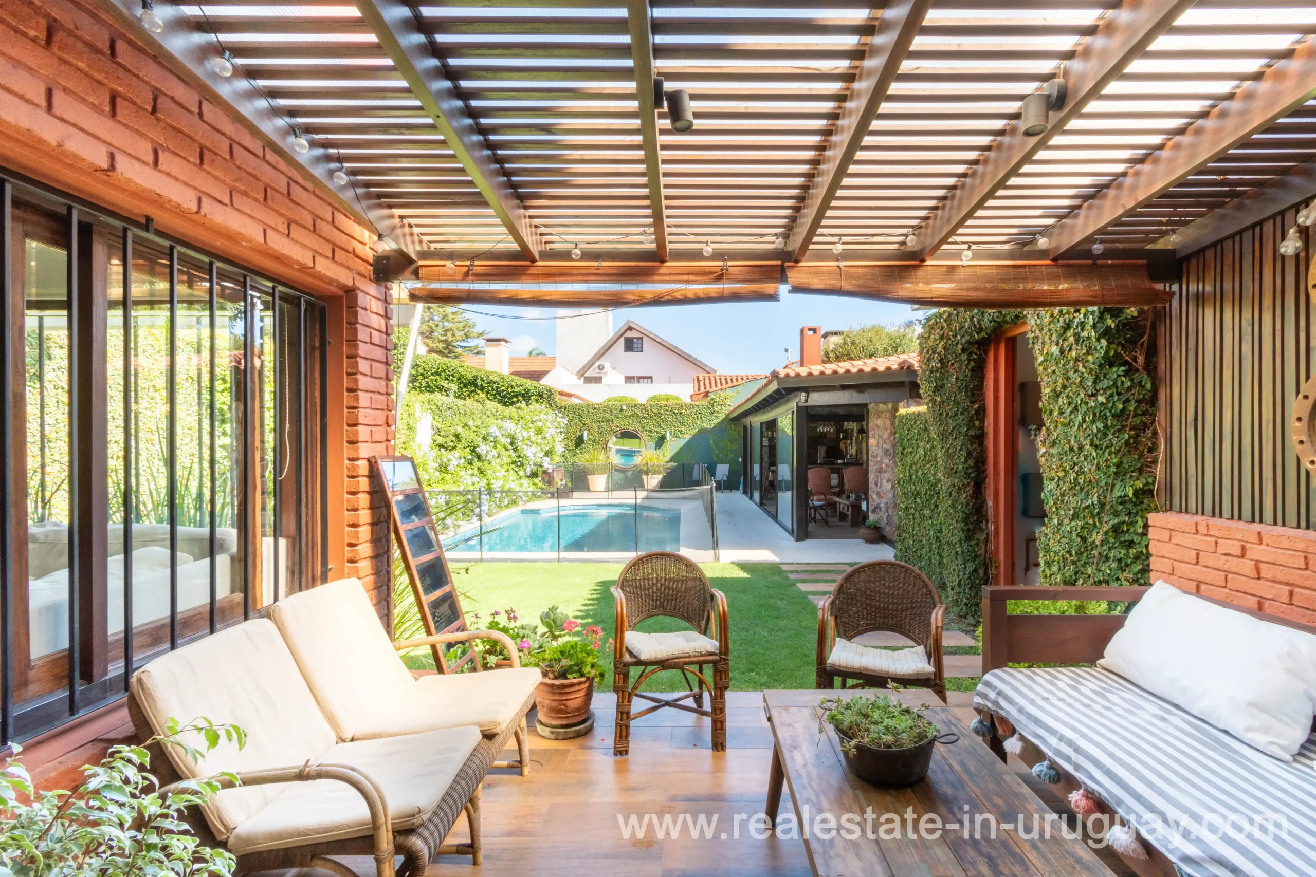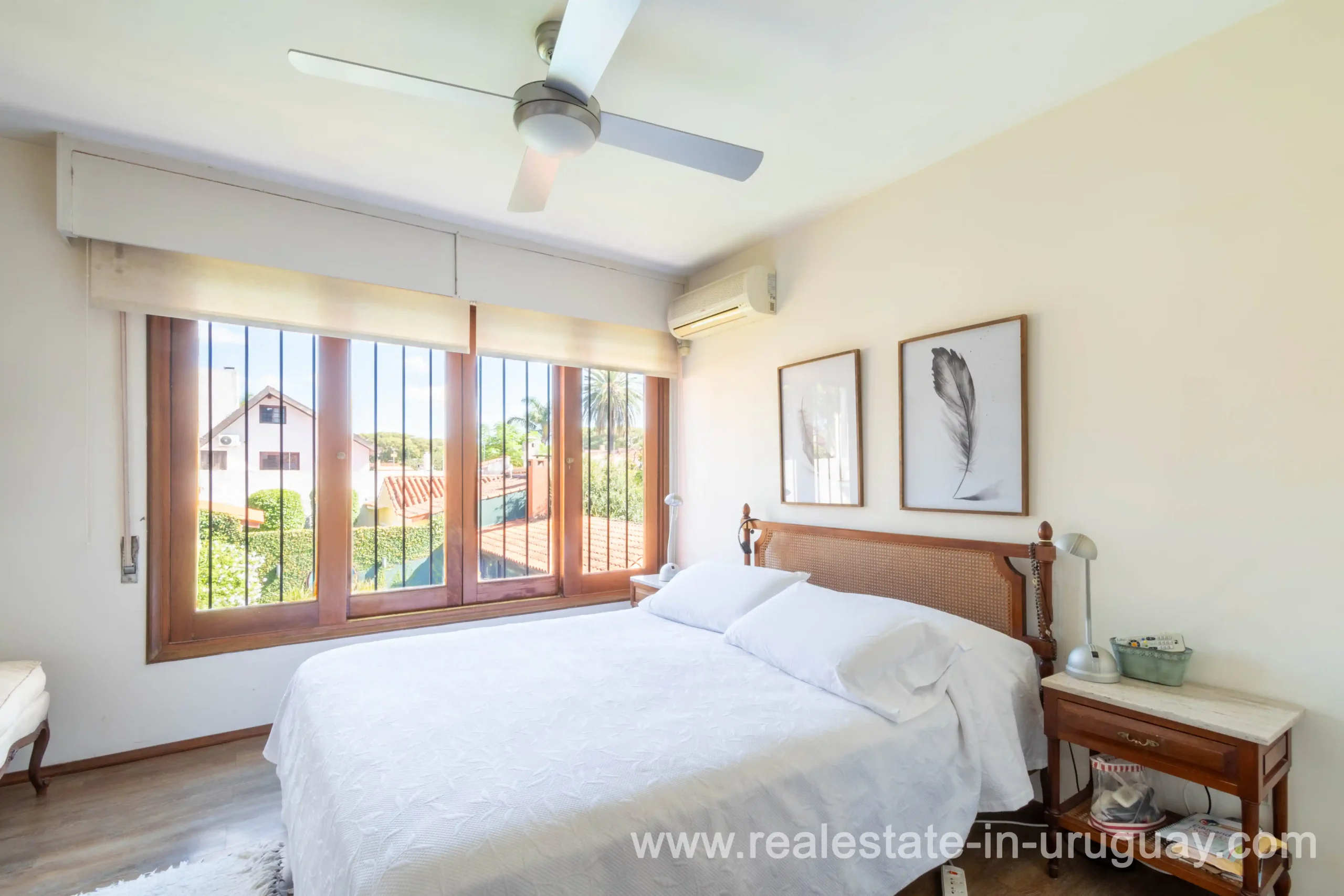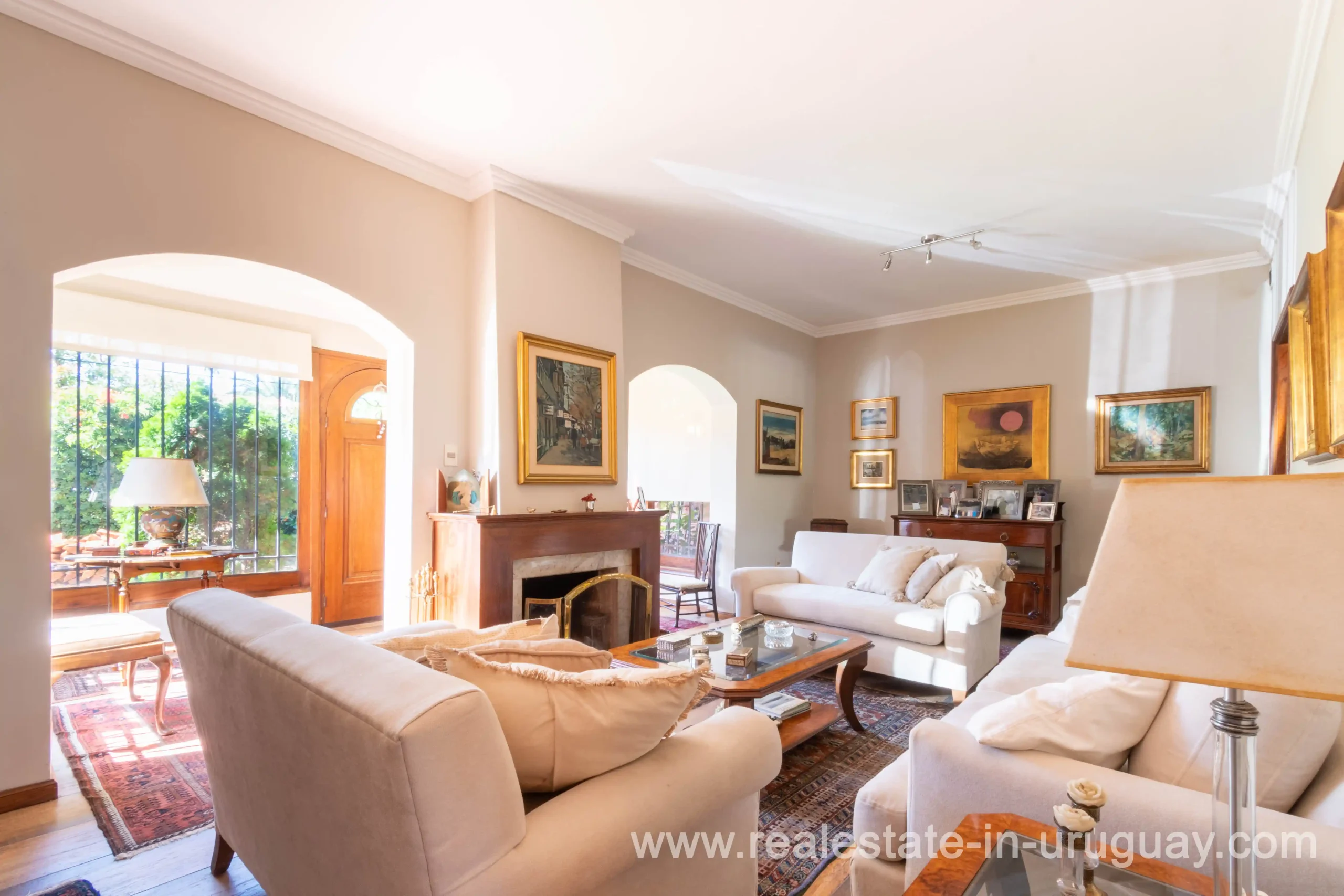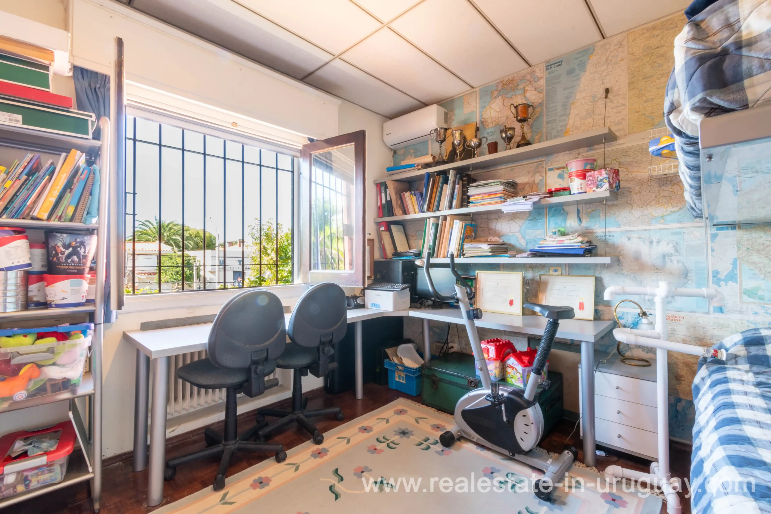 Impeccable house for sale in Carrasco Sur, just one block from the Rambla and close to Arocena. It is situated on 420 square meters of land, with 230 square meters of interior space spread over two floors and a 32-square-meter barbecue area. Built in the traditional style of the 1950s with several renovations and updates, the most recent being in 2018. The property features a comfortable entrance hall with double circulation around the formal living room with a wood-burning stove. To the left, we enter the daily living area with a high-efficiency stove and a view to the back; to the right, we find the guest bathroom, a dining room that seats 10 with a view to the gallery and access to the garden and kitchen. The kitchen is spacious, well-defined, and offers plenty of storage, connecting to the car entrance at the front and the service bedroom with a side exit to the garden. The north-facing garden includes a recently installed heated pool with a heat pump and an enclosed barbecue area. Upstairs, there are three good-sized bedrooms with closets and plenty of natural light. The master bedroom is suite-style with a walk-in closet. The other two bedrooms share a bathroom, each with its own water heater. Heating is provided by radiators in the bedrooms and underfloor heating in the bathrooms. The high-efficiency stove also heats the master bedroom and formal living room. This house is extremely comfortable, well-maintained, and in an unbeatable location. Contact us to schedule your visit.