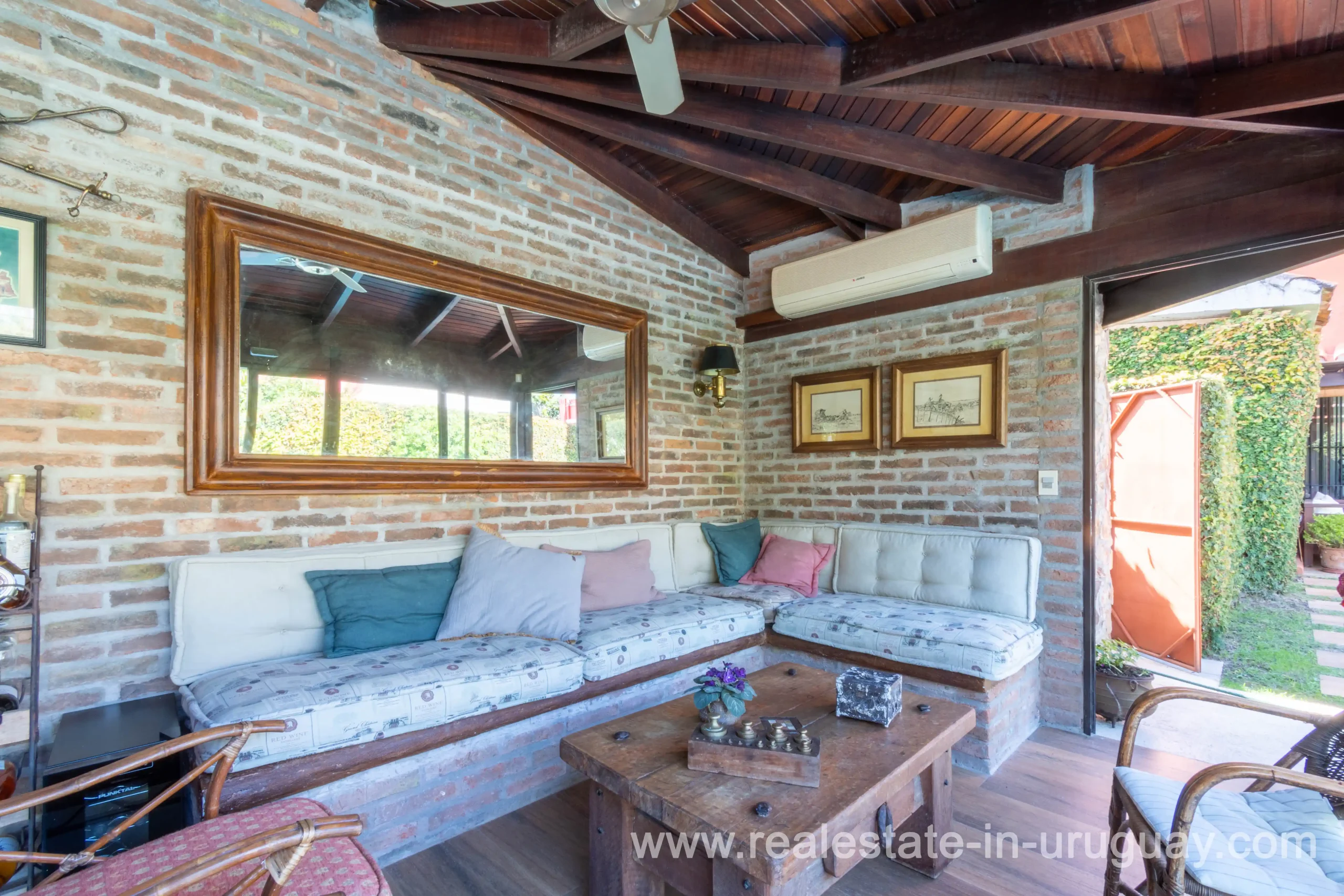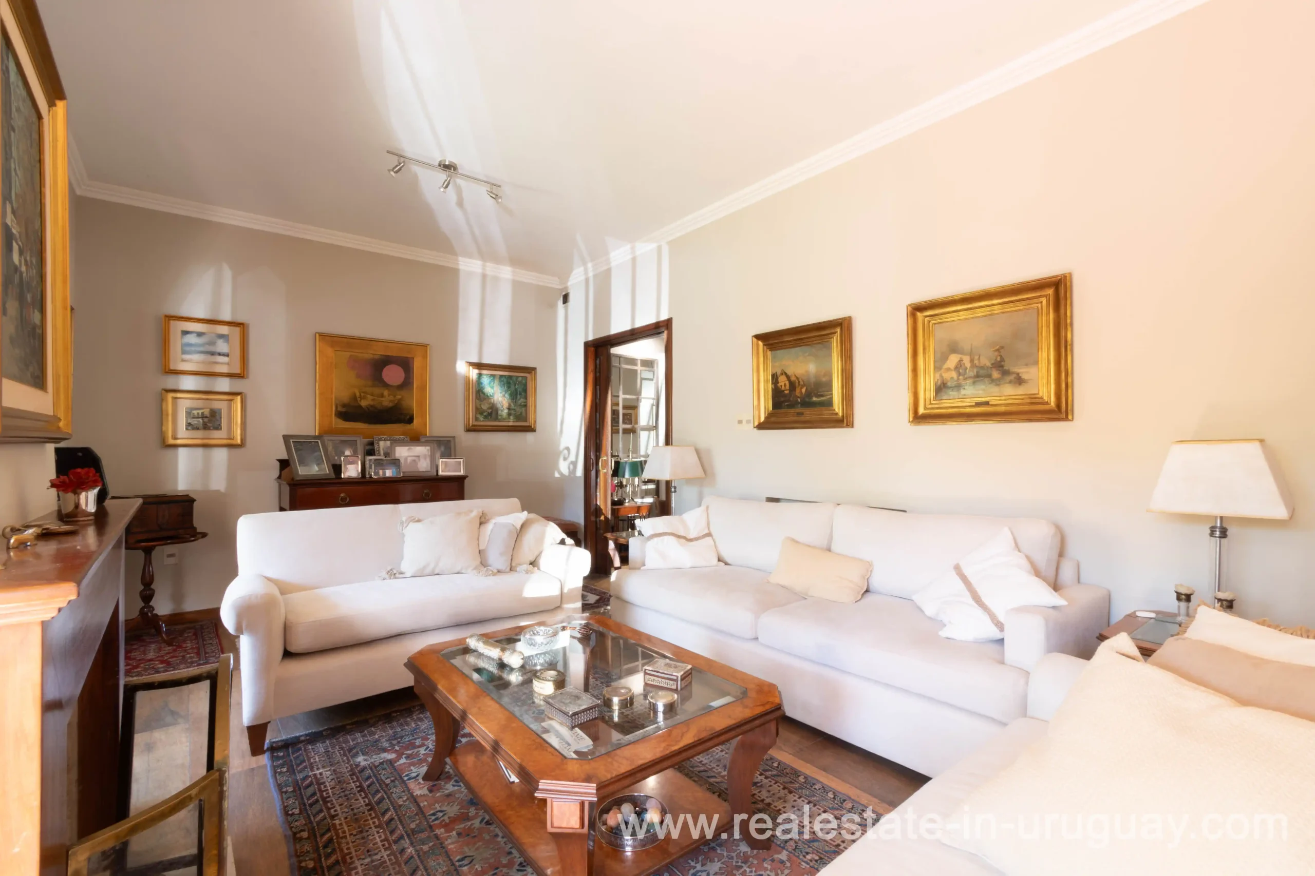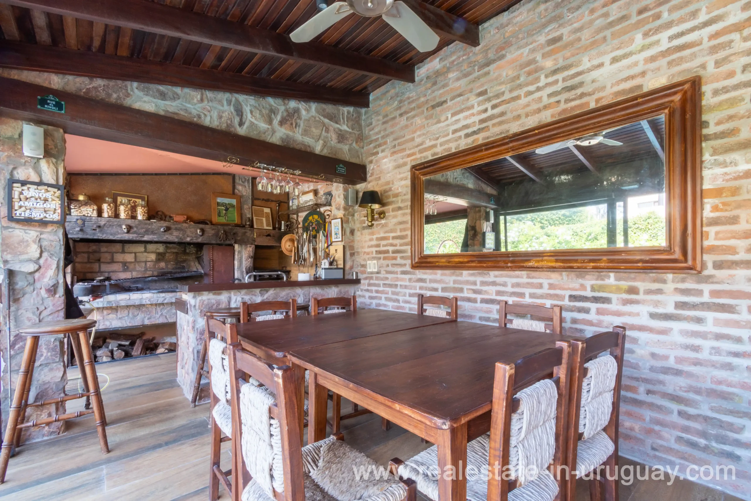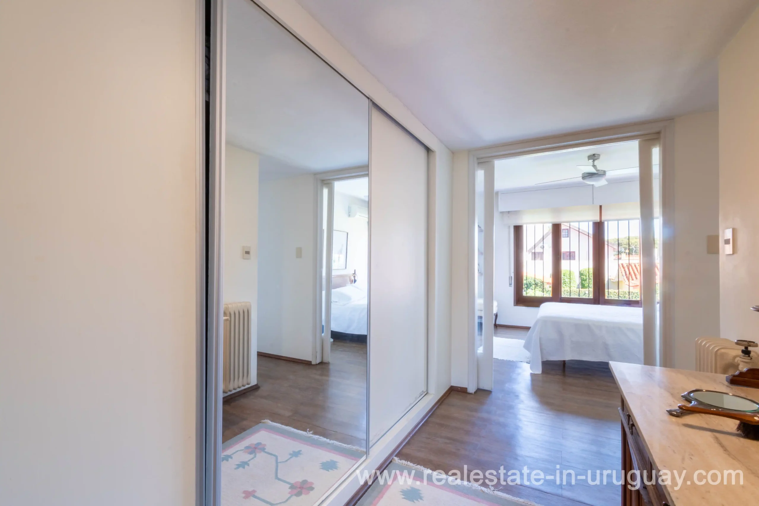 Impeccable house for sale in Carrasco Sur, just one block from the Rambla and close to Arocena. It is situated on 420 square meters of land, with 230 square meters of interior space spread over two floors and a 32-square-meter barbecue area. Built in the traditional style of the 1950s with several renovations and updates, the most recent being in 2018. The property features a comfortable entrance hall with double circulation around the formal living room with a wood-burning stove. To the left, we enter the daily living area with a high-efficiency stove and a view to the back; to the right, we find the guest bathroom, a dining room that seats 10 with a view to the gallery and access to the garden and kitchen. The kitchen is spacious, well-defined, and offers plenty of storage, connecting to the car entrance at the front and the service bedroom with a side exit to the garden. The north-facing garden includes a recently installed heated pool with a heat pump and an enclosed barbecue area. Upstairs, there are three good-sized bedrooms with closets and plenty of natural light. The master bedroom is suite-style with a walk-in closet. The other two bedrooms share a bathroom, each with its own water heater. Heating is provided by radiators in the bedrooms and underfloor heating in the bathrooms. The high-efficiency stove also heats the master bedroom and formal living room. This house is extremely comfortable, well-maintained, and in an unbeatable location. Contact us to schedule your visit.