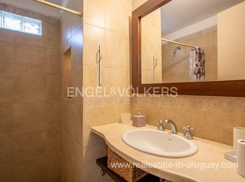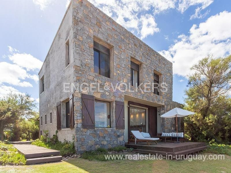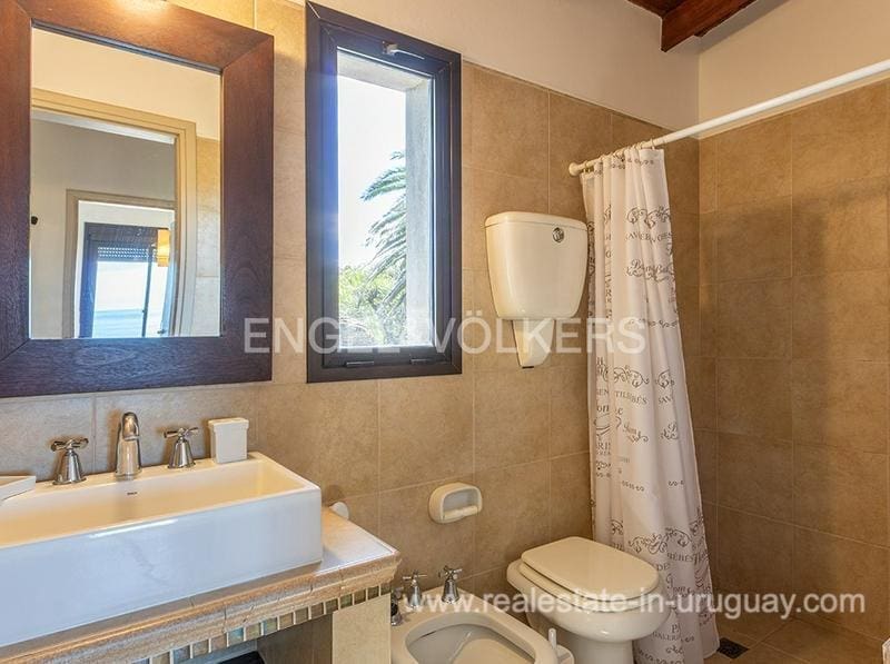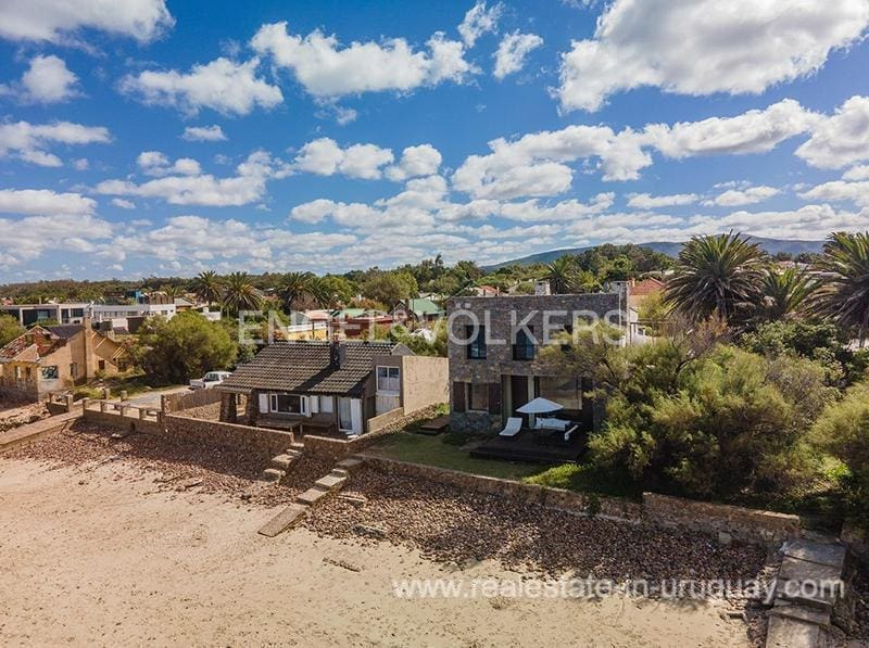 Situated in the town of Las Flores, close to Piriapolis and just 30 minutes from Punta del Este, this modern seafront house in Las Flores enjoys direct access to the beach and incredible sea views. It includes four bedrooms, a living room with large windows, a kitchen, a dining room, and four bathrooms. Outside, there are gardens, wooden decks, a BBQ/grill, and a covered space ideal for dining outside. The house is fully equipped with air conditioning, WIFI, and an alarm with a response system. There is also a kitchen with an electric stove, microwave, dishwasher, water filter, fridge, and freezer. This property is an ideal option for those seeking holidays or year-round living in a peaceful area with easy access from Montevideo and just minutes from one of the most exclusive resorts in Latin America.