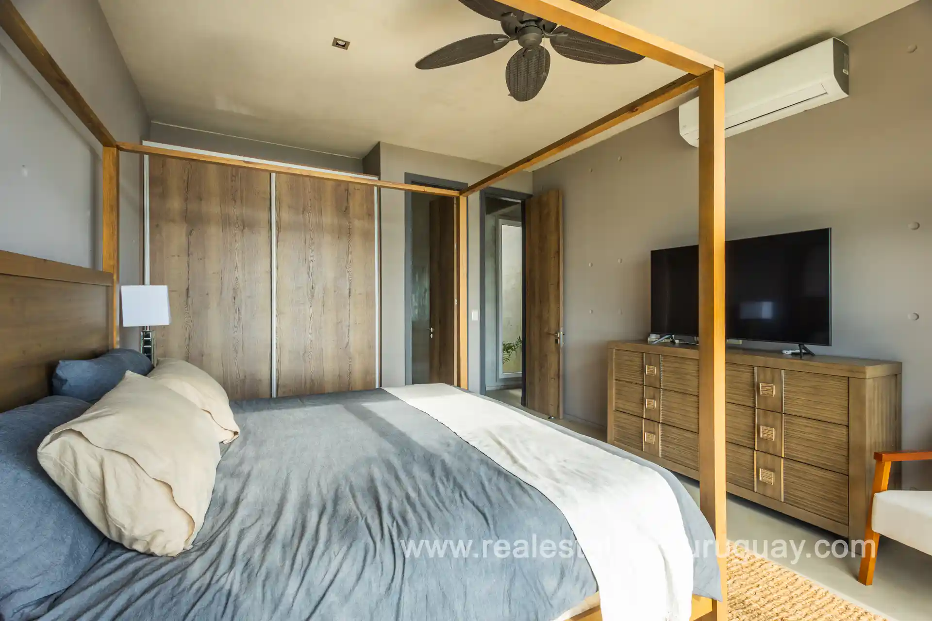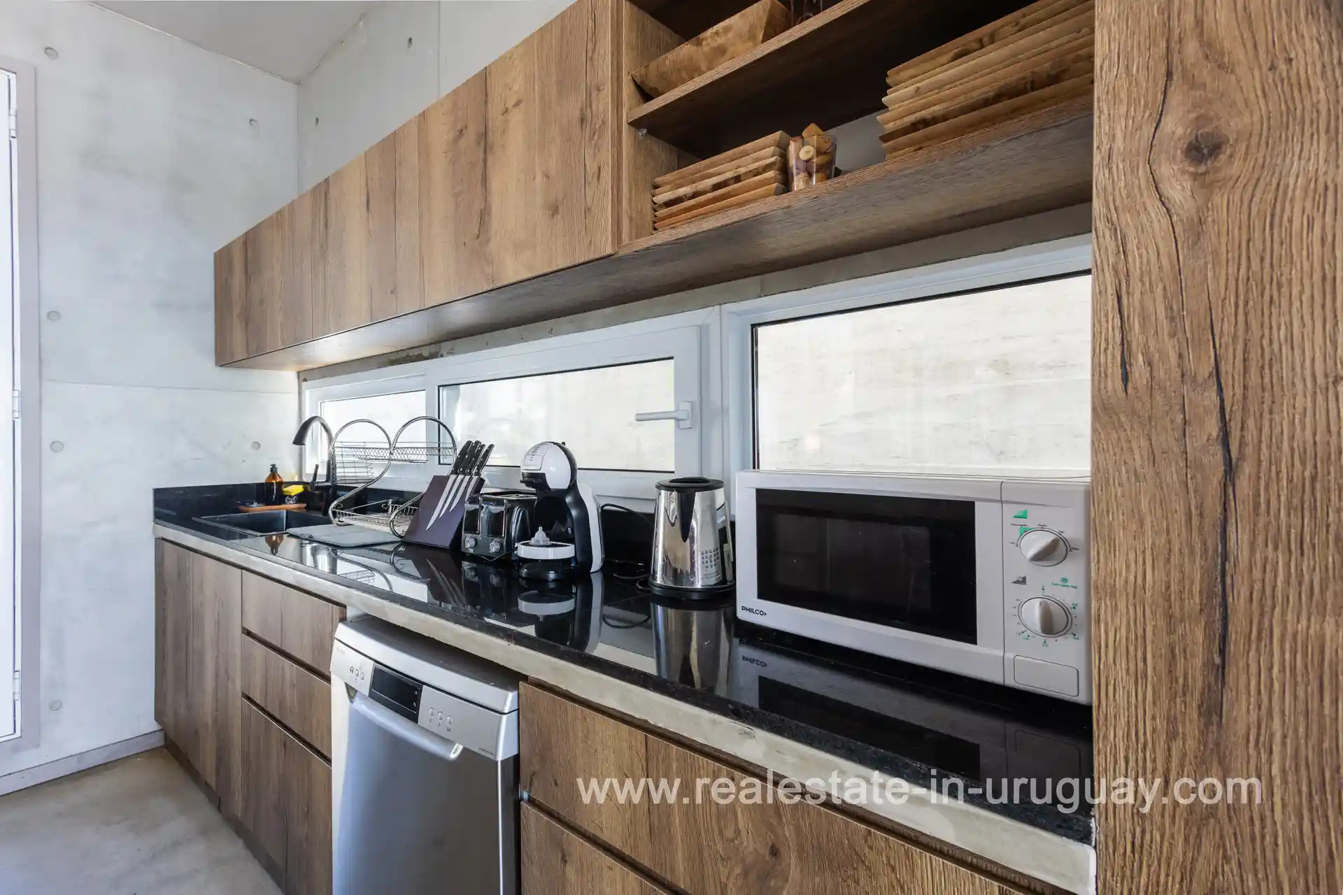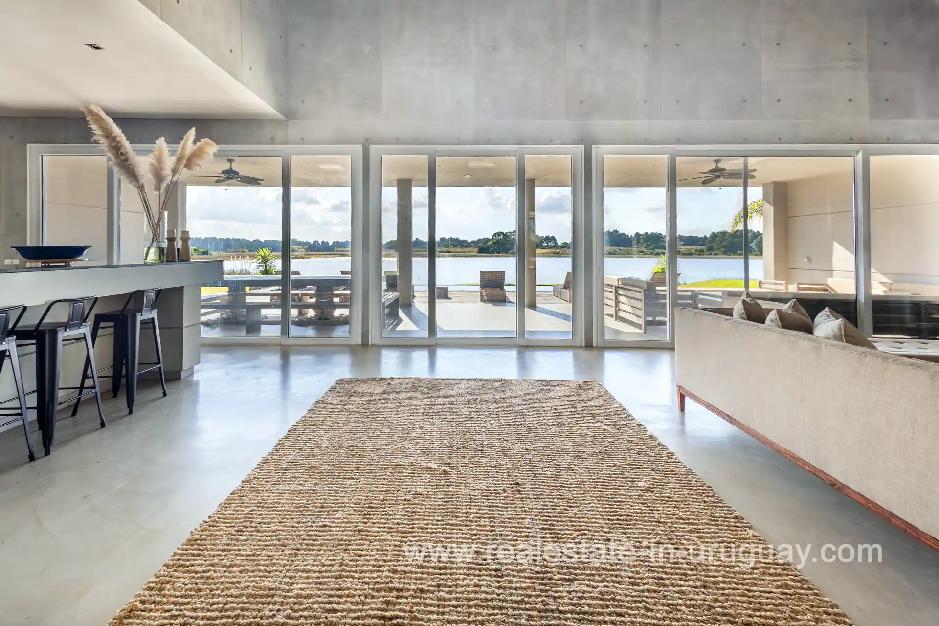 Designer house in the gated community of Laguna Escondida by Jose Ignacio. Spacious living room with integrated kitchen. Gallery with panoramic views, living area, BBQ, and dining table. Guest toilet. Master suite with shower. 1 en-suite bedroom. Two bedrooms with a shared bathroom. Laundry room. Covered garage. Service room. Unique views of the freshwater lagoon in José Ignacio. Laguna Escondida is a 100-hectare gated community with a forest full of trees of all kinds, offering generous spaces and views of the sea, forest, countryside, and lagoon. Laguna Escondida provides a unique peace and tranquility in an exclusive setting, just 5 minutes from the José Ignacio lighthouse. Beach service and kids’ club with recreational activities in season. Tennis courts. Perimeter fence and 24-hour controlled access.