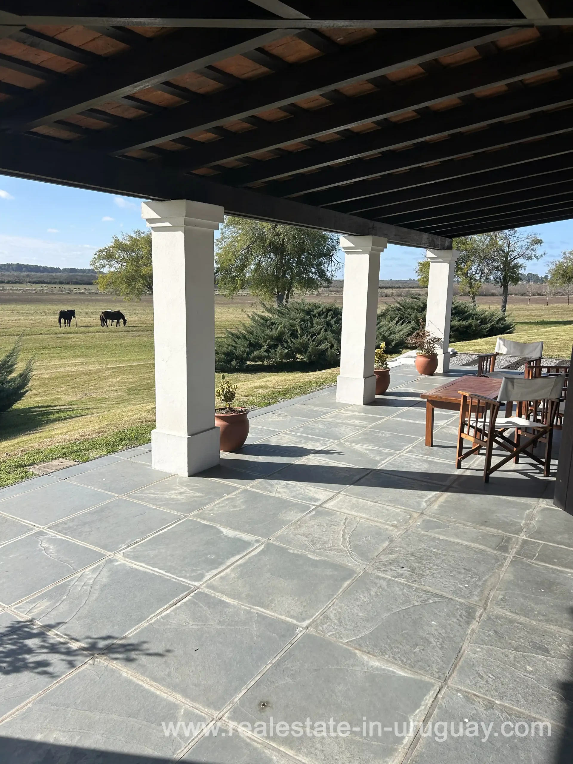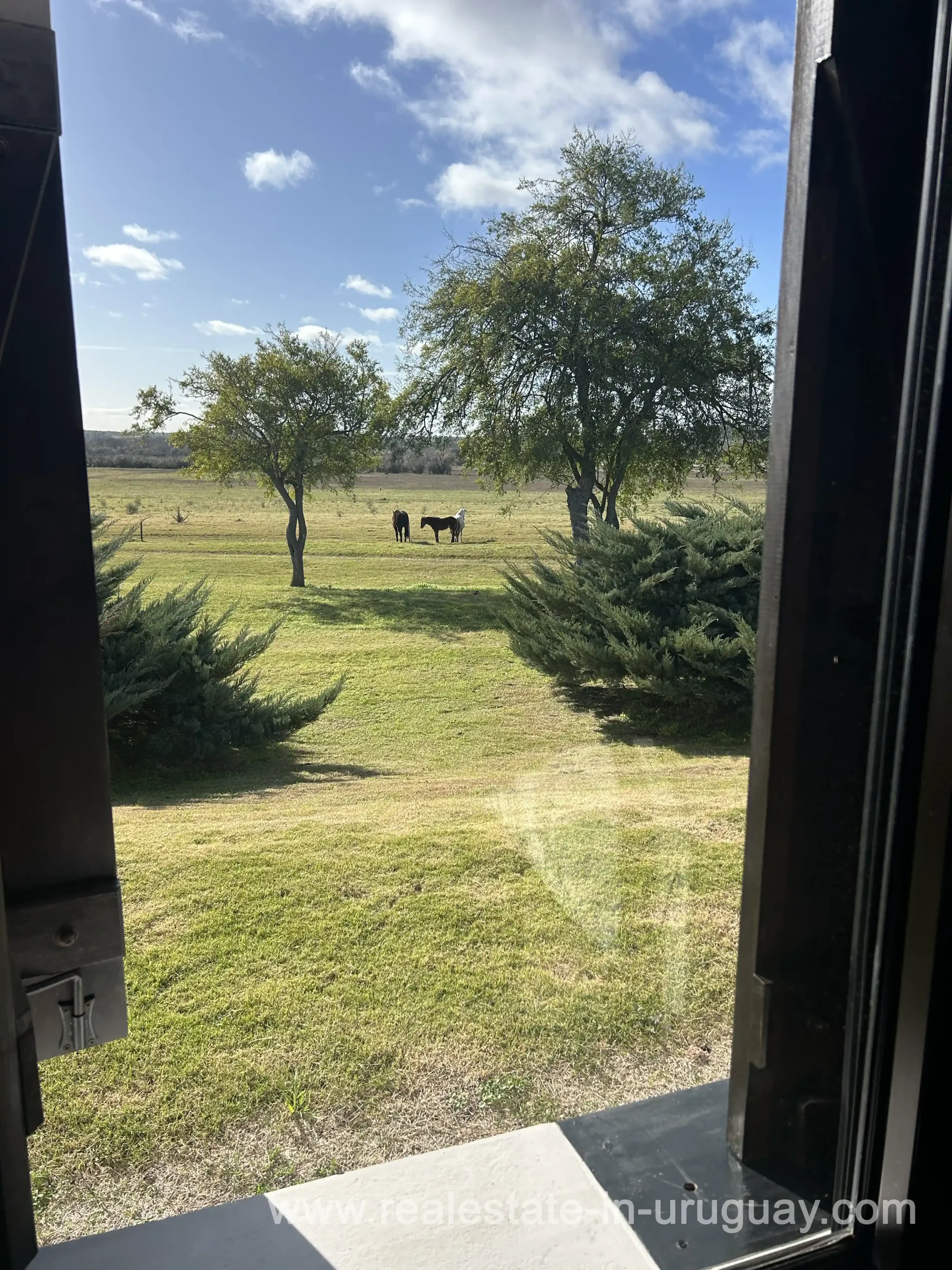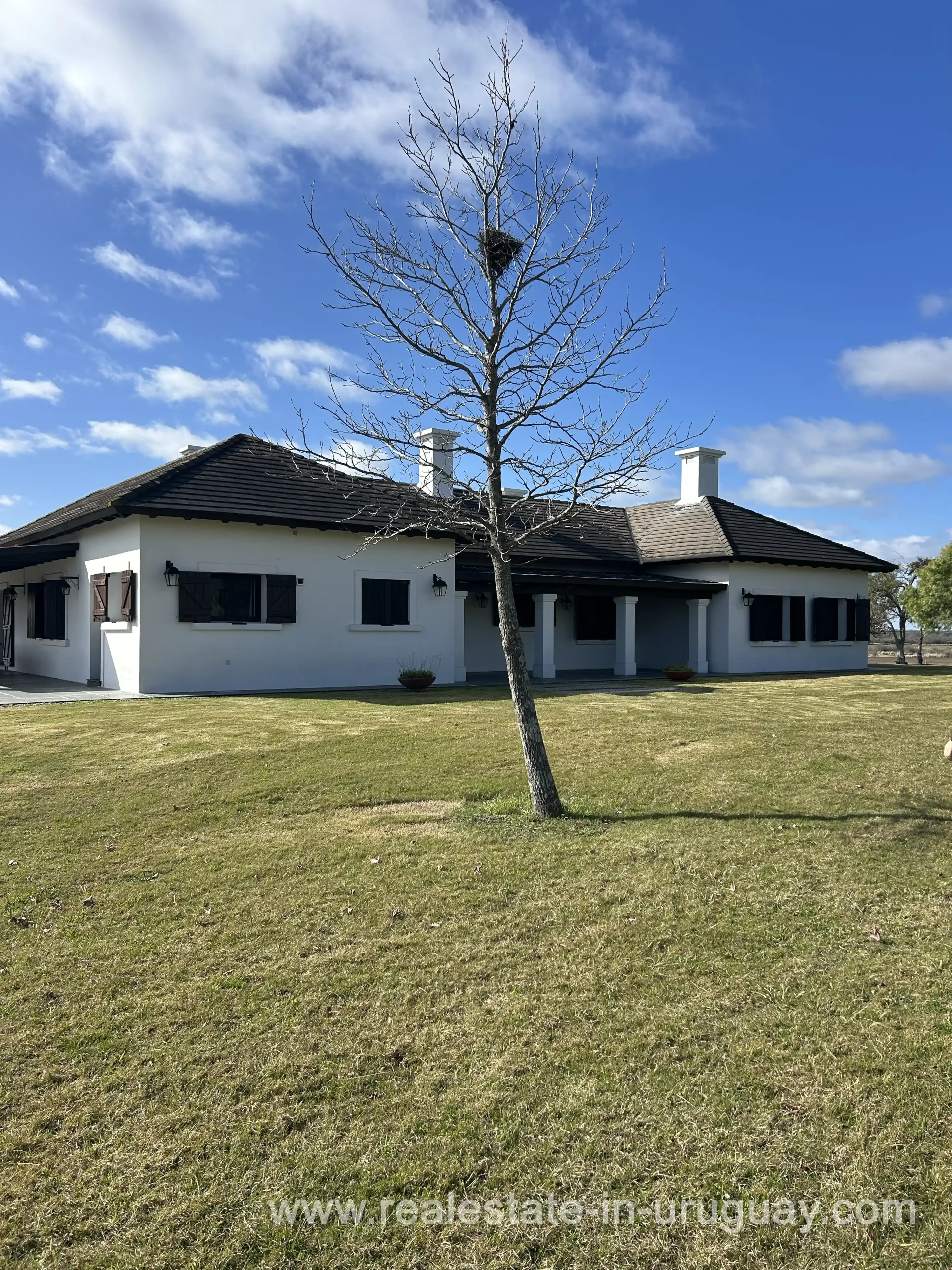 Just 3.5 km from the city of Mercedes, with access via Route 3 and a waterfront on the Rio Negro. 396 km from Punta del Este and 280 km from Montevideo. New main house with 5 en-suite bedrooms, heating, and very well-maintained. Average Coneat index of 71, with approximately 150 hectares of native forest, about 100 hectares suitable for agriculture, currently in alfalfa pastures and low fields with excellent wintering capacity. Working infrastructure, 2 houses for staff, a shed, and cattle handling pens in intermediate conditions. Previously, it had 3 polo fields, now almost imperceptible but recoverable.