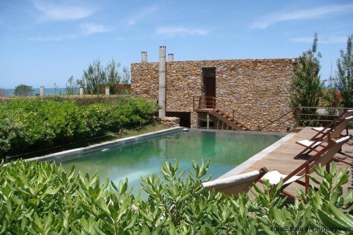 This exceptional architectural gem and latest work of art by Architect Ravazzani is located in one of the most exquisite havens in Punta del Este, Punta Piedras. The property stands out for its design and location. It comprises four houses, all planned and designed with taste and creativity. Main House: the masterpiece of a main house comprises an extraordinary living/dining room with fireplace and access to an enormous terrace affording impressive sea views. In a corner of this marvellous room with high ceilings, is a study, and in the opposite wing, a gourmet kitchen partly built into the dining room; there is also a huge double master suite accessed via a majestic spiral staircase. Furthermore, there is an infinity swimming pool with a heated area forming part of the spa area with sauna and gymnasium. There is a cinema room, wine cellar, fabulous BBQ/grill, outdoor lounge area with wood burning stoves and double guest bedroom. North House: this house is located in one of the most elevated areas of the property and all rooms have been cleverly designed to create abundant multi-functional spaces. There is a divine living/dining room with full kitchen and access to an attractive terrace with fantastic sea views, double BBQ/grill and three homely suites. It also boasts a private swimming pool and exceptional landscaped garden. West House: a fantastic outbuilding can be found at the bottom of the garden at the lowest part of the plot which is impressive both for its layout and original design. It could be converted into an apartment with full kitchen, divine living/dining room with access to a private terrace, two suites and the possibility of sharing a swimming pool. South House: this unique spot just two blocks from the sea is a work of art consisting of living/dining room with fireplace and incorporated kitchen, four spacious bedrooms, covered BBQ/grill and much more. A unique and ideal place for spending wonderful holidays or for living all year round. Viewing is highly recommended.
