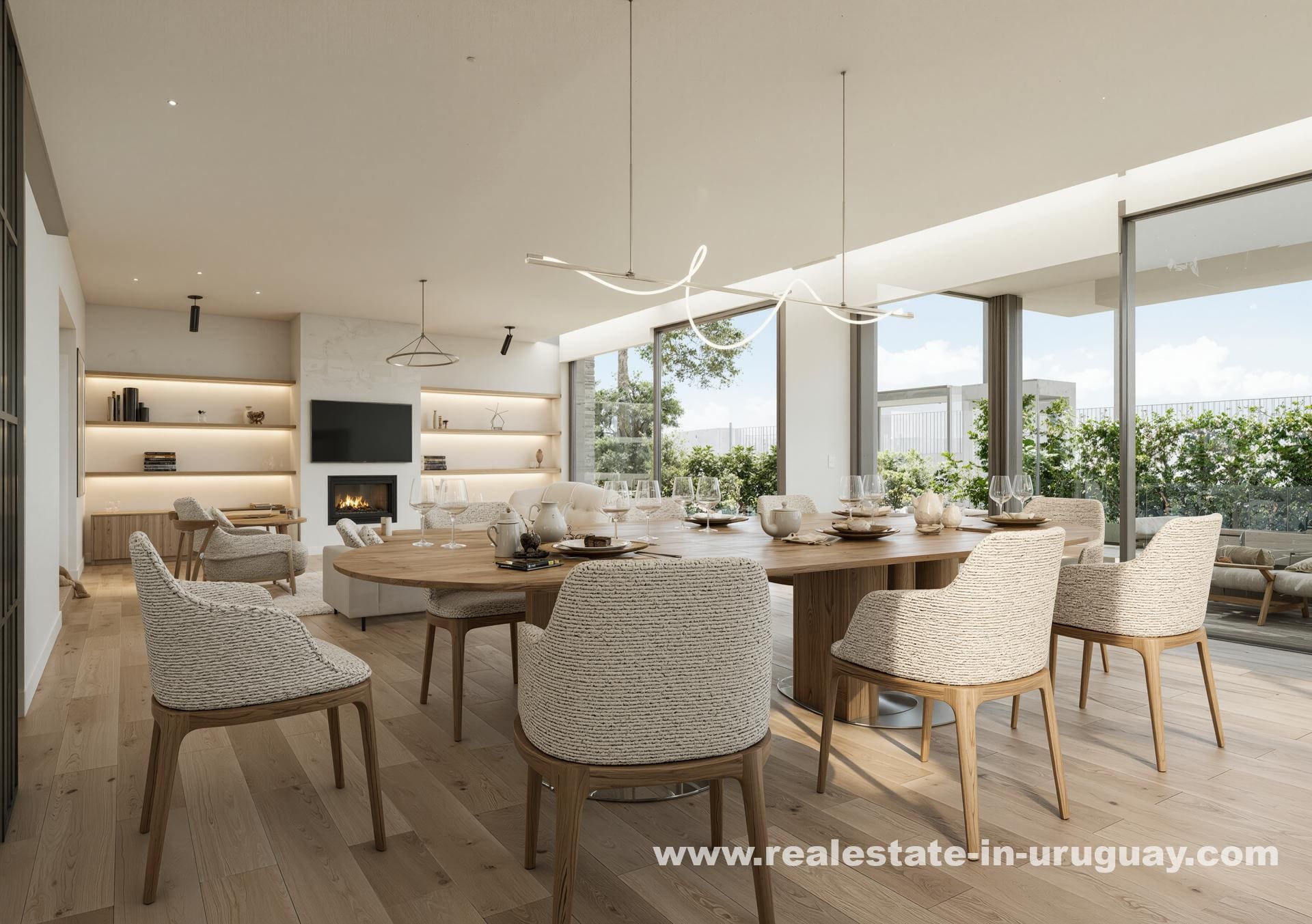 Designed to blend with Carrasco’s lush surroundings, this apartment features expansive gardens filled with century-old trees, embodying both calm and sophistication. Among its standout features are a spacious living-dining room with a fireplace, an exclusive-use garden, and a modern kitchen with a daily dining area and a TV lounge.