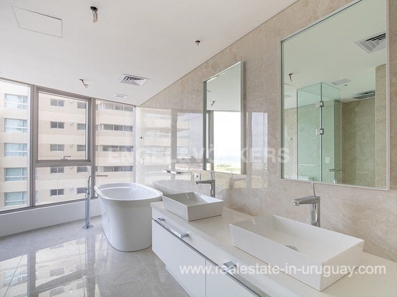Located opposite Playa Brava and near the Punta del Este peninsula, this spectacular brand-new luxury apartment in the Trump Tower is ideal for holidays or living all year round. It comprises three bedrooms with en suite bathrooms, a spacious living/dining room, a guest bathroom, a kitchen, and full staff quarters. All rooms are bright. The building provides various amenities, such as indoor and outdoor swimming pools, a professional tennis court, a spa, a fitness center, barbecues, a cinema and kids club, and 24h security.