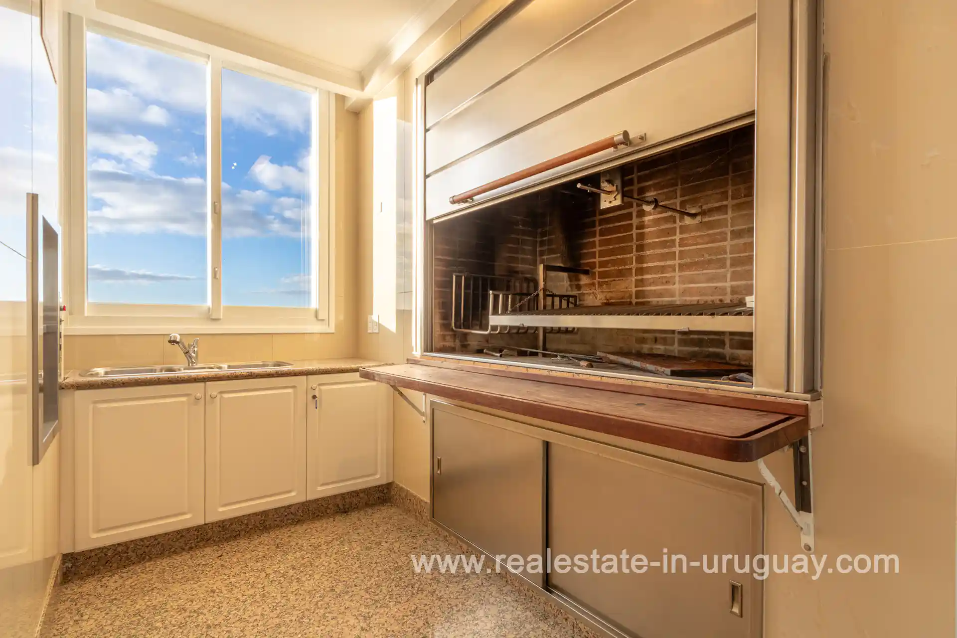The upper floor features a large, open living area with a wood-burning stove, which gives direct access to the heated pool. In addition, here you will find a fully remodeled kitchen with great design and excellent materials, a barbecue area, and two guest bathrooms, perfect for entertaining and gatherings.