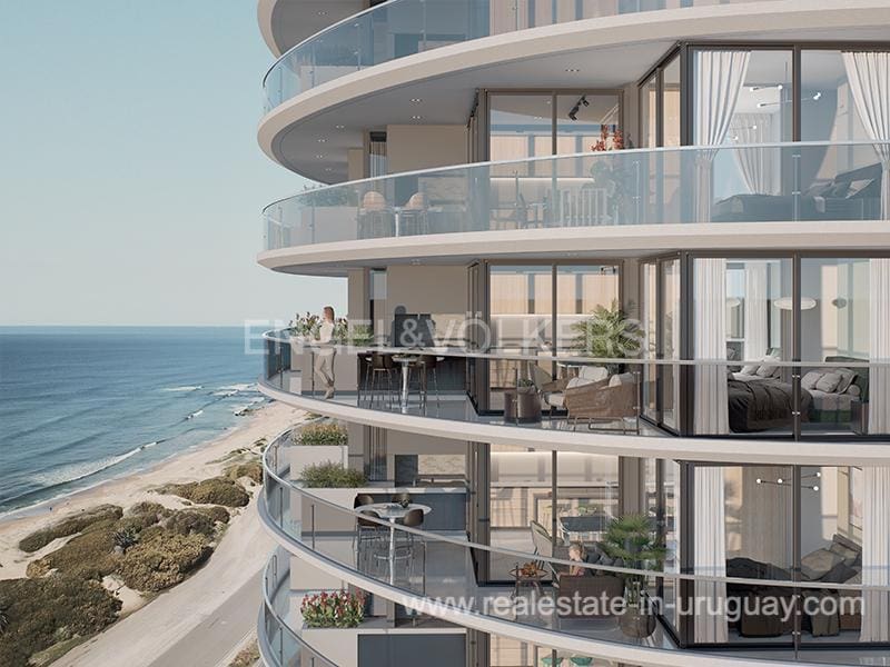 Manglar Punta del Este, between the sand and the sea. With the support of Grupo Fonte, a company from Cordoba with a long track record with more than 30 completed developments and 35 currently under construction. An excellent apartment block with 20 apartments and first-class amenities, among which stand out: outdoor swimming pool for adults and children, pool bar, BBQs for communal use, multipurpose sports court, microcinema, co-working area, games room, large communal gardens with excellent landscaping details, spa and indoor heated swimming pool on the double-height 18th floor affording views of Playa Mansa, gym with sea view on floor 20 and spacious lobby with direct views of the interior jungle-like garden. Top-class construction, aluminum windows with double glazing, porcelain floors of excellent quality, cellular concrete divisions between apartments, ceilings in exposed concrete, underfloor heating, pre-installation for air conditioning, kitchens equipped with oven, stove, hood and excellent quality furniture, wardrobes in the bedrooms and fine finishing details. Options with own BBQ/grill. 1, 2, and 3-bedroom apartments with a wide variety of sizes and orientations.