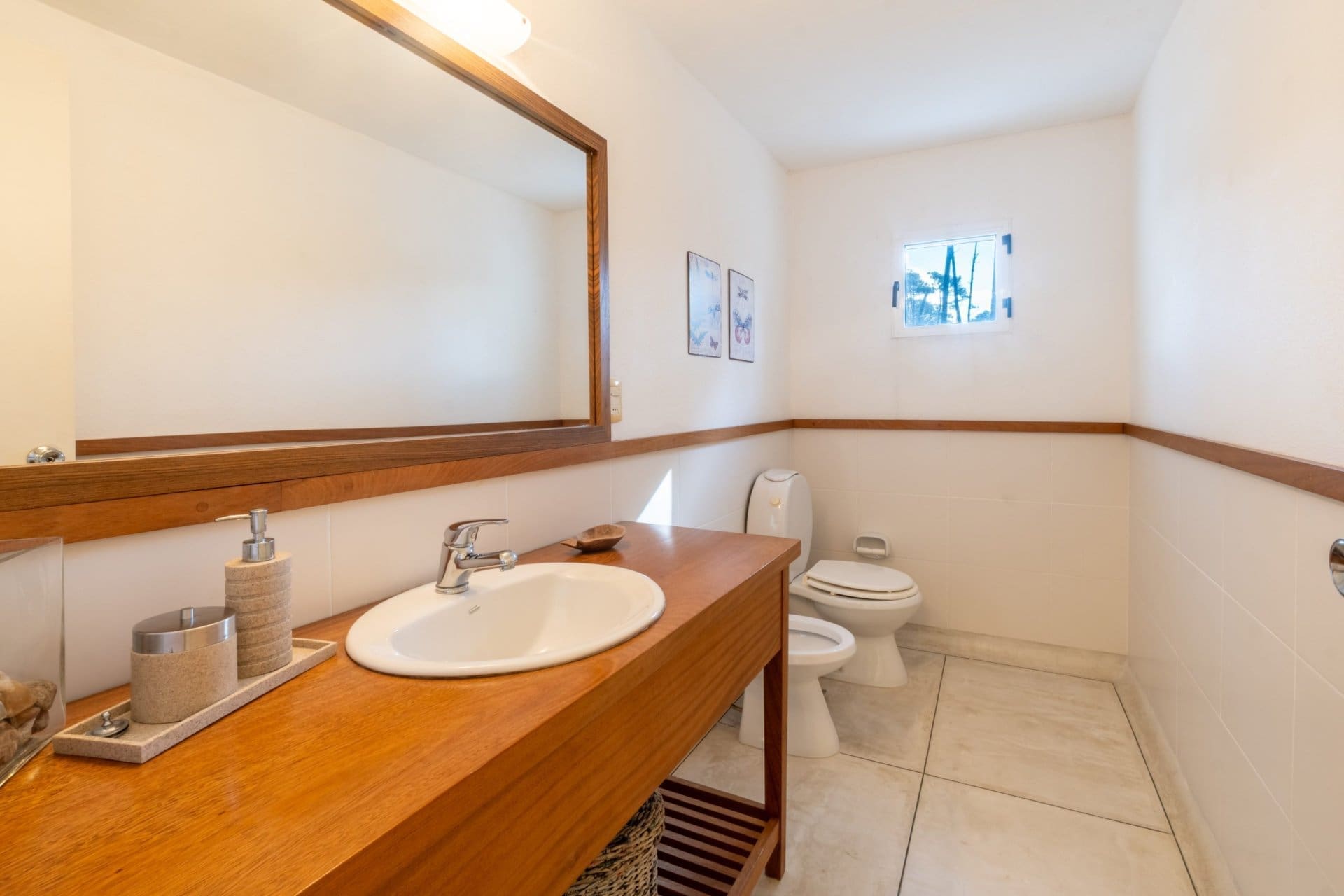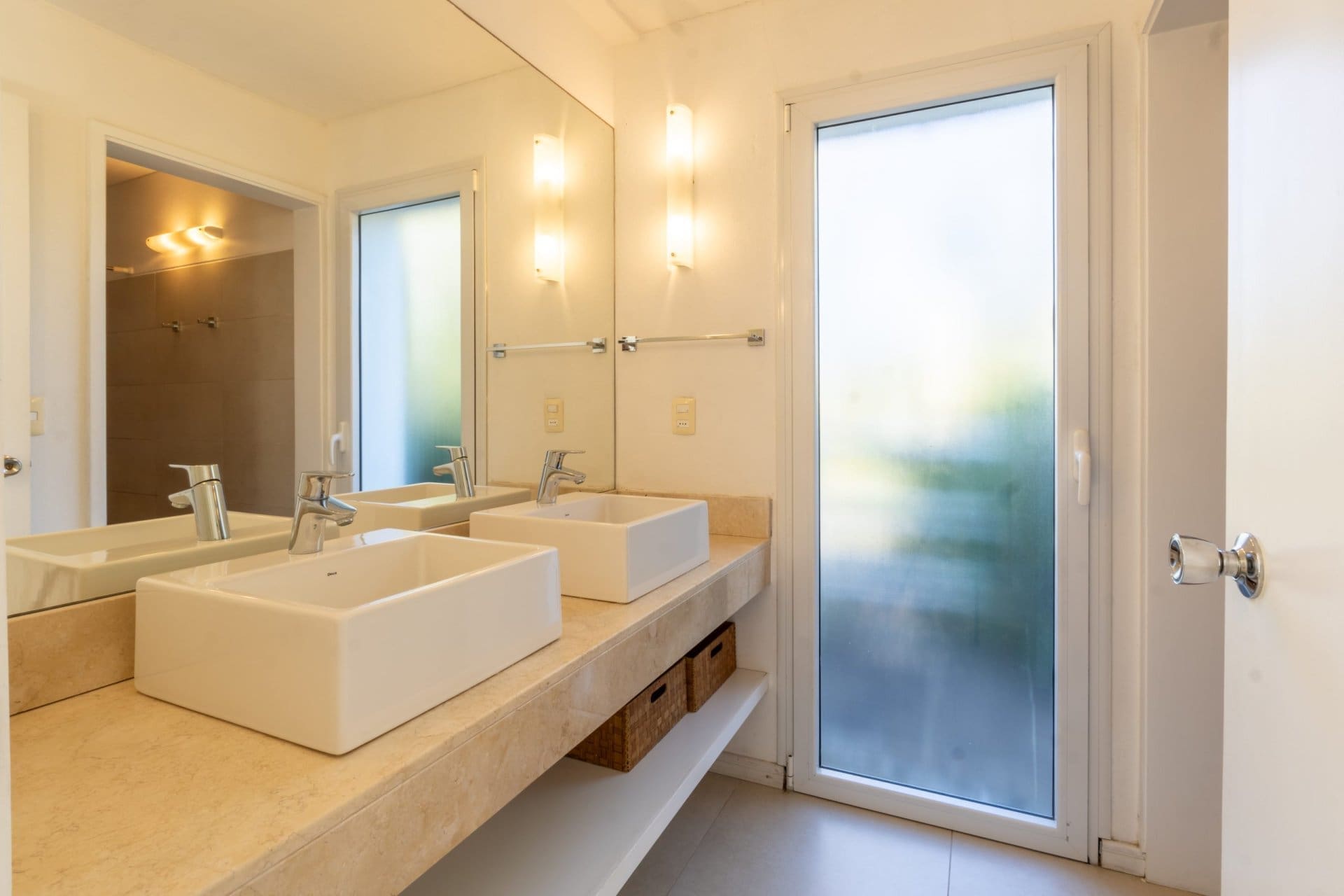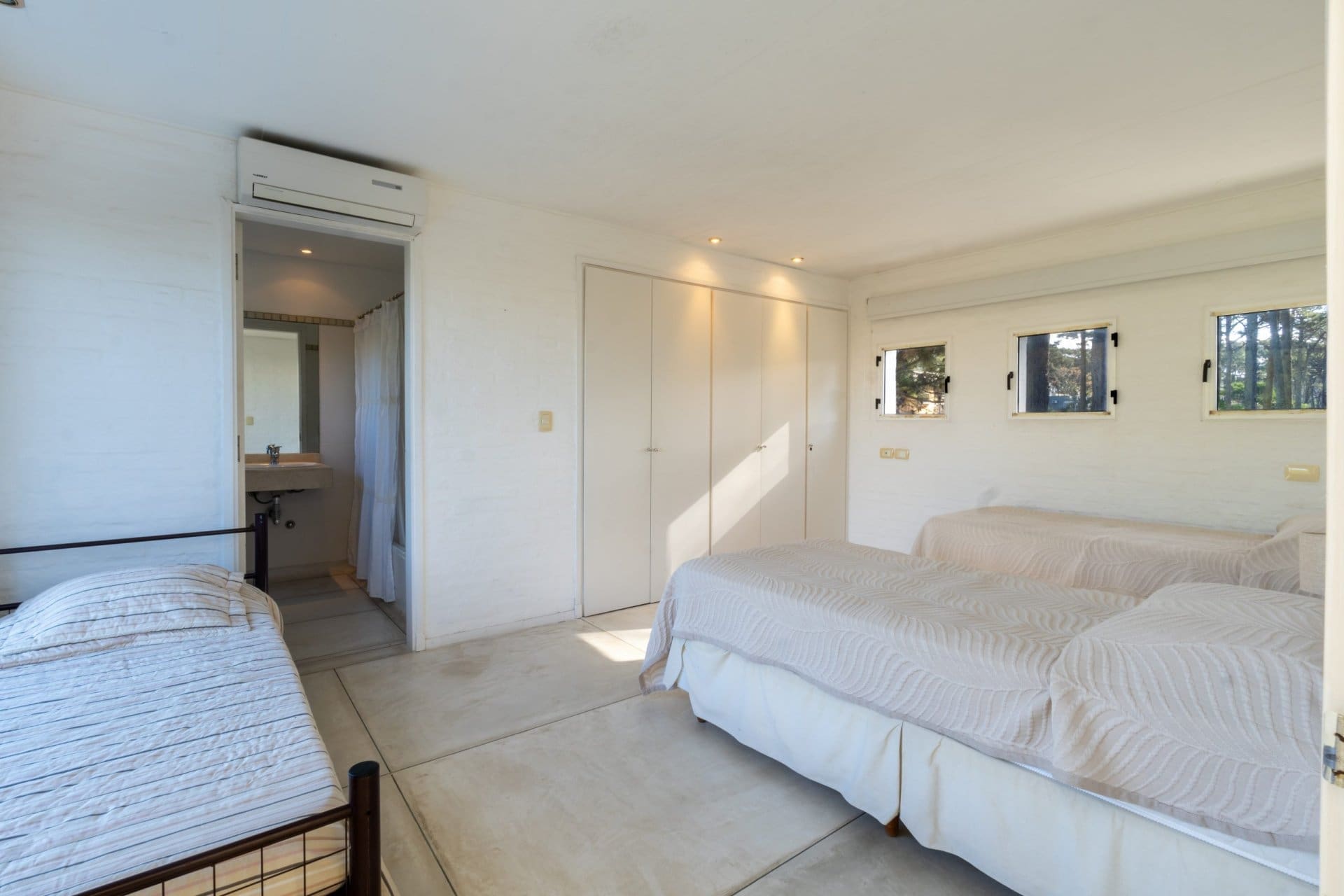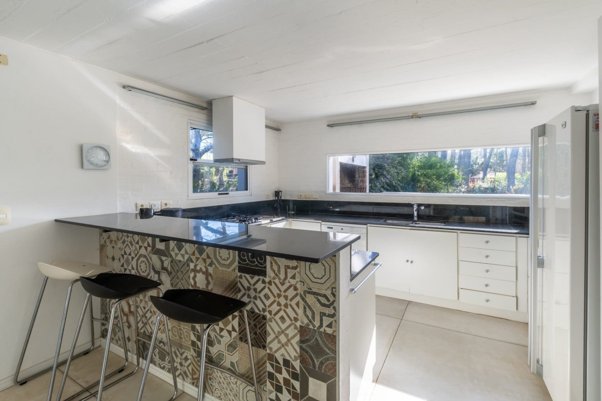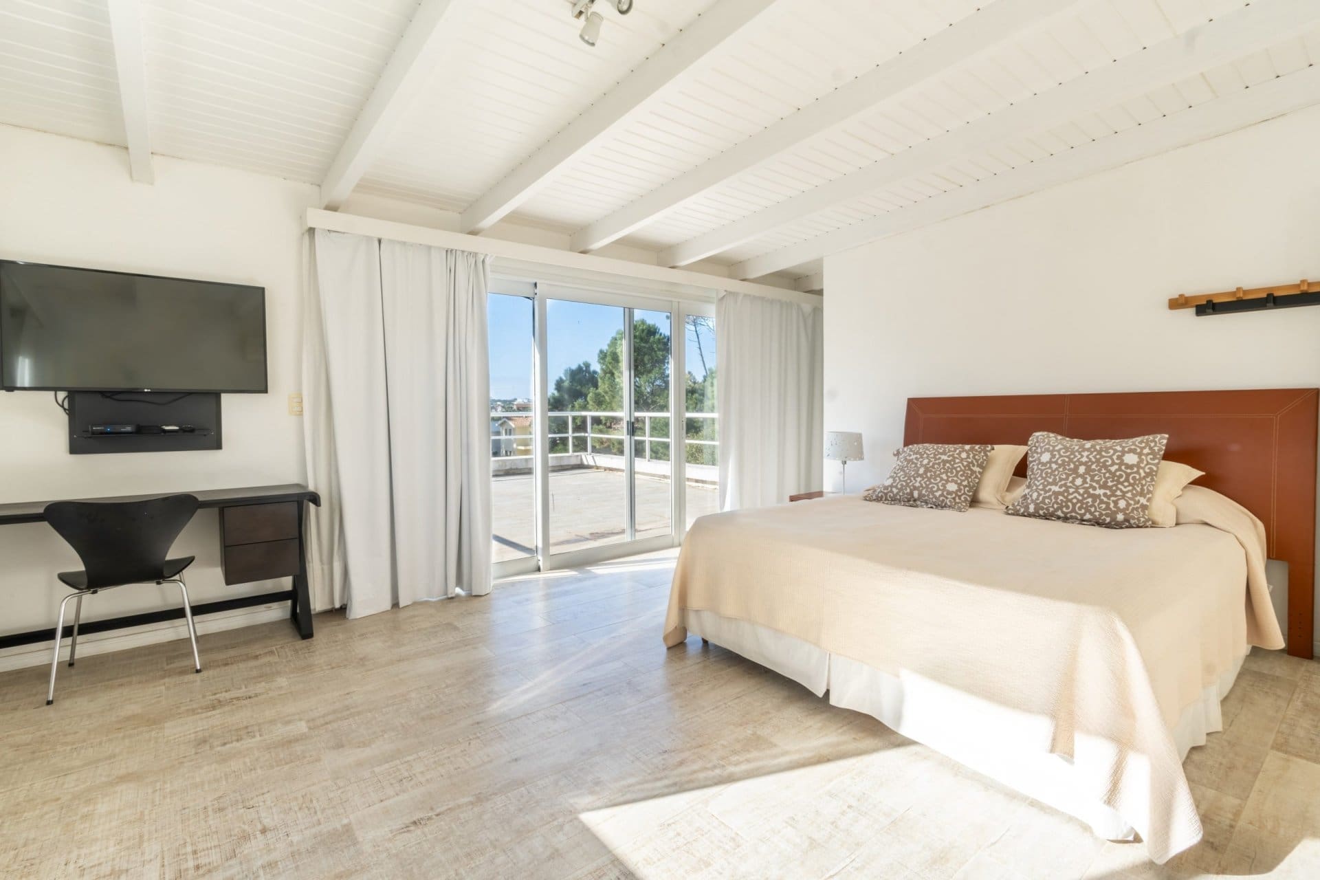 This wonderful modern 2 story home in Laguna Blanca is located within the gated community just meters from the sea. The ground floor comprises a spacious living and dining room, kitchen with breakfast area and utility room. In the opposite wing, there are two bedrooms sharing a bathroom and a large suite with direct access to the garden. The first floor consists of a private living room or TV lounge, master suite with dressing room and terrace affording sea views, and in the west wing, there is a further ample suite with sea views. Outside, there is a large BBQ/grill area adjoining a pergola, ground floor living room deck and swimming pool. There is also a staff bedroom and bathroom and parking for two cars.