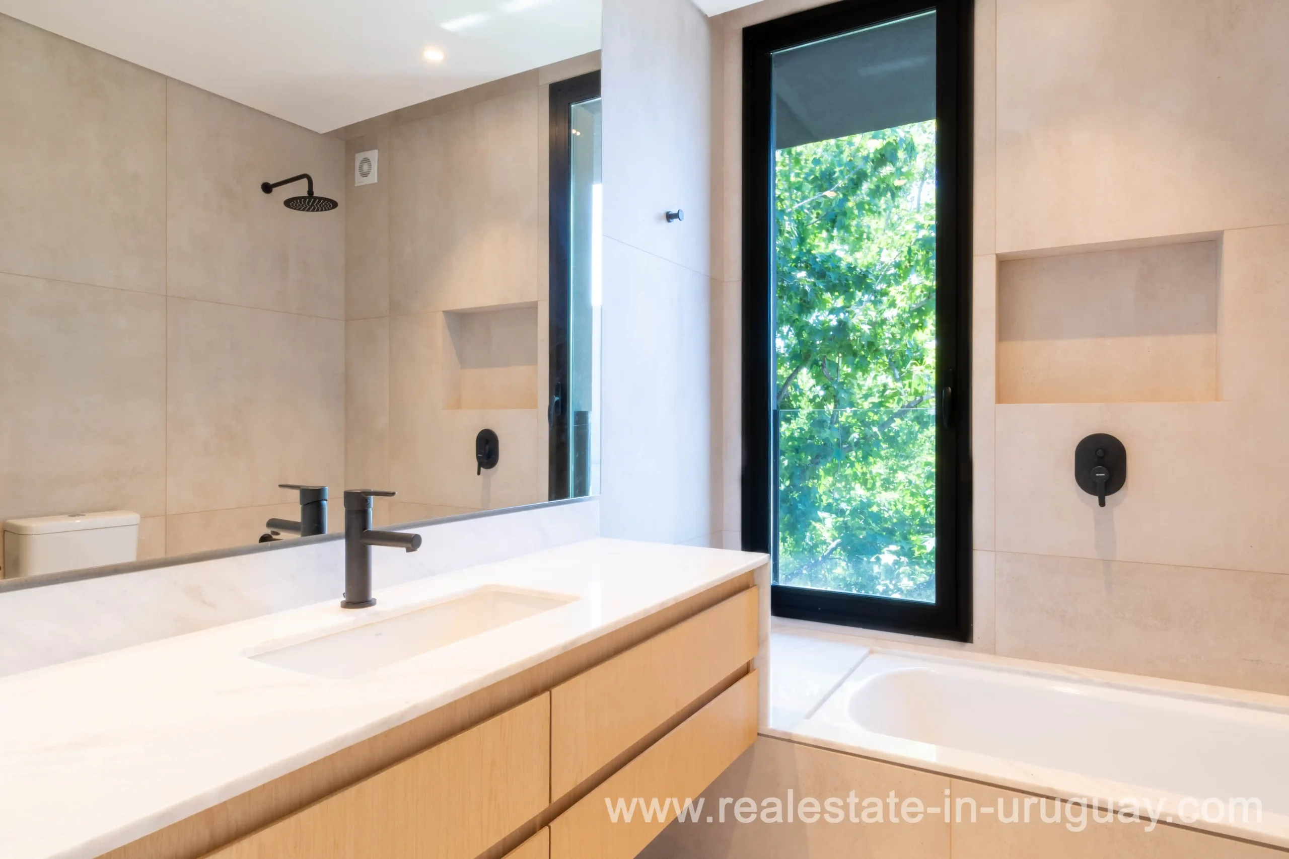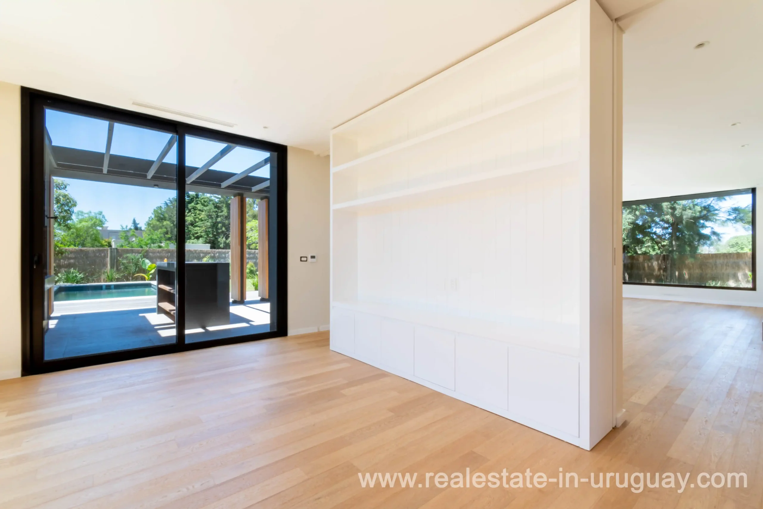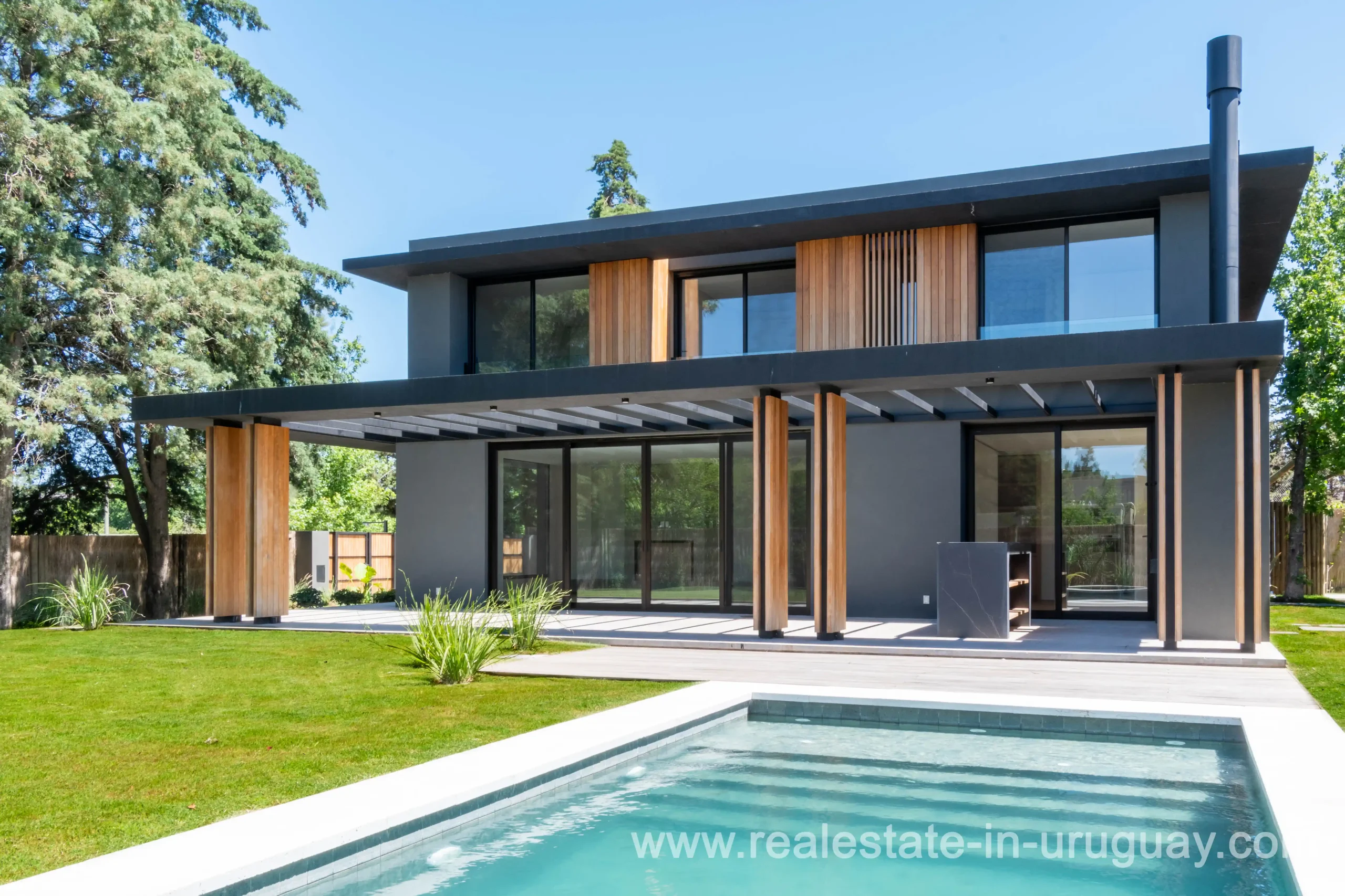 Modern and spacious house in San Nicolas, designed by a renowned architectural firm. This house, distributed on two spacious floors, is located on a corner lot of 781 m2 with a northeast orientation and has 387 m2 built. At the entrance, there is an entrance hall and a guest toilet. The spacious living-dining room has a wood-burning stove and high-quality DVH windows that go from floor to ceiling, letting in light all day long, thanks to its north orientation. The social area is designed in such a way that an elegant library separates the living-dining room from the living room, which in turn can be integrated or not with a sliding door to the kitchen. The entire social area has access to a generous pergola terrace with a barbecue and access to the garden with a swimming pool. The kitchen is designed with high-quality materials, Dekton, and Johnson appliances, and has an oven, stove, and Bosch hood. The kitchen has access to the laundry room and a bedroom with a full-service bathroom that has its own independent entrance. Upstairs, we have a distribution hall with modern windows that let in natural light. The master suite has a large walking closet and a bathroom strategically designed to ensure comfort. It also has another suite and two more bedrooms that share a bathroom equipped with a marble bathtub. The garden was specially designed by a landscaper and contains a variety of vegetation that is in full bloom. The house has central air conditioning on the first floor and provision for splits upstairs. Heating by heat pump and hot water by gas boiler.