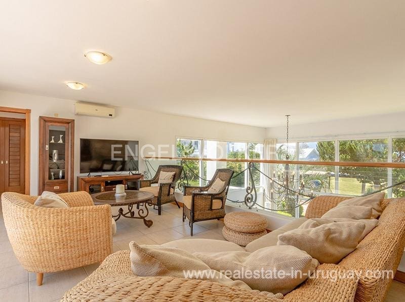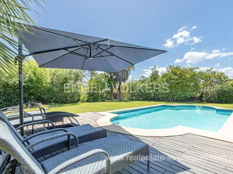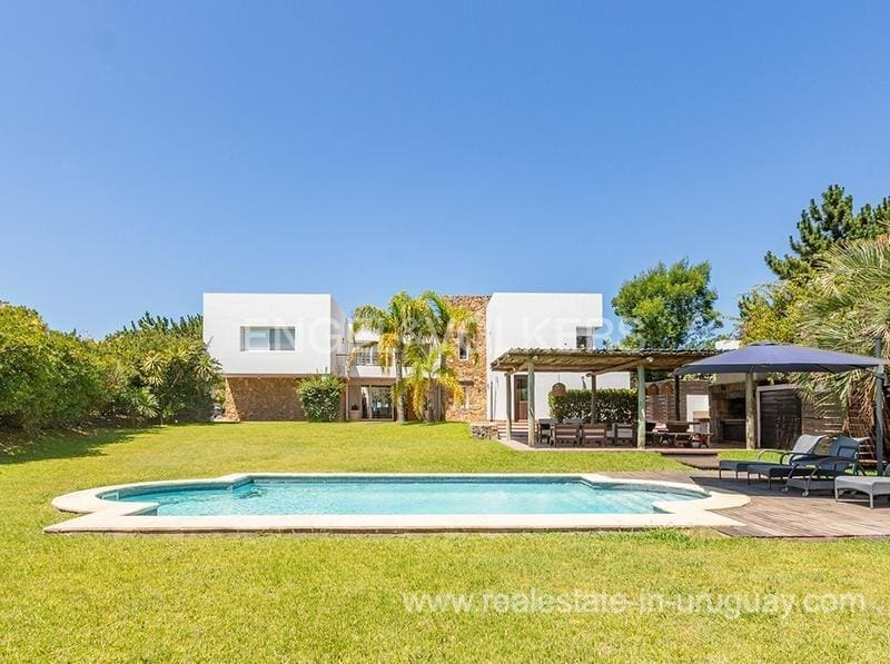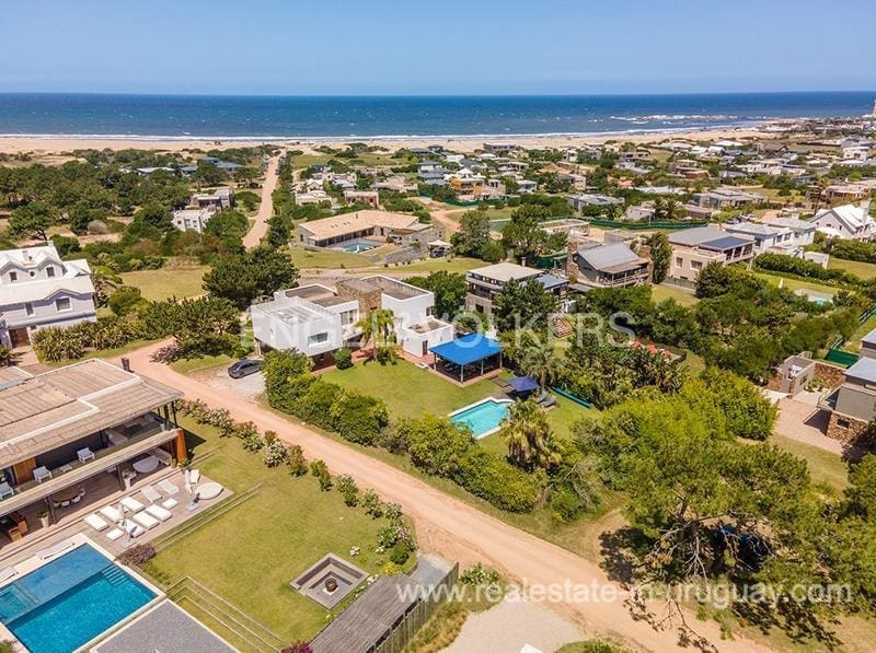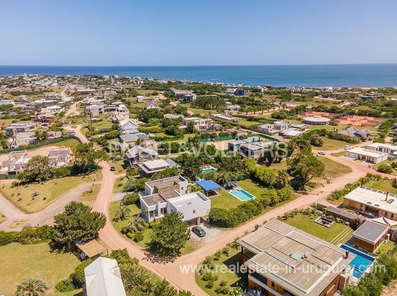 This modern property of 550 m2 impresses with its contemporary architecture. There is a bright living room featuring a cozy fireplace, a dining room, and an open kitchen. The property comprises four bedrooms, each with its own bathroom, a barbecue with pergola, and a heated swimming pool. All rooms have air conditioning and underfloor heating. The house also affords sea views. A perfect combination of modern design, functionality, and a prime location. Ideal for those looking for a contemporary and comfortable living space in an exclusive location. Situated in a gated complex in José Ignacio just a few meters from the town center. This exclusive location not only provides privacy but also proximity to the amenities in José Ignacio.