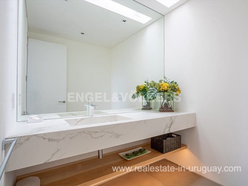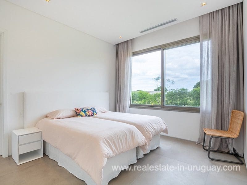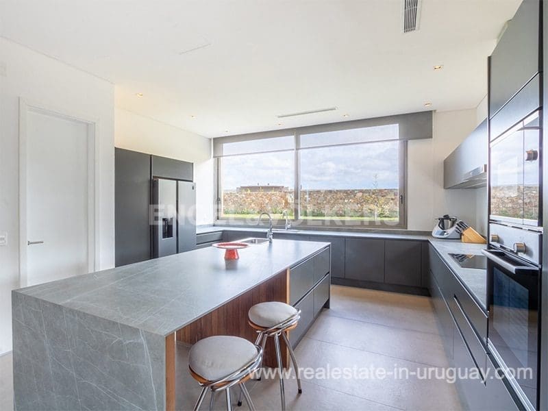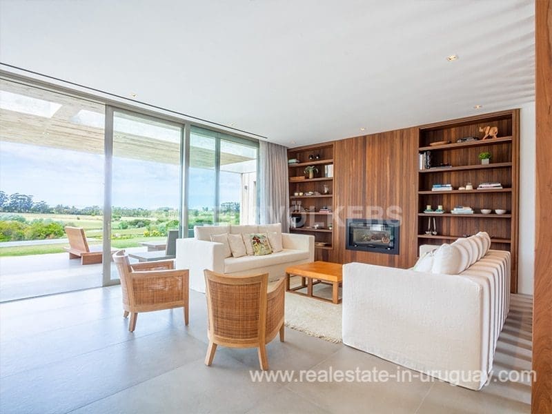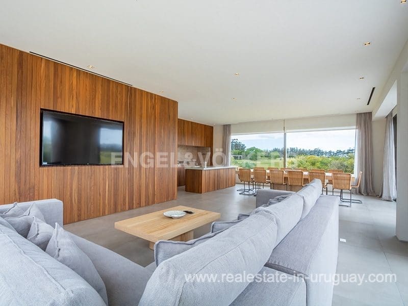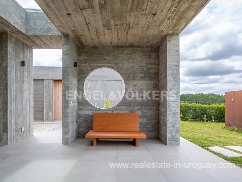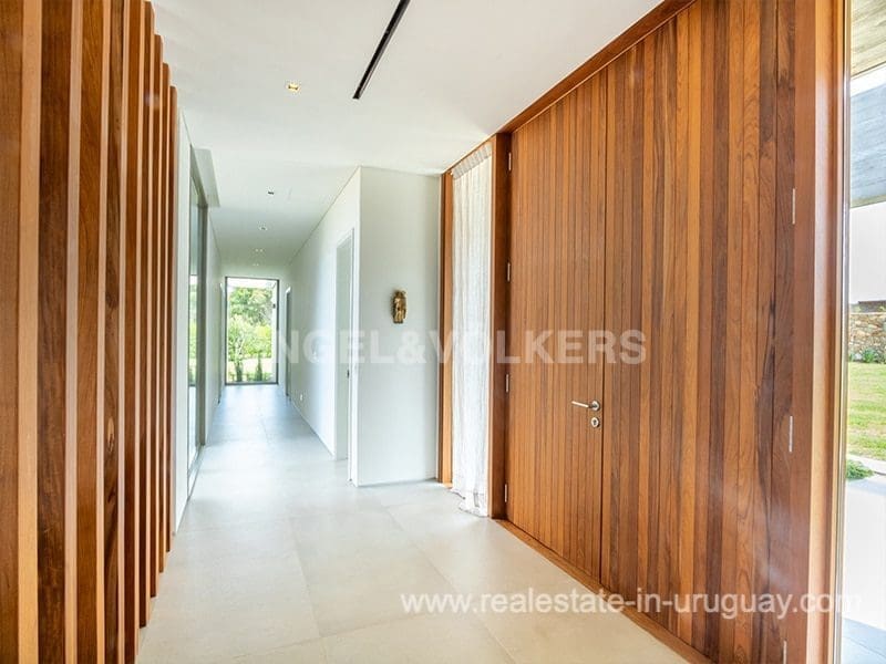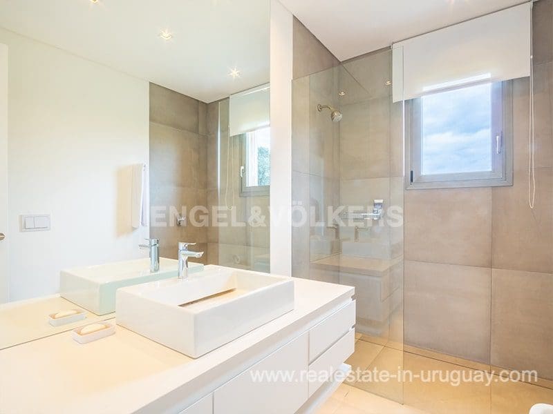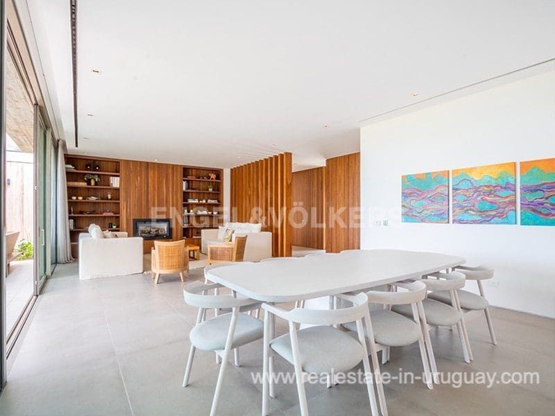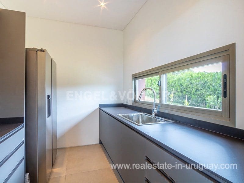 Located in the renowned Fasano complex featuring exceptional natural landscapes, contours designed in golf courses and polo fields, and organic vegetable gardens. This single-story modern house in Fasano Las Piedras has large windows and a sophisticated design. Living/dining room with panoramic views and high-performance wood-burning stove. Guest bathroom, two bedrooms with en suite bathrooms, plus two bedrooms with a shared bathroom and fully equipped independent kitchen. There is a covered deck with a living room for enjoying the unique and natural environment which characterizes Fasano. In the garden, there is an outdoor swimming pool next to an equipped BBQ with an independent kitchen and utility room. The property also comprises a guest bedroom with an en-suite bathroom, plus staff quarters. This property is the perfect choice for those seeking privacy, peace, nature, and quality time with the family, at the same time as being located just minutes from La Barra and the action in Punta del Este.
