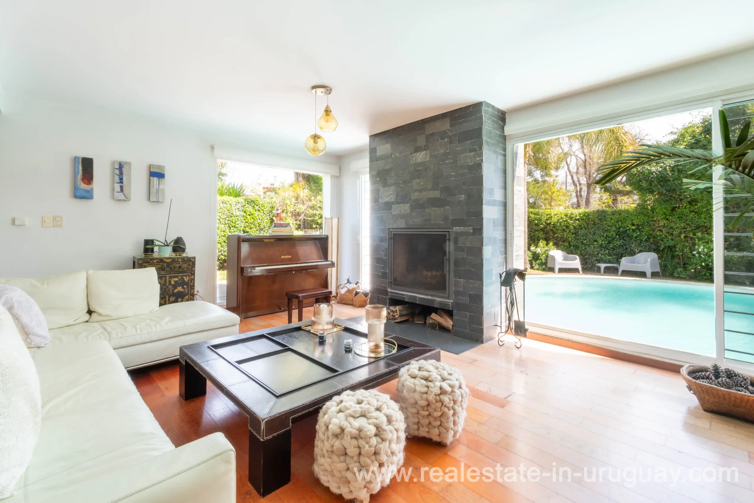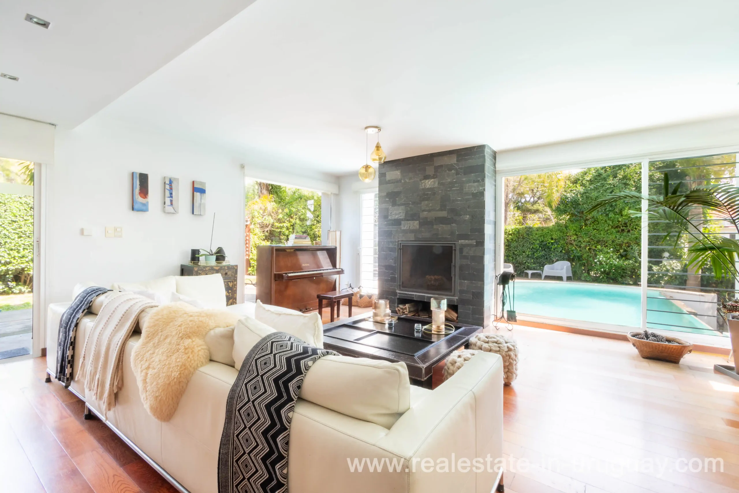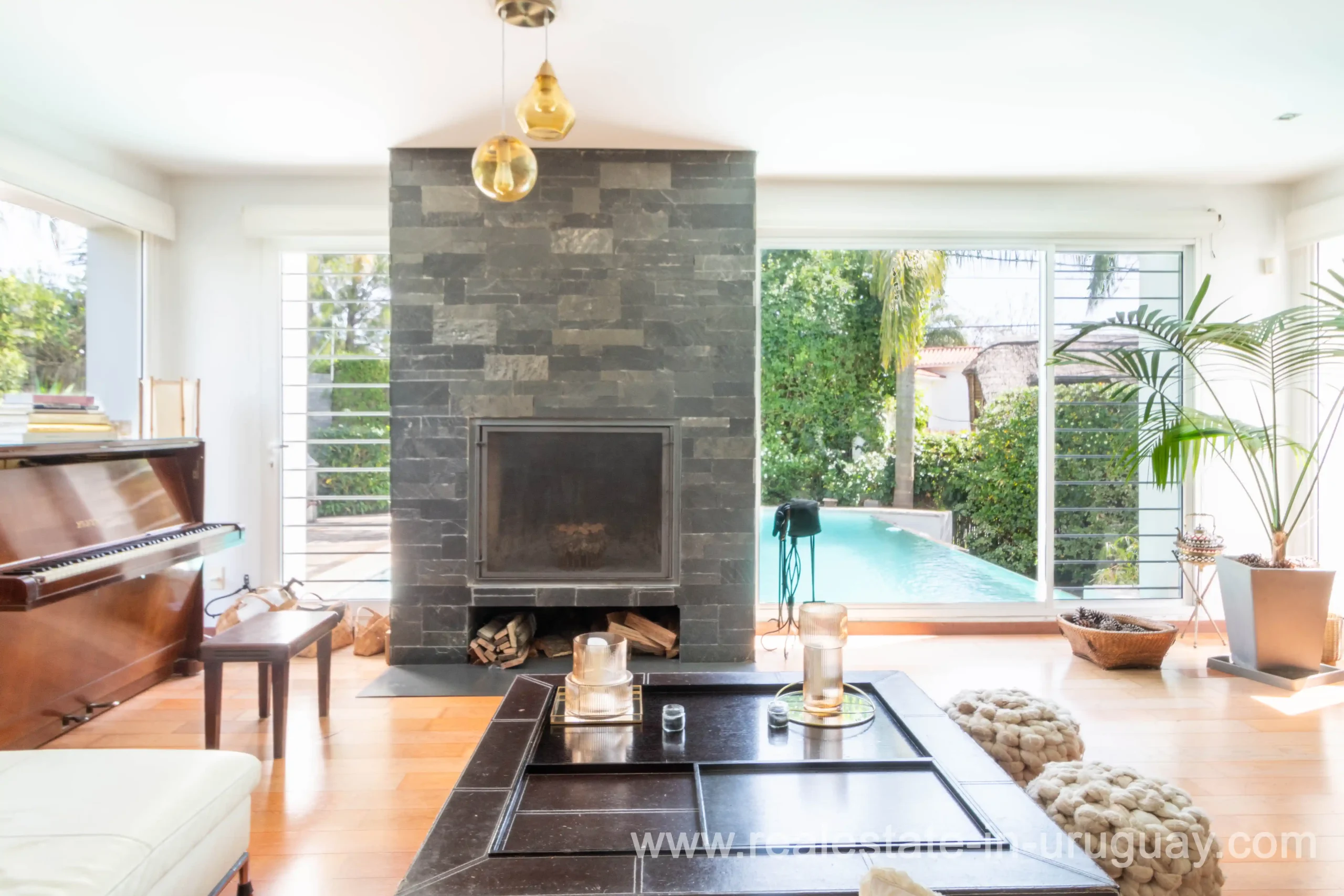 Modern house with all the necessary amenities for a large family, a beautifully designed green environment, a stunning infinity pool with a waterfall, and a complete security system. The house features double vehicle and pedestrian access. Upon entering, there is a welcoming hallway with a guest toilet. Next, we find the social area, which consists of a spacious and bright living-dining room with a fireplace and a view of the pool. Following this, there is a large, fully-equipped kitchen with an island. The laundry area is separate, and it includes a very spacious staff bedroom with a full bathroom. Descending a few stairs, we reach a semi-basement that is set up as a lounge and wine cellar. In another area on the ground floor, there is a comfortable sitting room with another stove and a space that can be used as an office. On the upper floor, we have a large master suite with a fireplace, two walk-in closets, and a double bathroom. In another separate area, there are three spacious bedrooms, each with an en-suite bathroom; one of these can be divided, resulting in 4 bedrooms in addition to the master suite. The house has a beautiful outdoor space with a garden, pool area, and solarium, as well as another area with a barbecue and a bar. Heating is provided by a gas boiler with underfloor heating and some rooms with radiators. Security: The house is equipped with perimeter motion sensors, cameras, electric fencing, and an alarm with response service.
