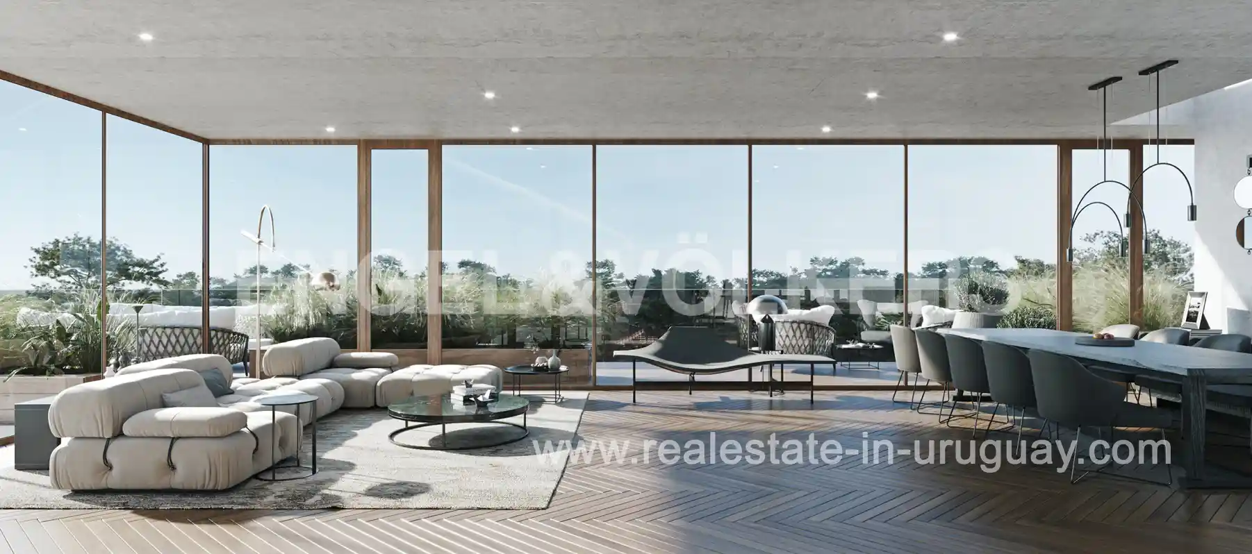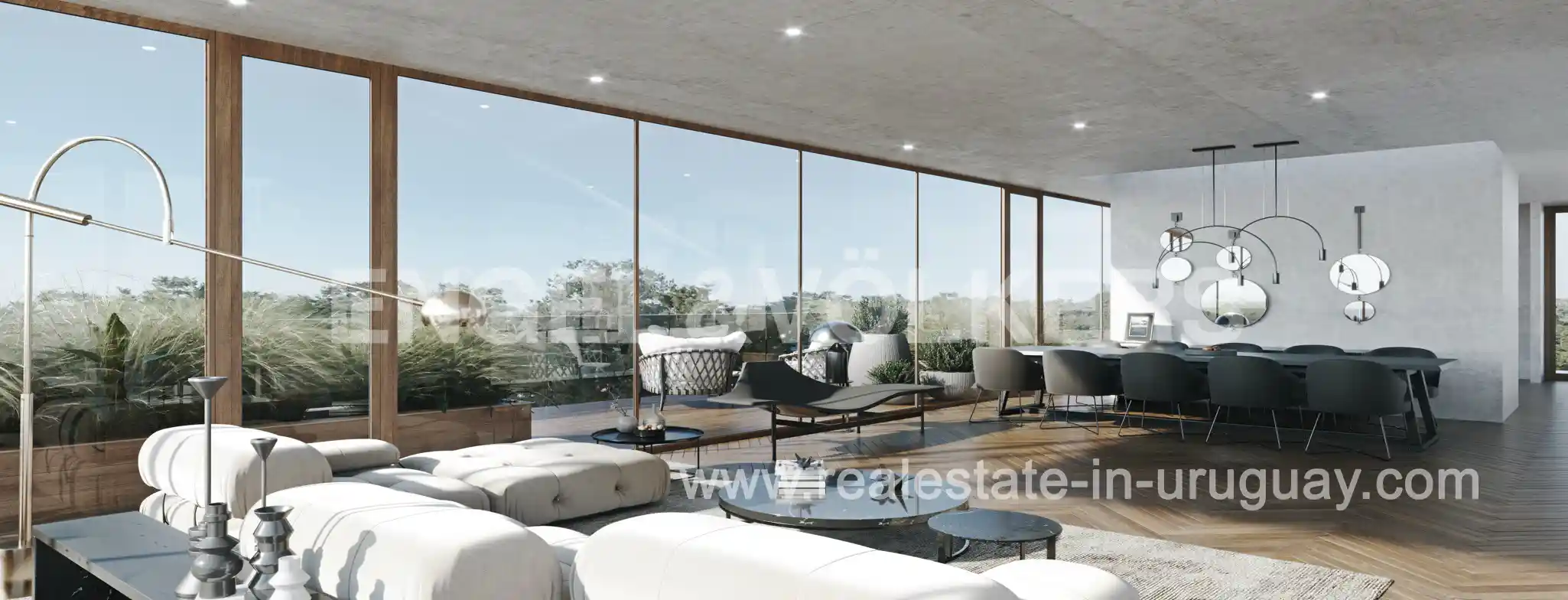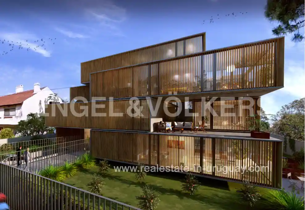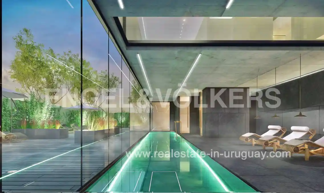 PROJECT TO BE READY IN JUNE 2025* Modern minimalist apartment in Carrasco Sur featuring simple and clean lines, where glass, concrete, wood, and greenery play an important role. It will consist of a residential building with 7 exclusive units for sale in Carrasco Sur. The overall proposal is based on principles of sustainability and the use of land and solar energy, including orchards, trails, and flower beds, all in harmony with the area’s greenery. The thermopanels installed on the windows allow the sun’s rays to enter during winter, providing warmth inside and reducing energy consumption for heating the rooms. In summer, the façade system filters the sun’s rays. Units on the first and second floors will boast a spacious glazed living and dining area with a fireplace, a kitchen with an island, terraces with barbecues, 3 bedrooms, and 3 bathrooms. The layout of the units and the sizes of the terraces will vary. The building will feature a wellness spa with a heated pool, a relaxation area, a sauna, and a gym. Additionally, it will have a barbecue/gourmet kitchen with access to a large outdoor deck. Contact us for a complete price list and floor plans.