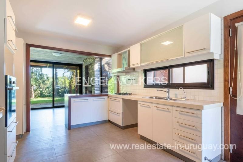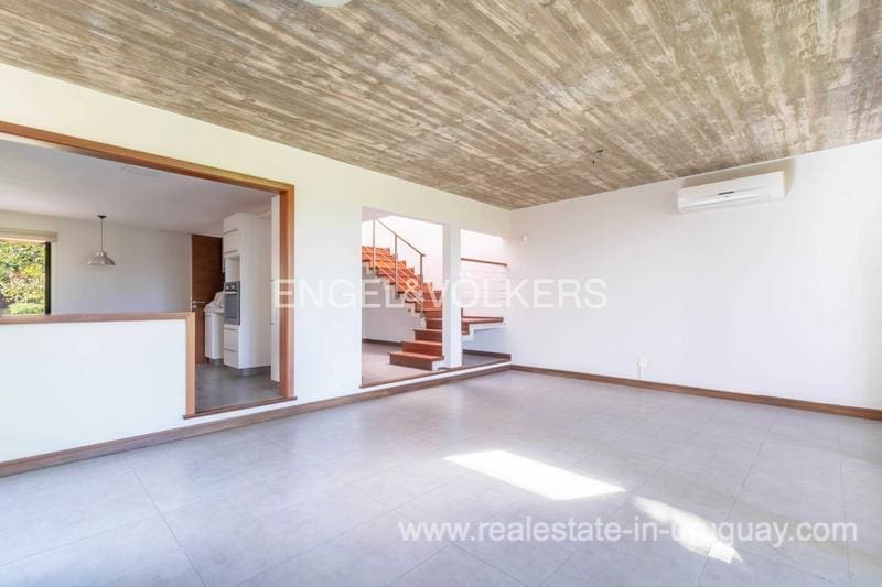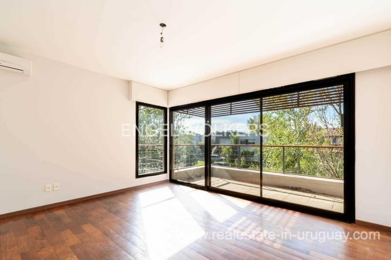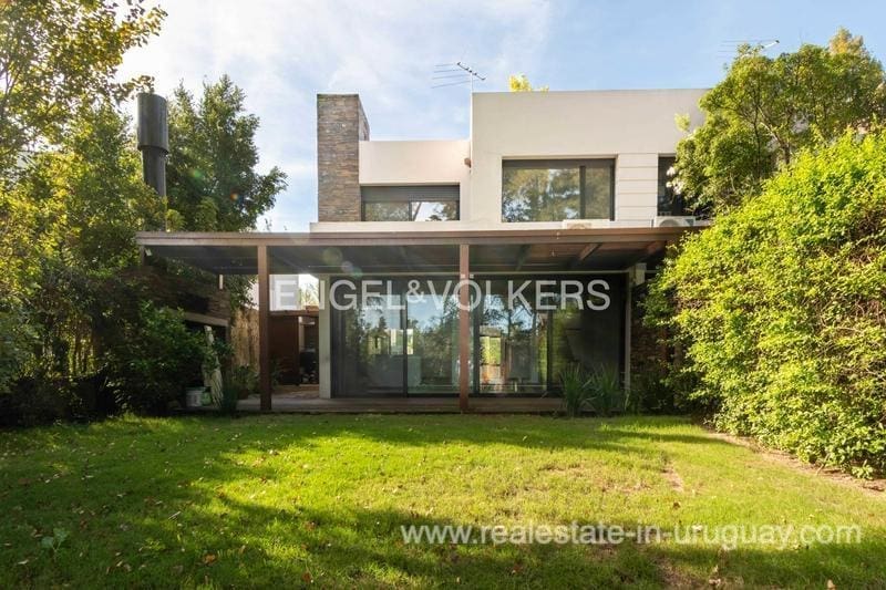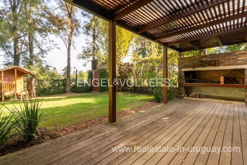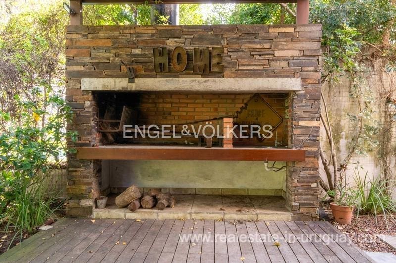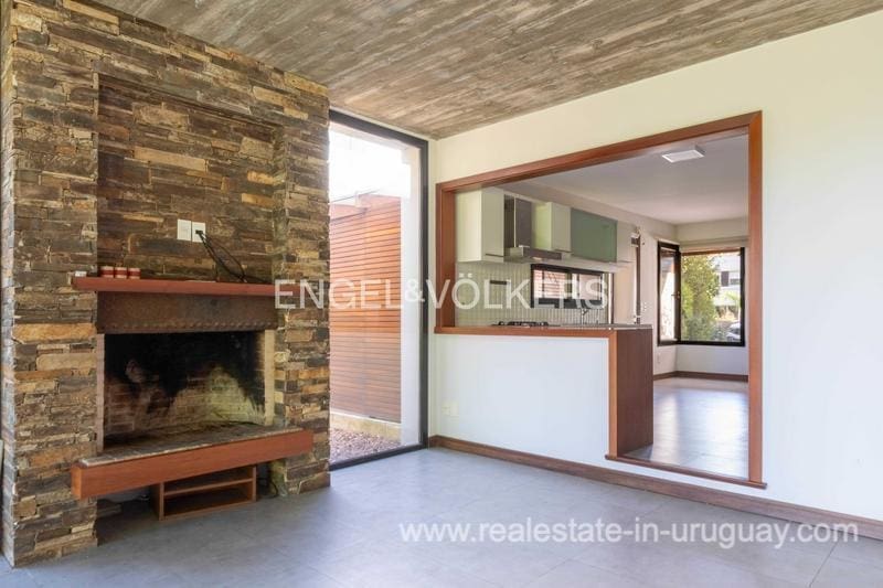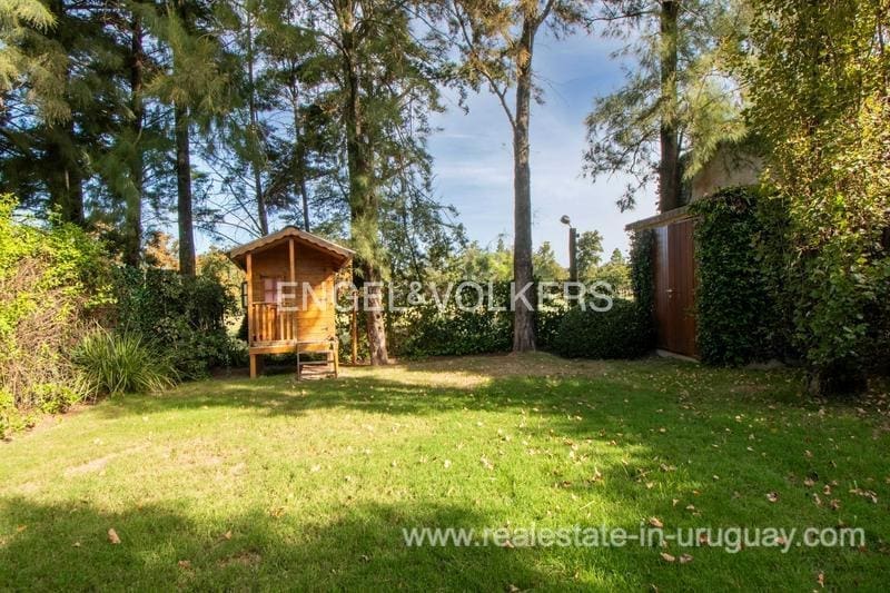 Townhouse for sale in the exclusive San Nicolas district by Carrasco. The house features 183 m2 of interior space plus a nice terrace, on a 414 m2 plot of land. The property stands out for its solidity, luminosity, and excellent finishes, with lapacho floors and DVH openings. The ground floor offers a reception hall, toilet, living room at the front, and a large family room with a wood stove connected to the kitchen, linked to the backyard. On the upper floor there are three bedrooms: the master suite with a dressing room, and two bedrooms that share a bathroom. Underfloor heating. The house offers an enjoyable terrace with a barbecue, a wooden deck, and a pergola. Nice garden. Alarm system and 24-hour security of the neighborhood. Parking space for 2 cars.