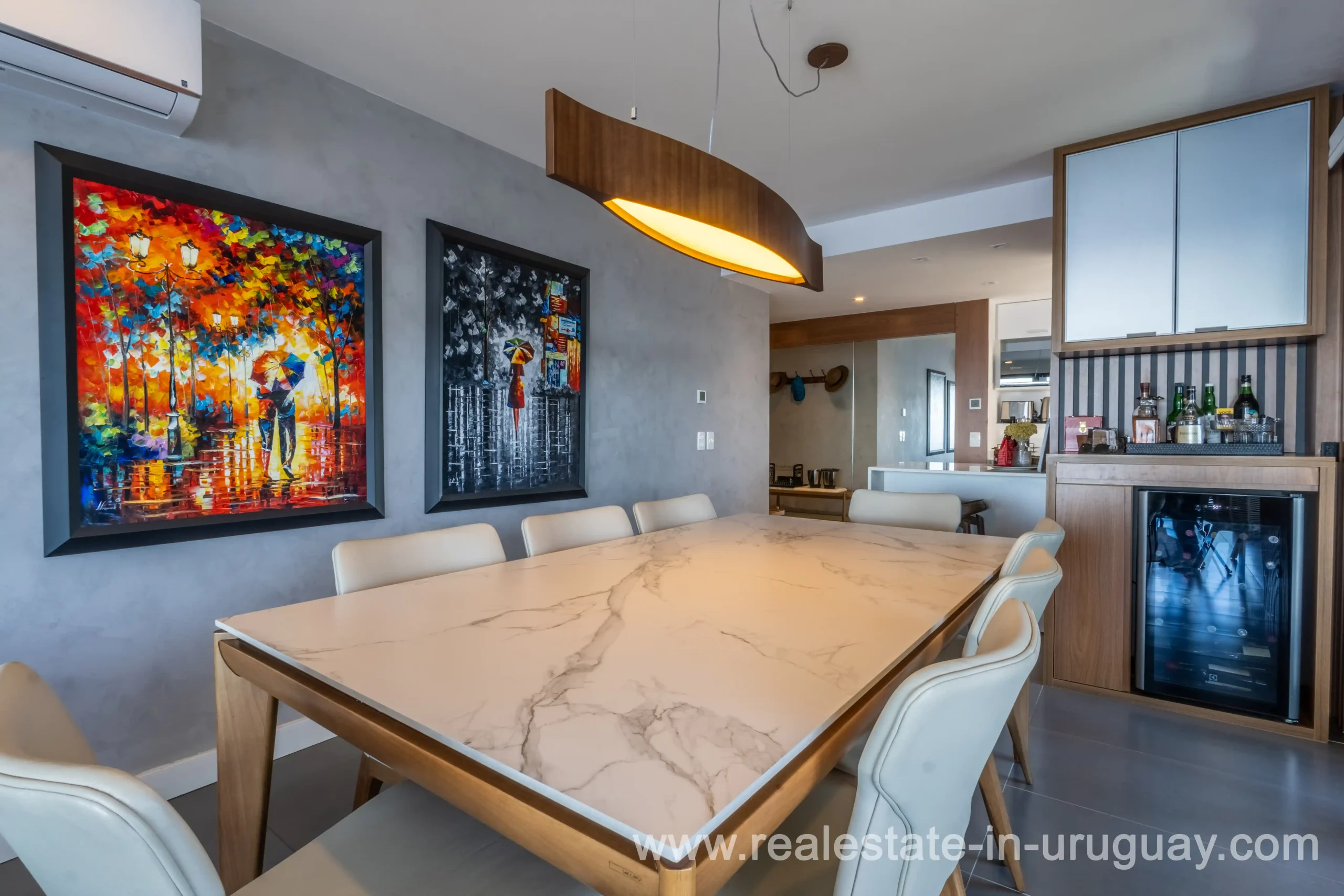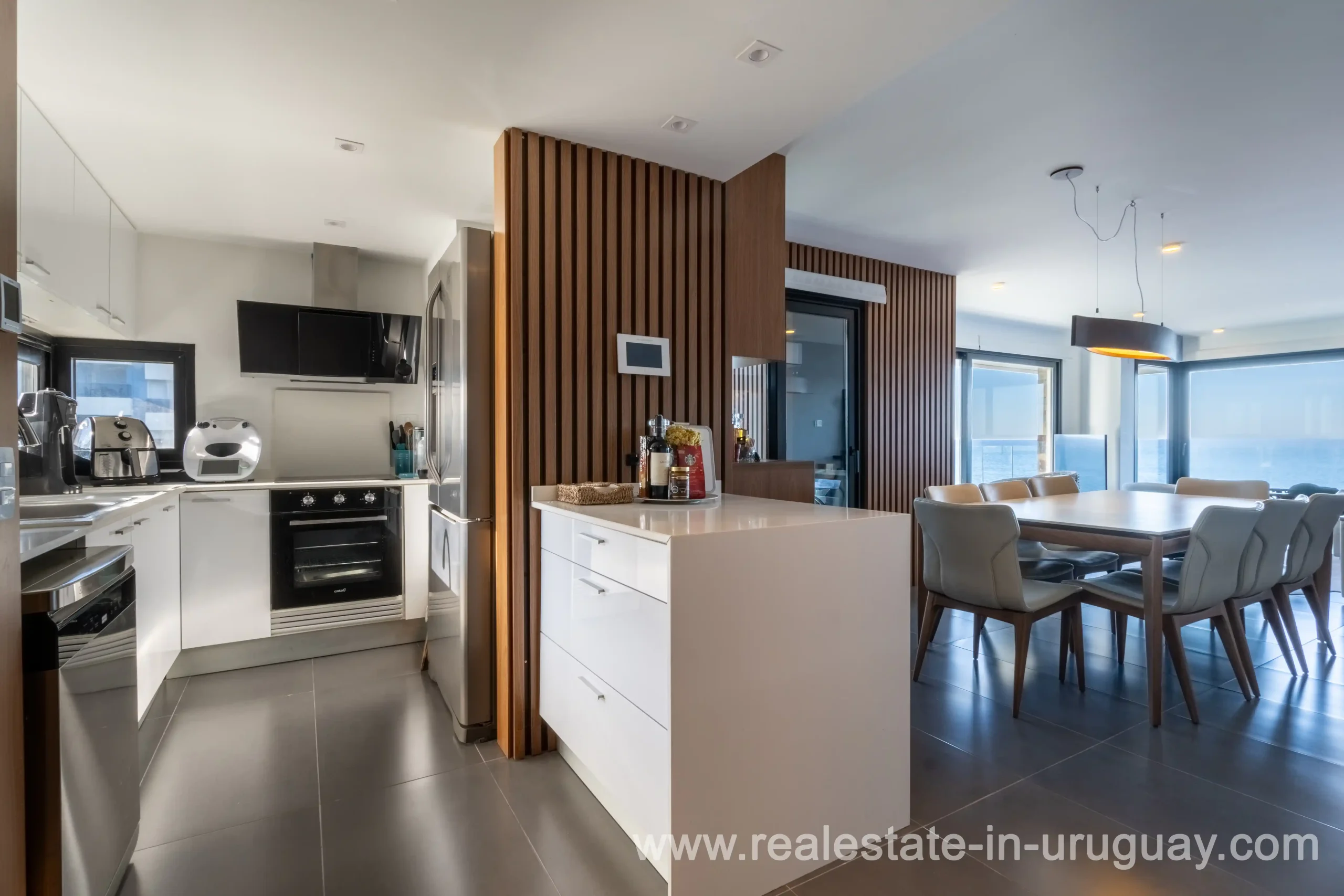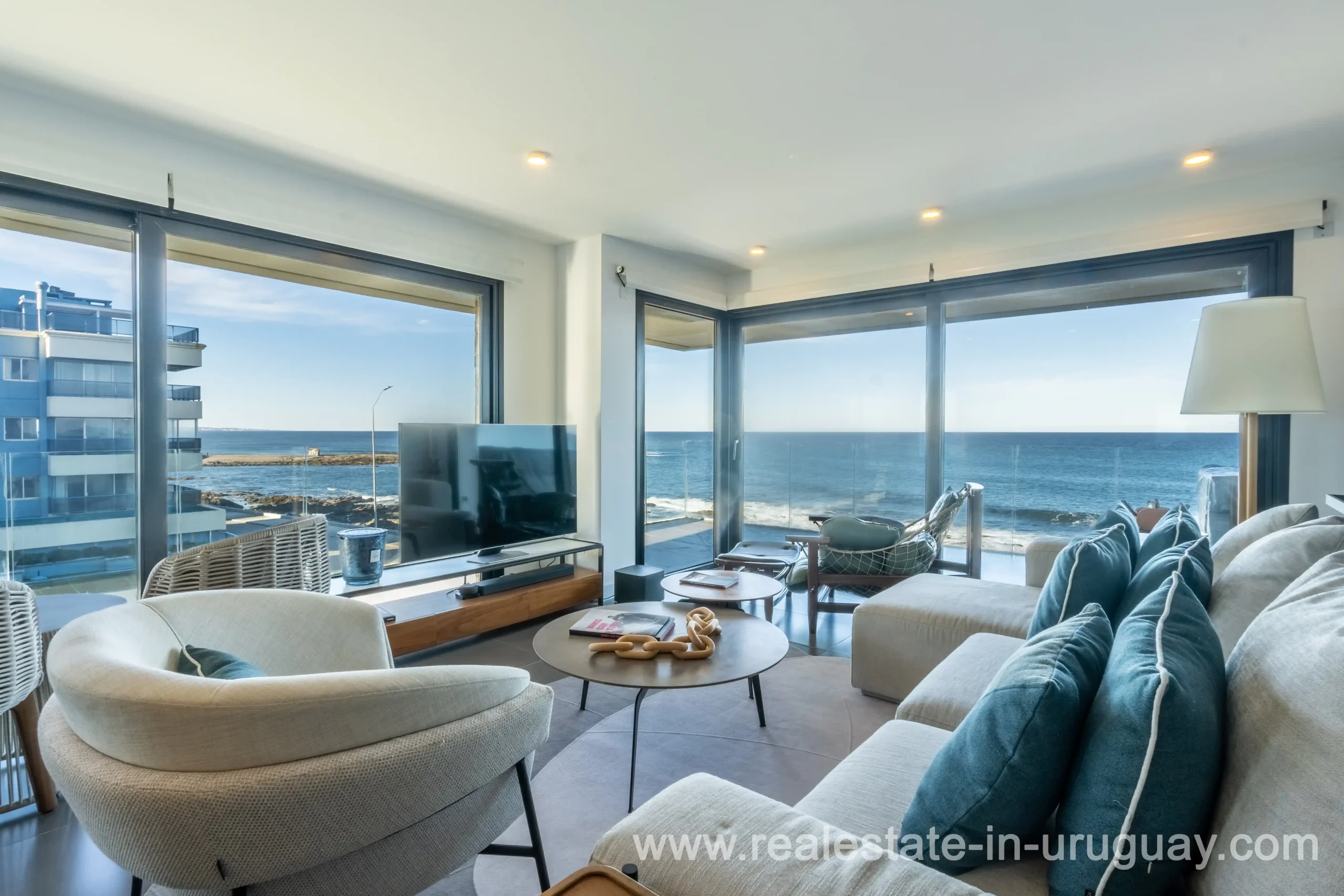 In the most modern building of the Peninsula, just meters from El Emir and Ingleses beaches, we find this beautiful apartment with a modern and sophisticated aesthetic. An excellent proposal for optimizing space, view, and comfort. It is a corner unit on the third floor. The view is exceptional and seems to integrate with the sea in a very peculiar way. The morning sun reaches the balcony, the living-dining room, and some of its bedrooms. It has three bedrooms, the main one en suite, and two bedrooms share another full bathroom. Excellent storage space. The living room is spacious and very bright, surrounded by a terrace balcony; the dining room is connected to the semi-integrated kitchen and the balcony with a barbecue grill with a mixed wood and charcoal system. The entire apartment has significant improvements that provide a very special imprint, decorated in a modern and sophisticated style. Home automation. Excellent storage space. A large balcony surrounds the entire corner with an additional electric grill. It includes a parking unit. It features double glazing with an air chamber, excellent enclosures, electric underfloor heating, cold/hot air conditioning splits. The building was inaugurated in 2020 and has complete services and amenities: daily maid service, 24-hour reception, surveillance, micro-cinema, heated indoor pool, sauna, jacuzzi, open pool, barbecue areas, gym, and beach service during the summer months. It is truly an excellent option for those who know and love the Peninsula in Punta Del Este for its proximity to the sea, beach, services, restaurants, and spectacular views. It is an ideal apartment for living throughout the year.