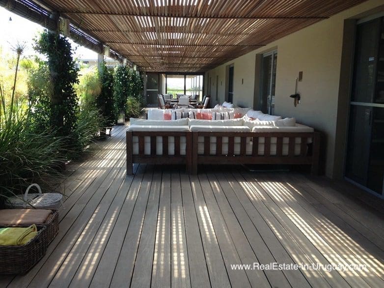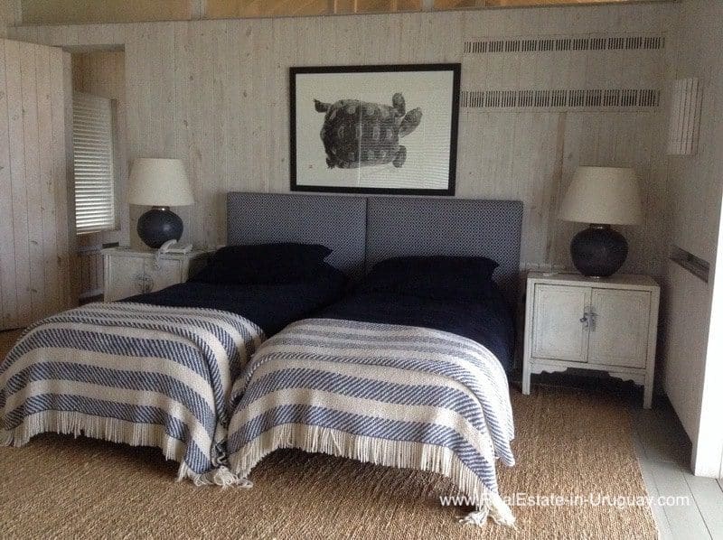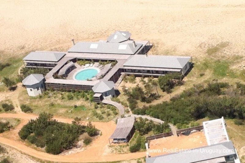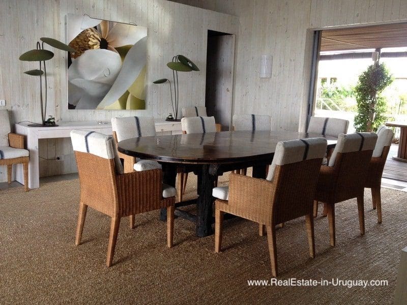 One of a kind beach front property near Punta del Este on 26 hectares land with direct access to the beach and ocean in a secluded private area on the seashore. The property features several species of native flora in a landscape with which the architecture of the prestigious Architect Mario Connio blends into the natural surroundings. The property is composed of different buildings joined by decks and pergolas with a very intimate pool of 58m2 in the middle and lush vegetation. Multiple Lapacho wood decks and spaces overlook the beach and the sea. In the main building of the house is the living room with a bar, dining room, kitchen, separate reading room and a cinema with blue-ray sound system. The property features five spacious, comfortable and bright suites overlooking the sea. The main suite is made up of an independent module. This house has floor heating with hot water re-circulation in all the rooms and it works with 12 solar panels and/or gas boiler), hot and cold air conditioning in all rooms, automatic curtains throughout the house, perimeter alarm, access with automatic gate opening and closed circuit surveillance camera, fire system, automatic power generator, wireless internet, 5 telephone lines (2IP), wastewater treatment plant. A true oasis to enjoy wonderful vacations throughout the whole year and being about 30 minutes away from Punta del Este. A viewing is highly recommended.