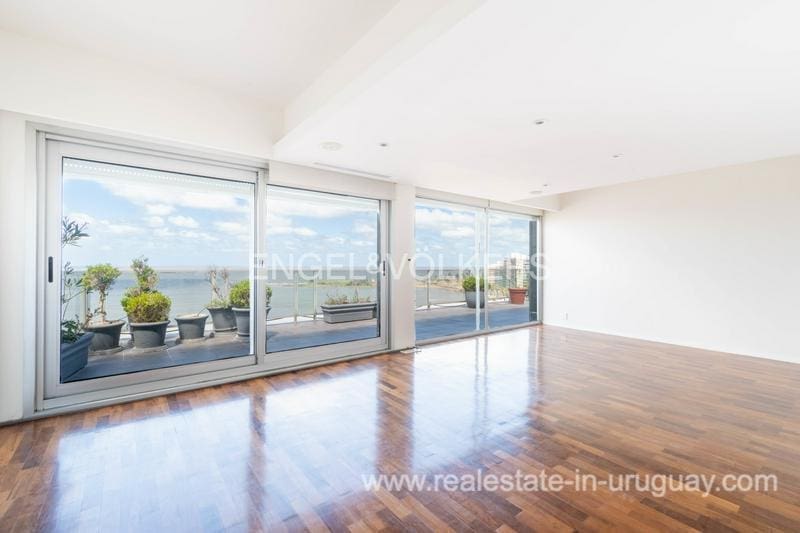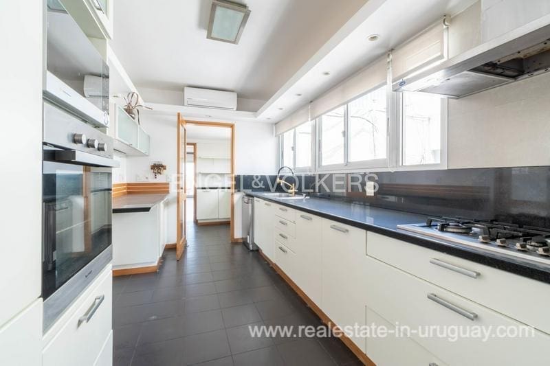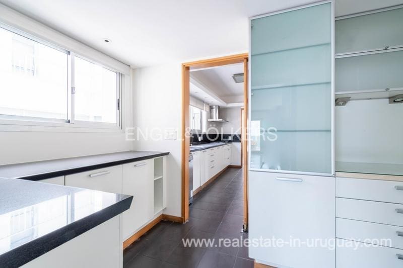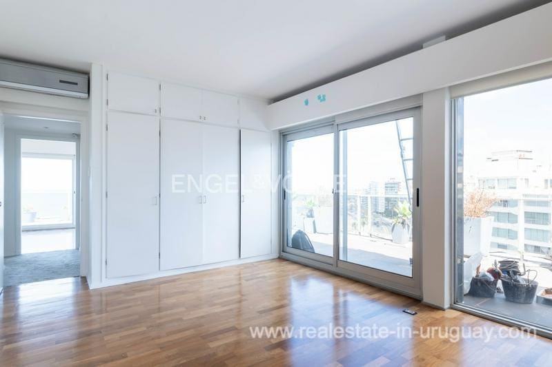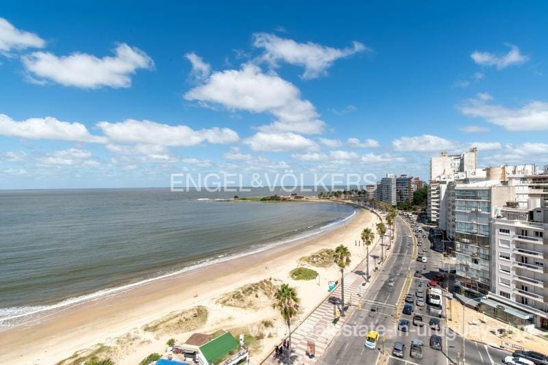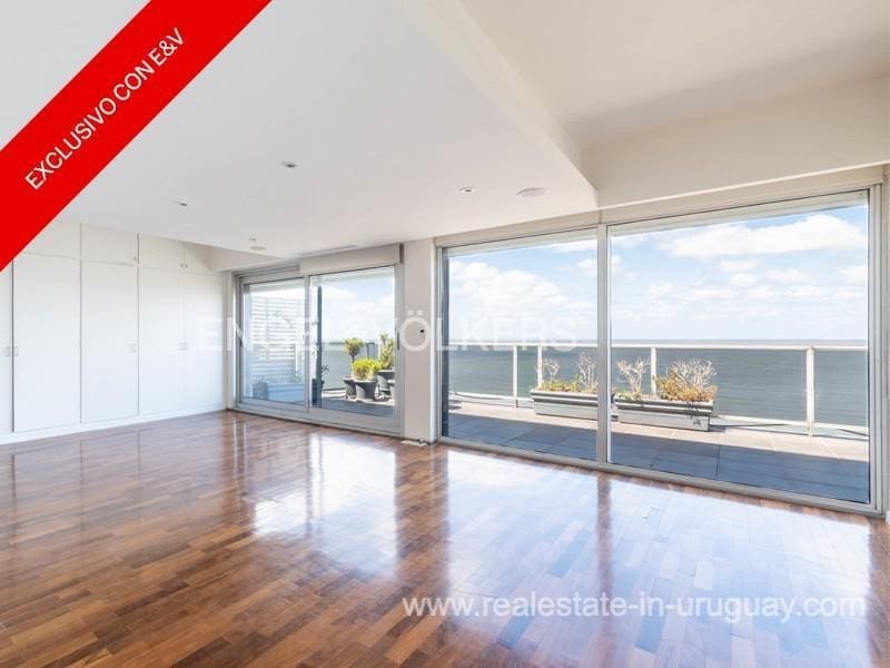 Nestled along the shore, this stunning penthouse flaunts a 27-meter façade overlooking Pocitos Beach. Spanning a single floor, it encompasses 330 m2 of indoor space and a 130 m2 terrace, delivering unrivaled sea views. The unit boasts a seamless design with dual circulation. Its reception area showcases a capacious living-dining room at the forefront, accessed through expansive windows leading to a cozy 130 m2 terrace, offering exceptional sea views. Additionally, it features a sunlit lounge and a daily dining area with a wood stove. Comprising 5 spacious bedrooms, a guest toilet, 4 full main bathrooms, and two service bedrooms with another full bathroom. The expansive master suite boasts large windows opening onto the terrace, a walk-in closet, and ample wardrobes, along with an en-suite bathroom. Two more sizable bedrooms or offices, one partially annexed to the living area, offer terrace access and individual full bathrooms. The generous kitchen boasts dual circulation, Johnson kitchen furniture, and a laundry terrace with a barbecue grill. Two storage rooms, one for a pantry and one for storage, are also included. Noteworthy amenities encompass central underfloor heating and hot water, aluminum windows with double glazing, motorized blinds, and lapacho wood floors. All rooms feature split-type air conditioning, while the living area and master suite boast ducted air conditioning. The garage accommodates two cars. Additional facilities comprise a large indoor swimming pool with hot water, a gym, and a multipurpose room on the ground floor. Furthermore, the building offers 24-hour concierge service and surveillance cameras. Contact us if you want to see the Penthouse with sea views in Pocitos Montevideo.