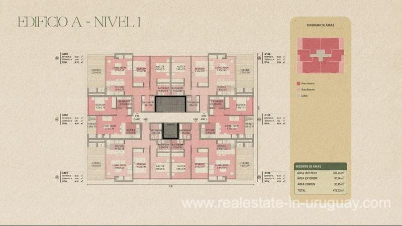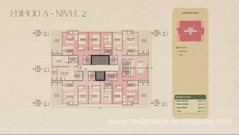 This project combines the highest standards of architectural and construction quality by the Gómez Platero studio to enjoy all-year-round living in La Barra. It is made up of apartments and semi-detached houses in a wooded setting close to the sea, linked by a high-quality amenity area, with attention to landscaping, and in a large area of 10,000m2. The architecture is remarkable, with finishes that are pleasing to the eye, where concrete and wood predominate. The construction is traditional, with double-glazed windows (DVH), underfloor heating, fireplaces, and air conditioning in all the units. All have their own terrace with barbecue. The ground floor units also have a garden, while the penthouse units have a roof terrace. There are 1, 2 and 3-bedroom apartments, while all houses have 3 bedrooms. Amenities include a communal barbecue area, heated swimming pool, gym/fitness center, communal laundry, study and meeting rooms, outdoor games, 24-hour security, and parking. Contact us to find the unit that best suits your lifestyle.