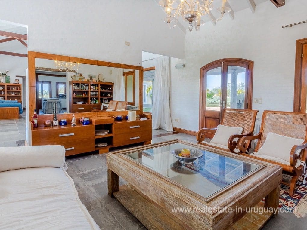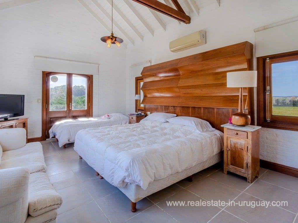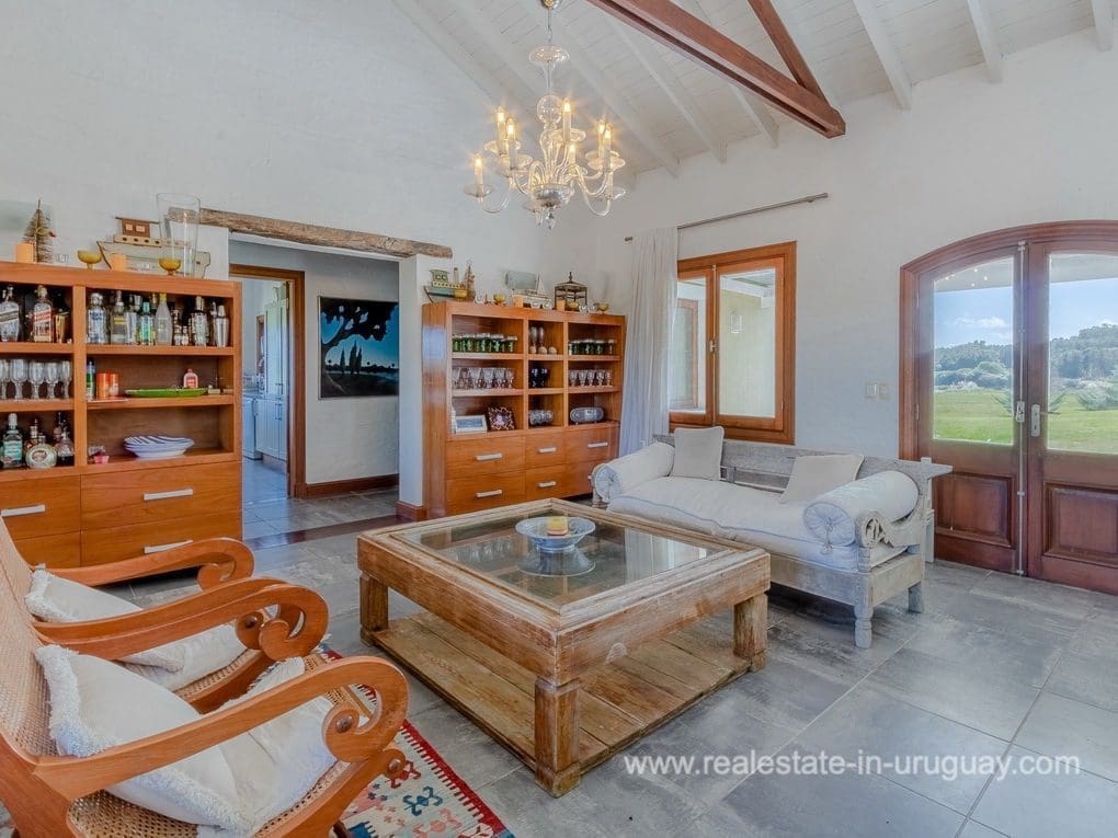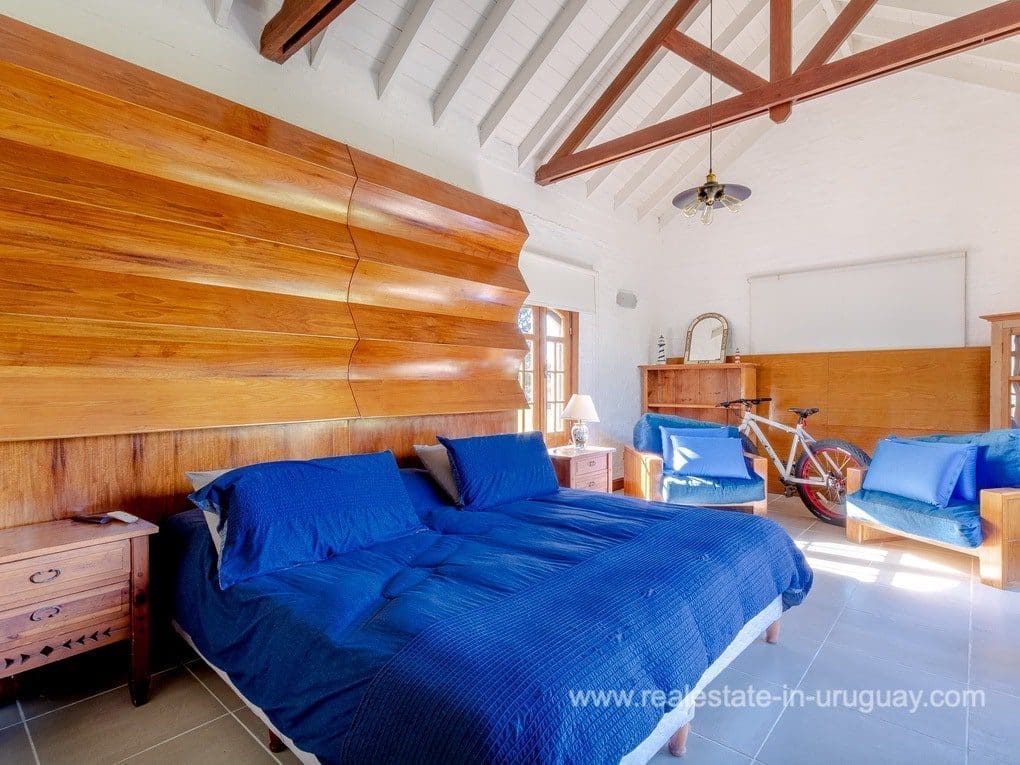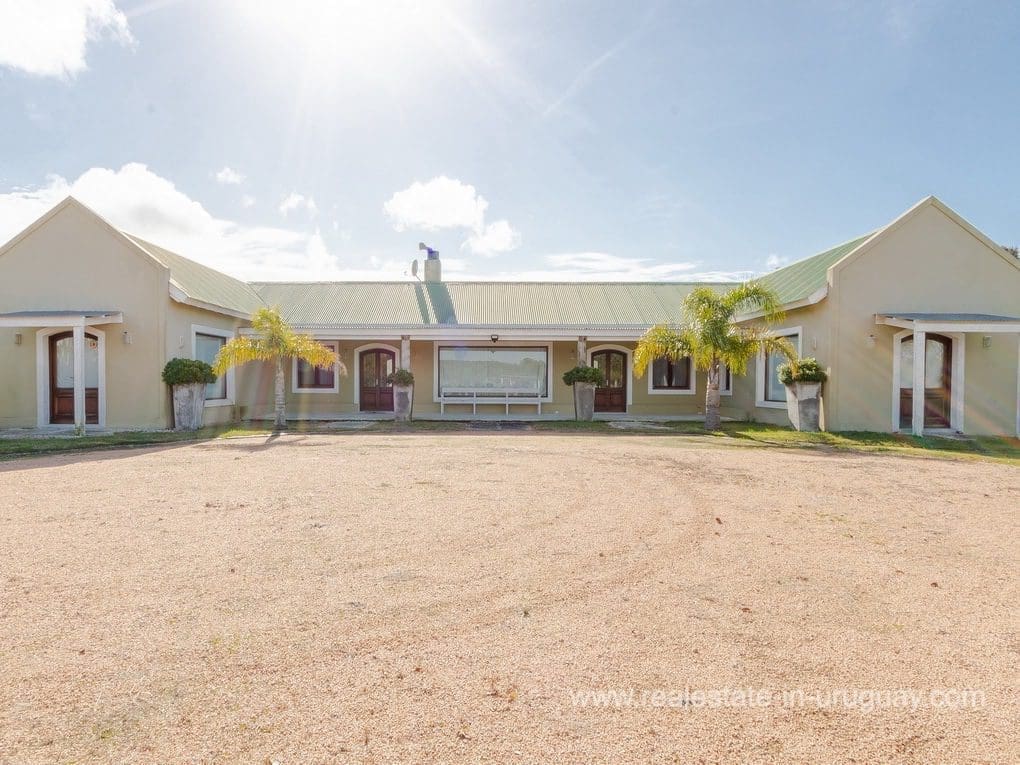 A spectacular renovated Farm 5 minutes from the Ocean and Manantiales with a rustic-style main house of traditional construction and very good quality affording views to the lake. It comprises five bedrooms, the master suite with a Jacuzzi. There is a spacious living room with windows overlooking two covered decks, dining room, large kitchen, WC, wood-burning stove, swimming pool, BBQ/grill, football pitch, and automatic sprinkler system. There is also a caretaker’s lodge, double garage, and utility room. Fully equipped. Located just a few meters from Highway 104 along an almost private road.