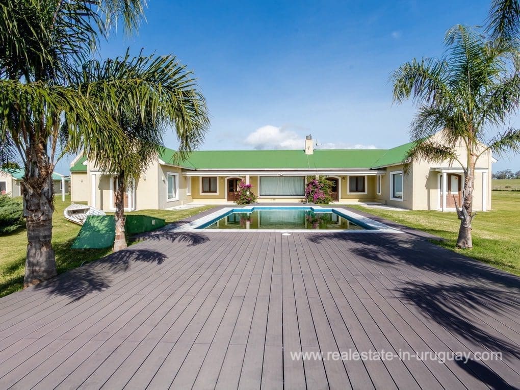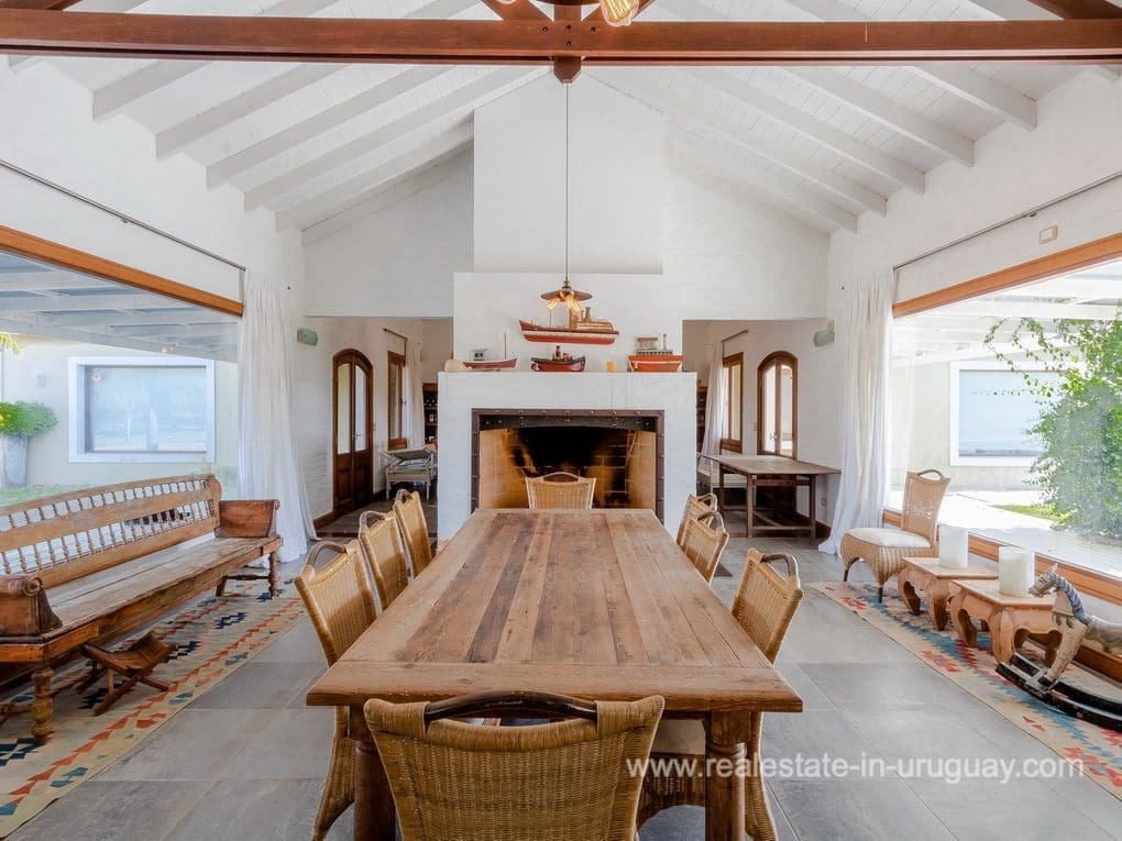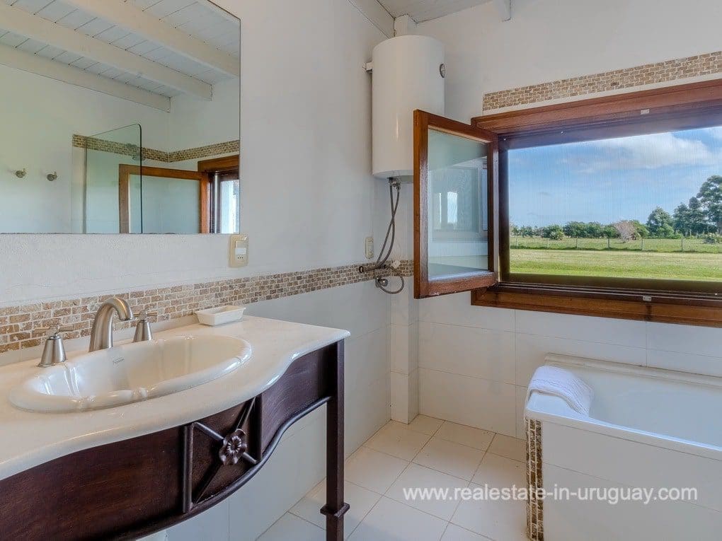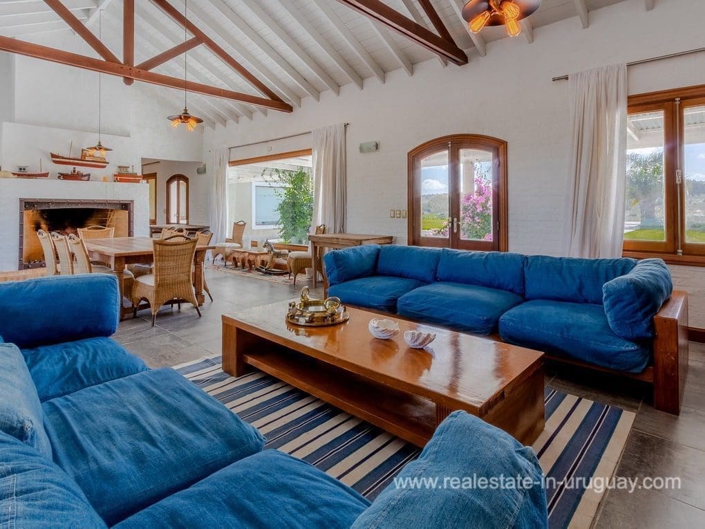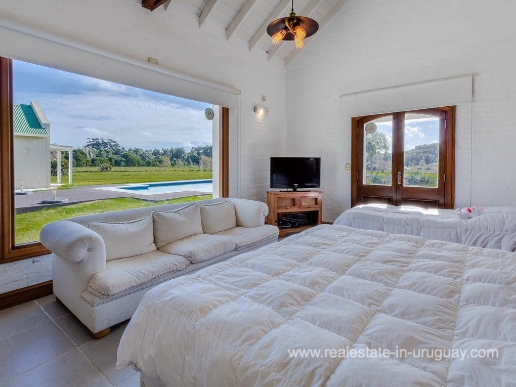 A spectacular renovated Farm 5 minutes from the Ocean and Manantiales with a rustic-style main house of traditional construction and very good quality affording views to the lake. It comprises five bedrooms, the master suite with a Jacuzzi. There is a spacious living room with windows overlooking two covered decks, dining room, large kitchen, WC, wood-burning stove, swimming pool, BBQ/grill, football pitch, and automatic sprinkler system. There is also a caretaker’s lodge, double garage, and utility room. Fully equipped. Located just a few meters from Highway 104 along an almost private road.