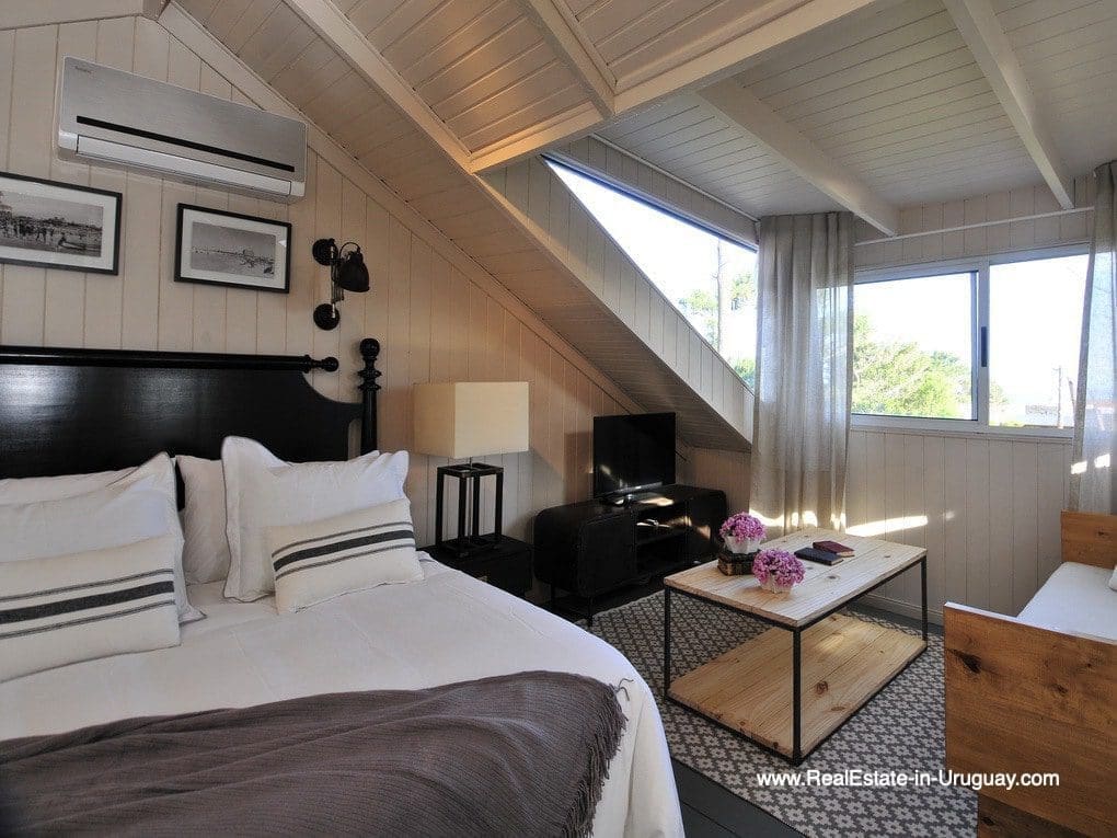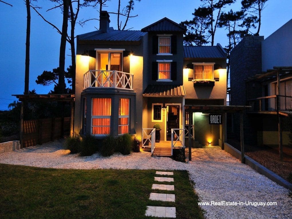 This in 2016 completely renovated house operating as a Boutique Hotel in Montoya by La Barra is located three blocks from the sea and beach in the exclusive area of Montoya, characterized by its peaceful surroundings of gardens and pine forests. The current owners of the Inn are focussing on design, culture and good living. Eclectic in style, it has the feel between an old countryside warehouse and an English gentlemen’s club from the 19th century. It comprises of a living area with a fireplace, separate large dining room, kitchen, four double bedrooms and a separate guest-house for four people and a nice garden with room to add a pool. In each suite, there is a private bathroom, satellite TV, inverter air conditioning, WIFI, minibar and safe. Its proximity to the sea and the shops in La Barra and Manantiales allow relaxation on the beach alongside a variety of gastronomic delights and buzzing nightlife. The property could be continued to run as a B&B or just used as a private home.