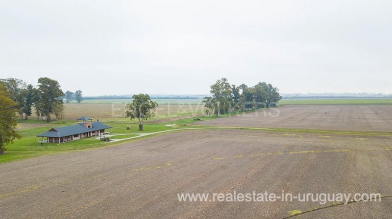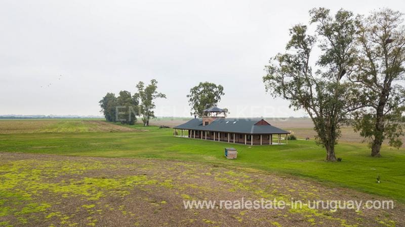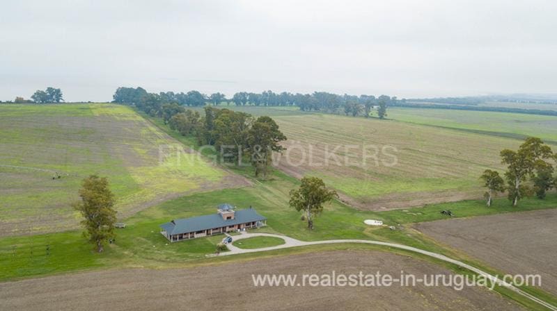 Productive land of the best quality in Uruguay. It has a water intake in the river for irrigation of crops, with underground hydraulic installation and several points of location of equipment. Much of the property in Carmelo Colonia is irrigated. Aged Eucalyptus in the perimeter, and well-leveled farms for cultivation. There are about 12 hectares of olive trees a little more than 10 years old in full production in Arbequina and Coratina varieties. Good general facilities and internal walkways. 50 kW three-phase UTE input. 72 HP electric pump for irrigation. Water intake, underground hydraulic network, and various irrigation accessories (Pivot, etc.) with various location intakes. Internal subdivisions. Household housing (like new) with desk. Tool shed with room and bathroom for temporary staff. Important inventory of machinery and tools included. Attached work facilities. Important main residence in very good condition and of recent construction covering an area of 500 m2, Australian style (surrounded by galleries) with partial mezzanine and second-level occupation. Outdoors about 200 m2 of galleries with barbecue. In ground floor living room with wood stove and integrated kitchen. Social bathroom and double circulation to the upper floor. On the ground floor, 3 bedrooms en Suite of generous proportions. Underfloor heating (gas) in social areas and radiators (with another boiler) for bedrooms. Central gas hot water (there is an underground tank of 200k of gas for the house) and direct water pool with pressure pump. On the second floor is a pool table games room with expansive views and two bedrooms that share a bathroom. On a third level the house has a covered gazebo. Fine carpentry, all windows with double glass thermopanel. 15 Kw generator set for the house. All immaculate and brand new, with only two years of use.