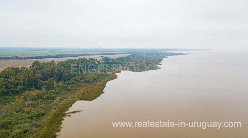 Property with excellent access from Route 21 near Carmelo. There are 172 hectares in two patterns. More than 700 m of exclusive coastline with the Rio de la Plata near Martin García Island. A little more than an hour’s navigation from El Tigre, Buenos Aires. Accessing from the local road we first find the staff’s facilities, and following the road for about 1000 m, we find access to the main house in an intimate and discreet environment, with great security and views. Few neighbors (in particular two neighboring boundaries) in an area doomed to high-intensity agricultural exploitation due to the quality of the soils and the availability of irrigation water.