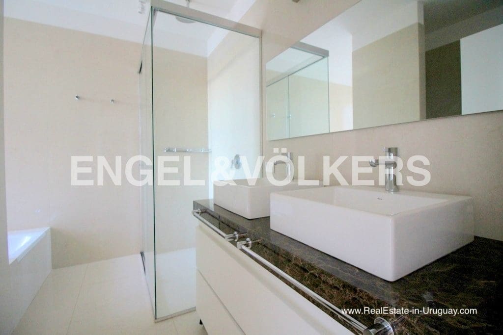 This modern spacious apartment in Punta Gorda Montevideo is located in an exclusive building in a privileged area on a high point with wonderful views to the sea and the bay of Punta Gorda and Pocitos. Spacious living room with windows from floor to ceiling with access to the terrace and magnificent clear views to the Rio de la Plata. There is large kitchen with first class appliances and laundry terrace. The private area consists of 3 bedrooms with a large master suite with sea views. The apartment has underfloor heating and A/C split systems. Two garages are included with this apartment.