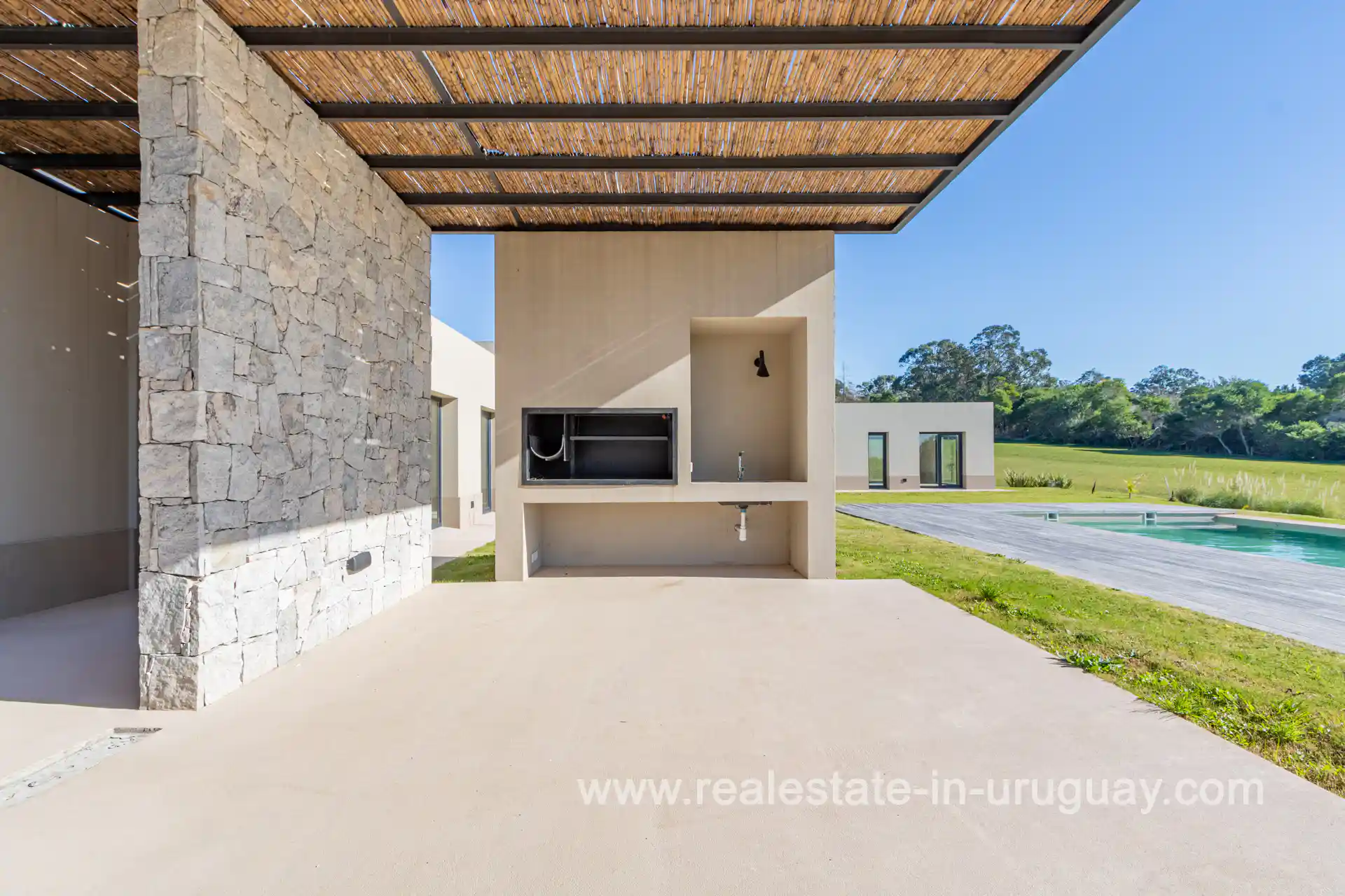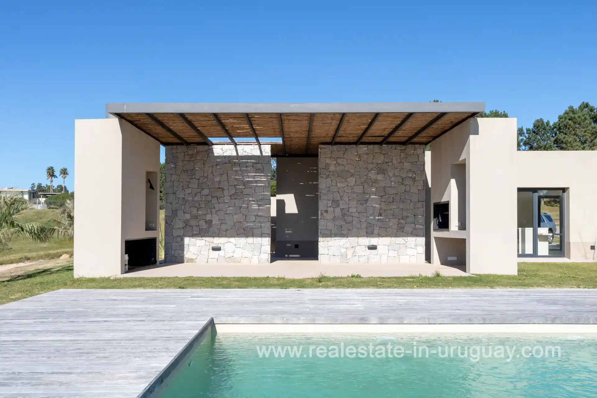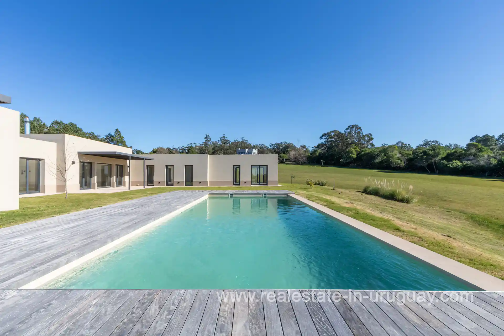 Brand New House in la Morada for sale, designed by renowned designer Monica Melhem and architect Donato Piscione, featuring 3 en-suite bedrooms, a powder room, a TV room, a spacious living room, a reception area, a dining room, a kitchen, a laundry room, a service bedroom, a covered grill area, an outdoor living space with stone walls and a large fireplace. Additionally, it has ample parking and boasts a covered area of 275 m2, terraces, and pergolas of 104 m2, a 12.5 x 5 meter pool with a 90 m2 deck, and a 10 m2 machine room. Don’t miss the chance to live in this paradise!