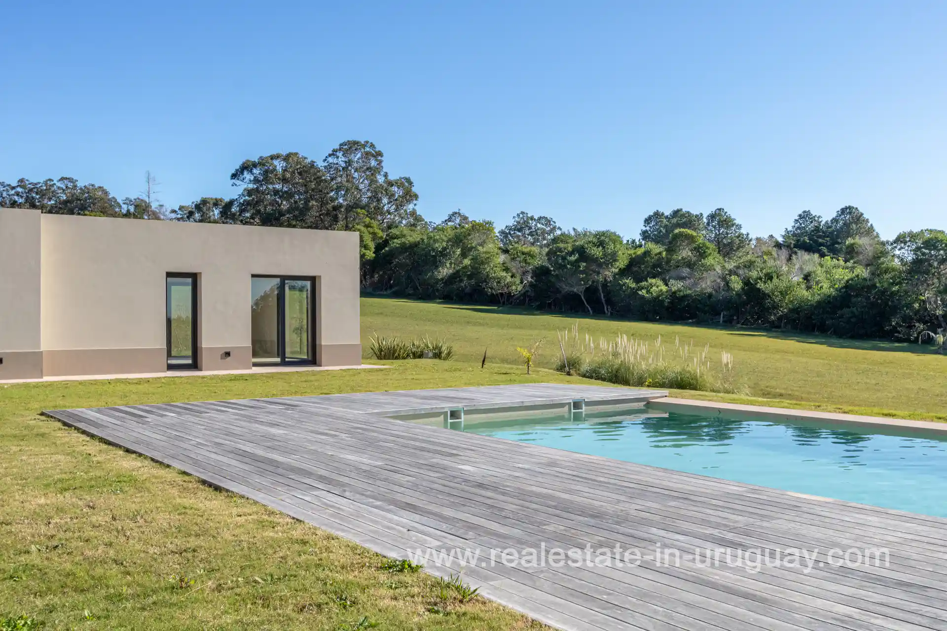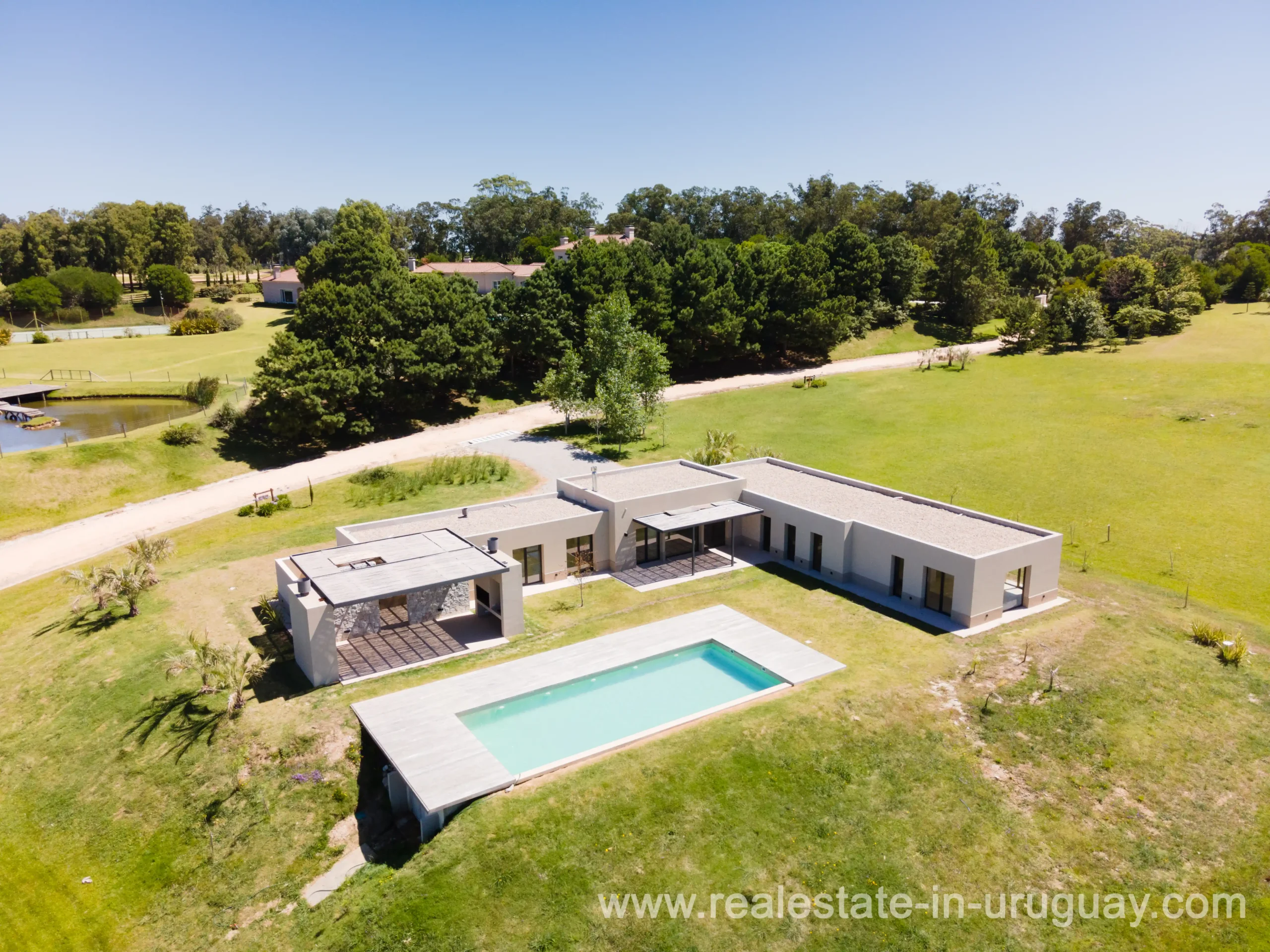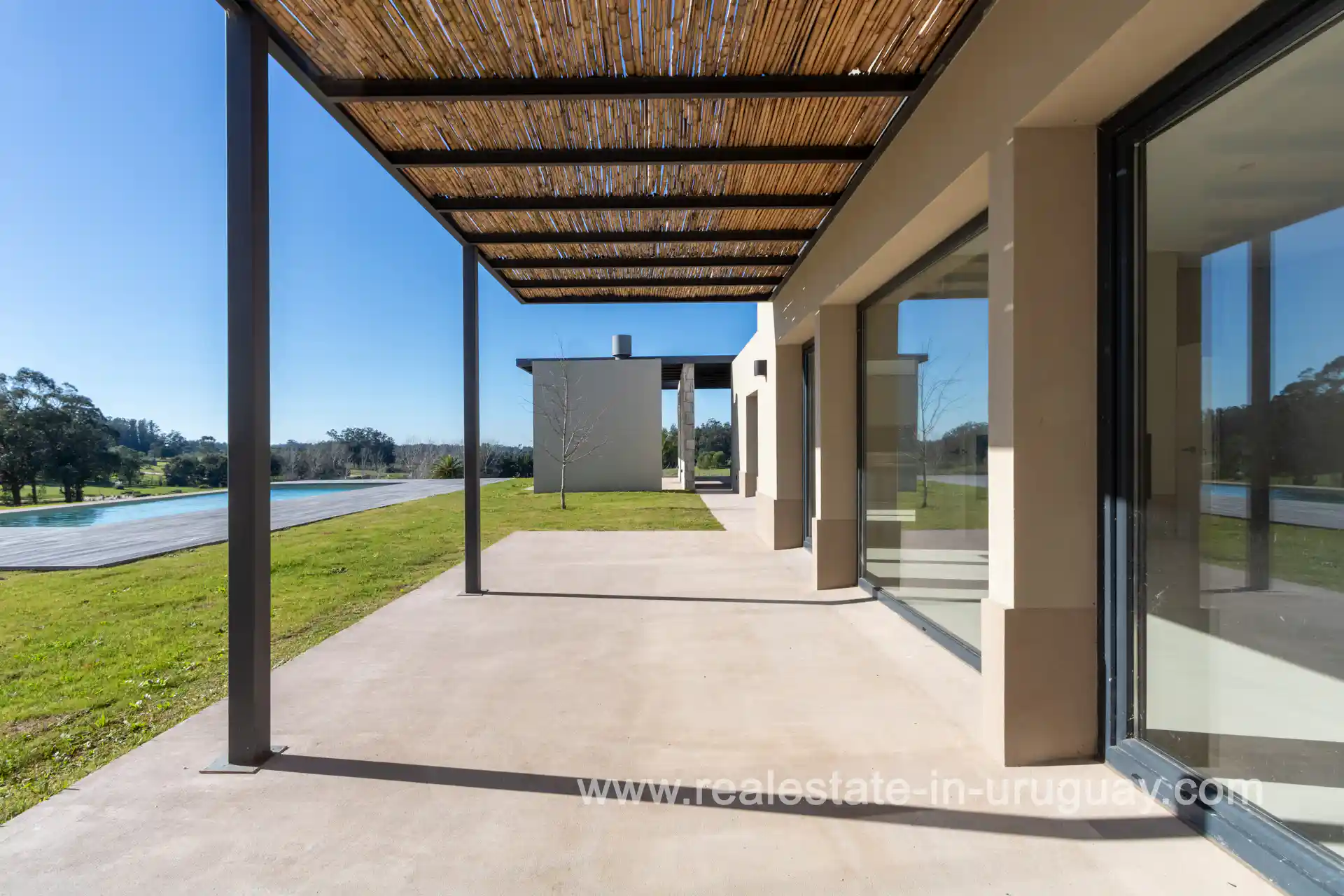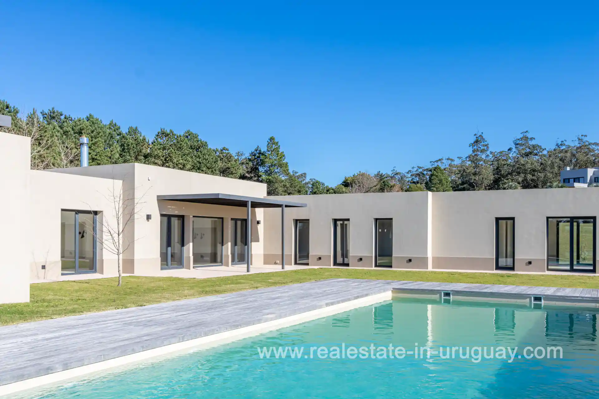 Brand New House in la Morada for sale, designed by renowned designer Monica Melhem and architect Donato Piscione, featuring 3 en-suite bedrooms, a powder room, a TV room, a spacious living room, a reception area, a dining room, a kitchen, a laundry room, a service bedroom, a covered grill area, an outdoor living space with stone walls and a large fireplace. Additionally, it has ample parking and boasts a covered area of 275 m2, terraces, and pergolas of 104 m2, a 12.5 x 5 meter pool with a 90 m2 deck, and a 10 m2 machine room. Don’t miss the chance to live in this paradise!