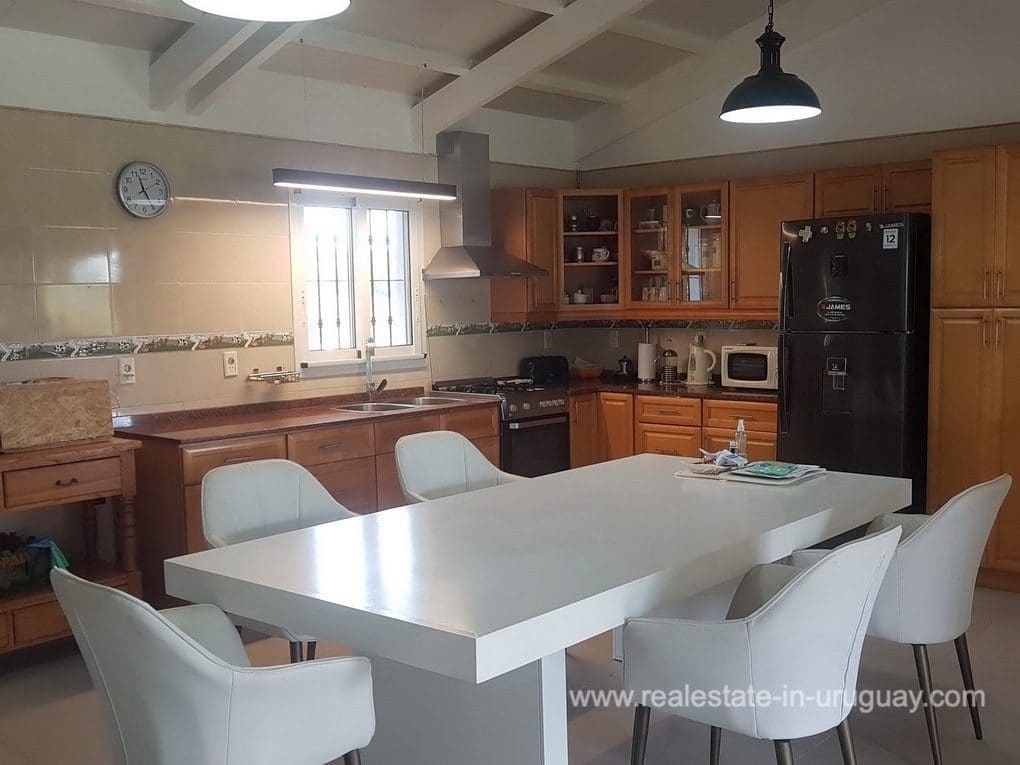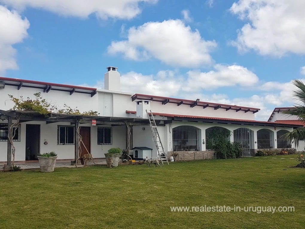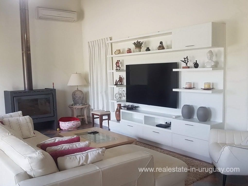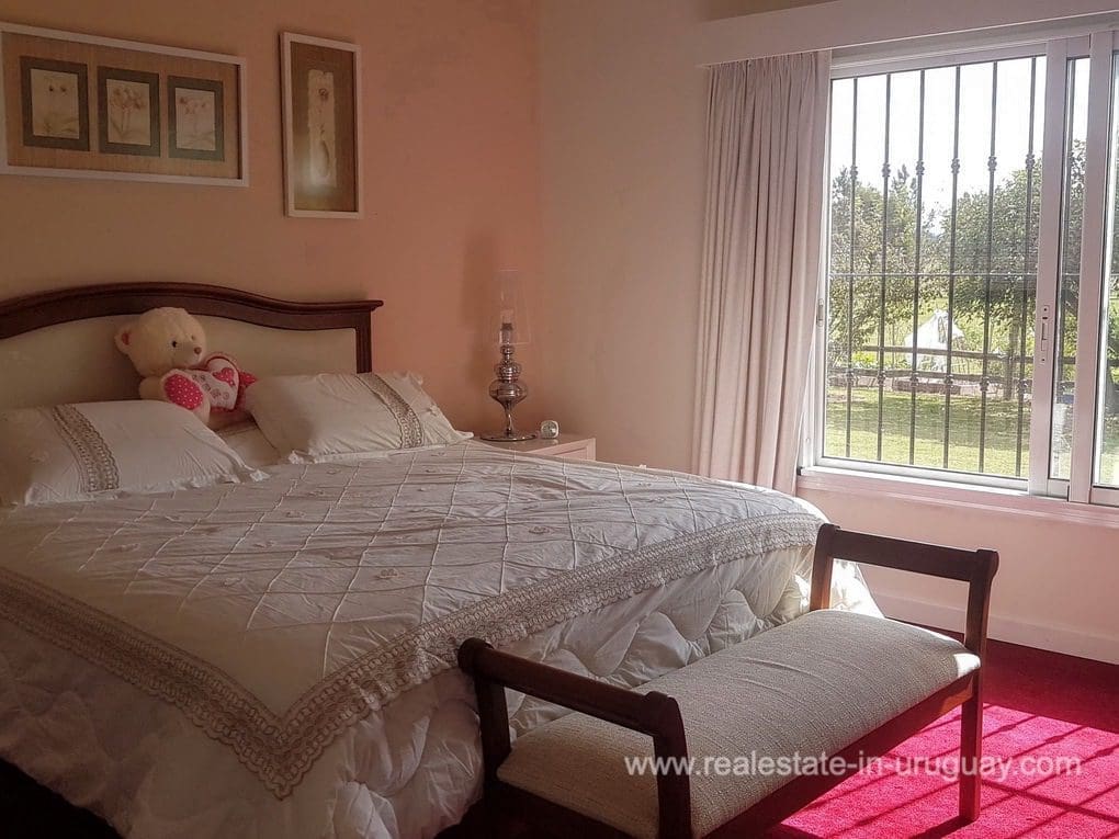 A Finca in Pueblo Eden, located approximately 45 km from Punta del Este in a compound with 16 Fincas. It comprises a very good quality 300m2 main house for living in all year round with four bedrooms; three of which have en suite bathrooms, WC, gymnasium, spacious kitchen, living room with high-performance wood-burning fireplace, swimming pool, large deck with covered BBQ/grill and air conditioning in all rooms. The property also has a utility room and a shed with a double garage. It is situated on a 5-hectare plot with fruit trees, a vegetable garden, a chicken coop, and more than 20 varieties of trees. It features exceptional panoramic views from all rooms, and has good access, electricity, internet, and well water.