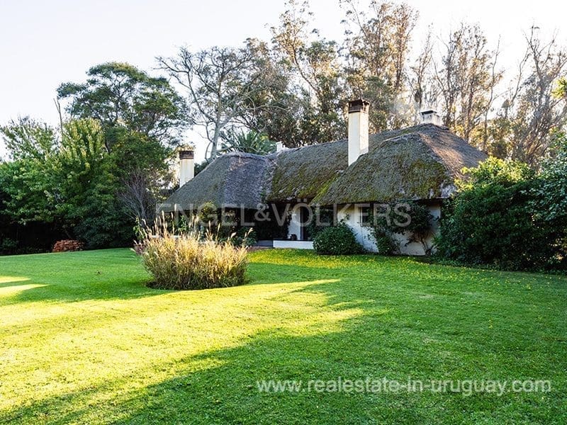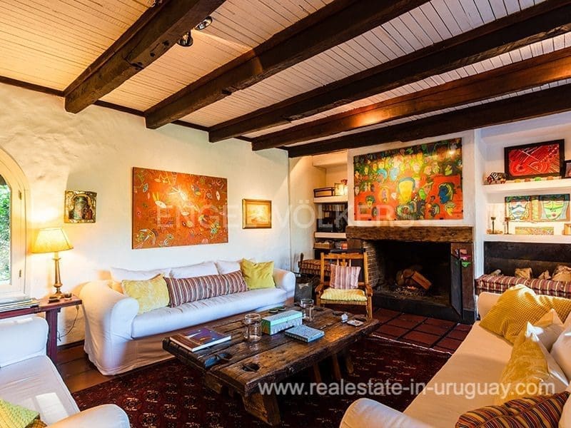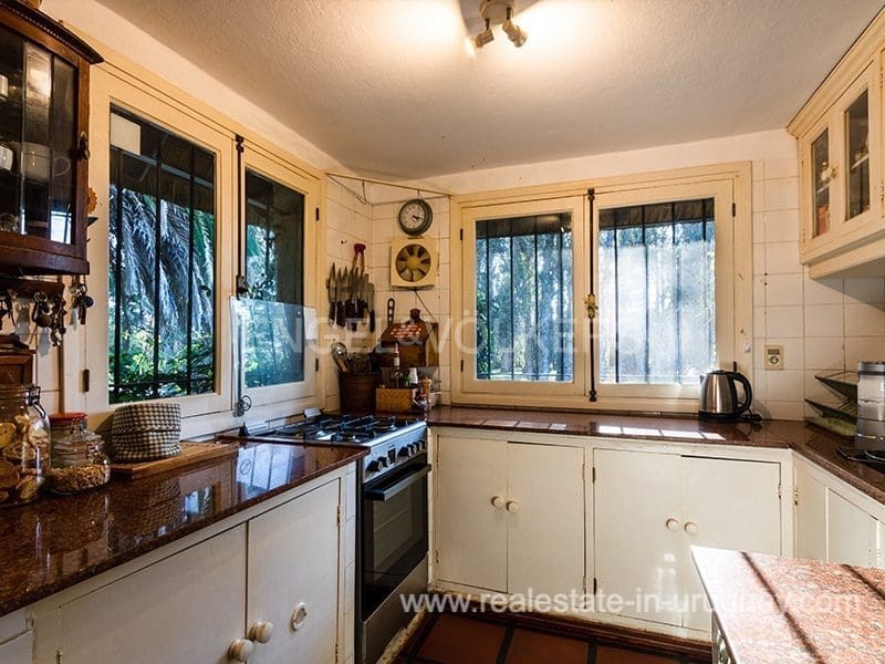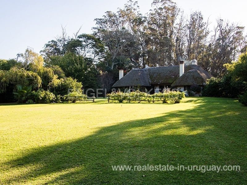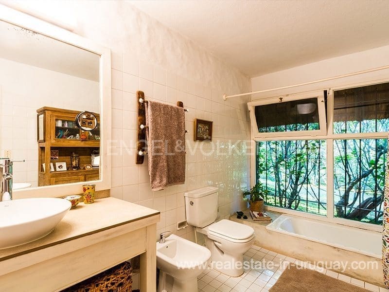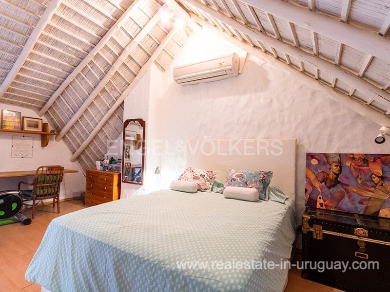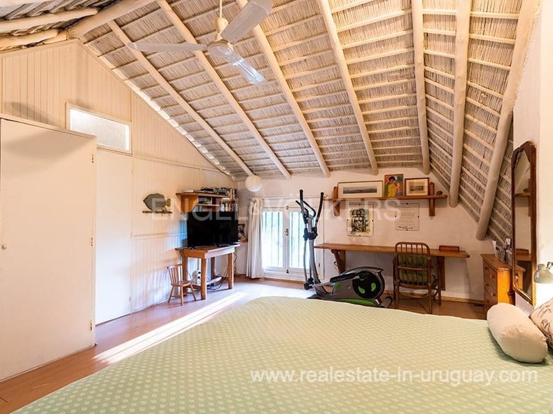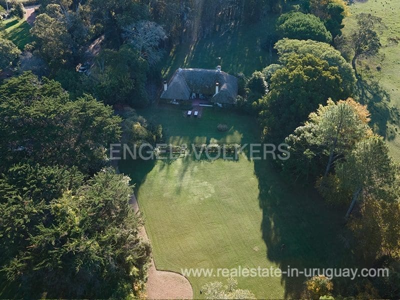 Noted for its location less than 5 minutes from the sea, we find this traditional finca by beautiful Punta Ballena, which appears to be in the middle of the countryside. It sits on 5 hectares surrounded by unique landscaping with all kinds of indigenous and fruit trees. There is a house with a thatched roof with some conservation details but of excellent construction. On the ground floor, there is a living room with a wood-burning stove, a kitchen, a dining room, and an en-suite bedroom. Upstairs, there are two further bedrooms with two bathrooms and a study. There is a fully equipped guest house and an additional guest room. Ideal for a “family and friends” housing project or for an urban subdivision.