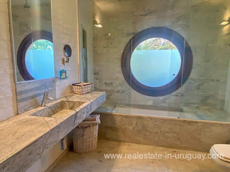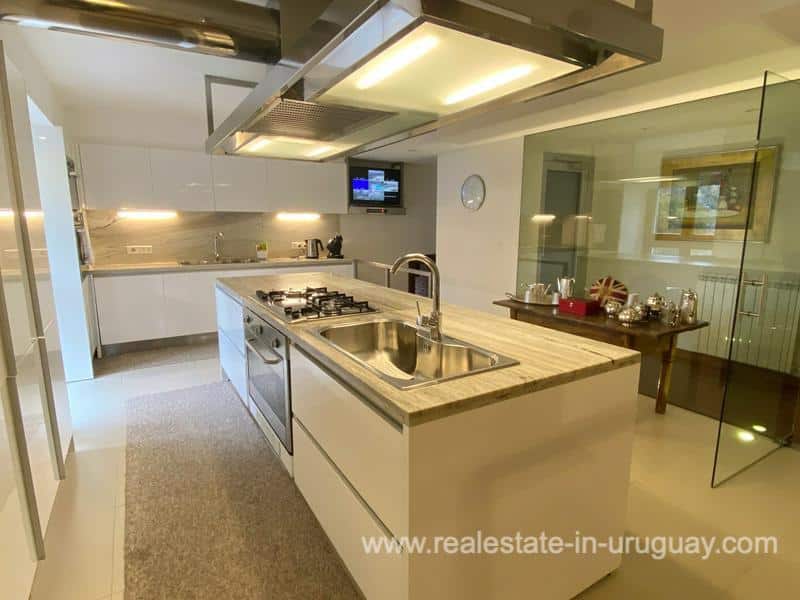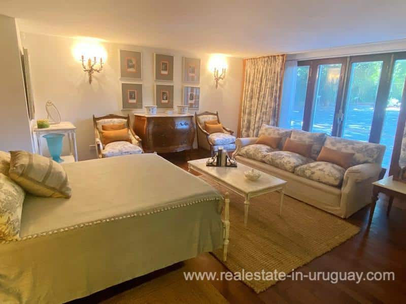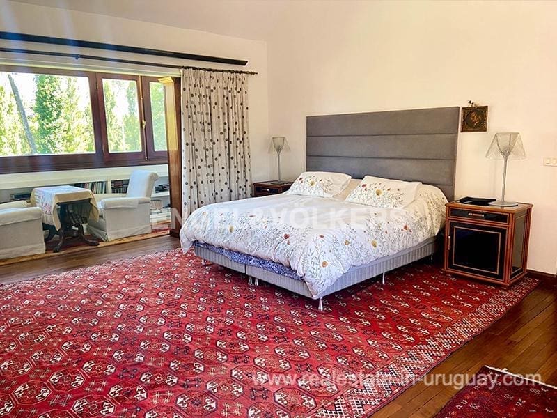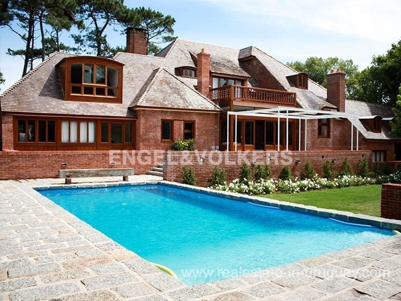 You will find this traditional villa with modern upgrades in El Golf area of Punta del Este located on one of the most prestigious street. This unique mansion has been lovingly restored with exquisite taste over a period of more than two years. It comprises fine materials, which are practically impossible to acquire nowadays and maintains all its original oak and laurel carpentry. The main house consists of a spacious living room with wood burning stove, dining room for 18 people, winter living room with fireplace, state-of-the-art gourmet kitchen with dining room, master suite and four large bedrooms with en-suite bathrooms. There are also two staff bedrooms, an elevator and wonderful surrounding terraces with access to a large swimming pool and fabulous grill area with kitchen. In another part of the magnificent garden, there is a contemporary style guest-house. The property boasts a home automation system with eight security cameras and amazing lighting. Extras include: central heating and hot water, air conditioning, parking for six cars and much more, making this an ideal property for living all year round or for spending unforgettable holidays in the most traditional and elegant area of Punta del Este.