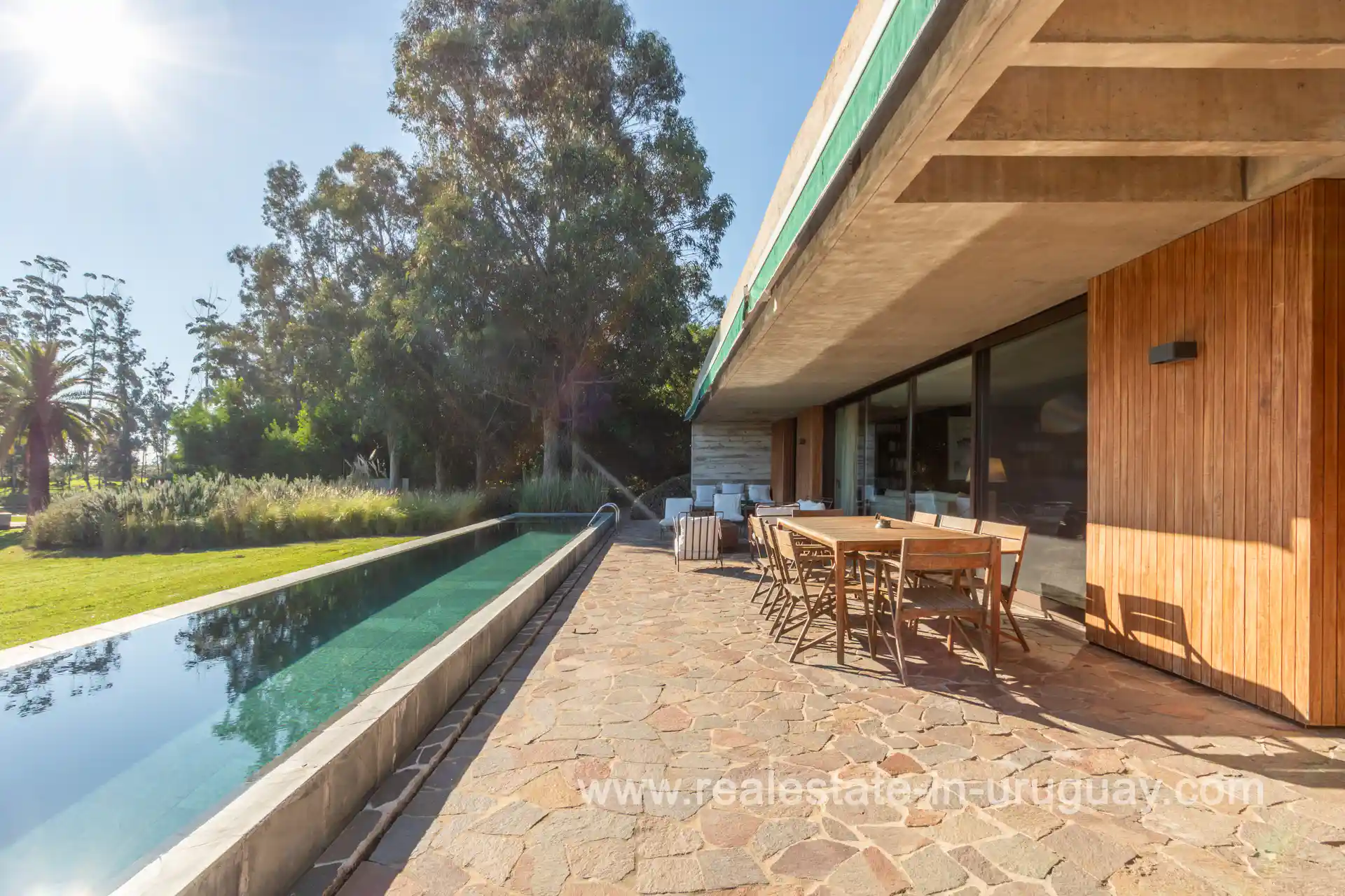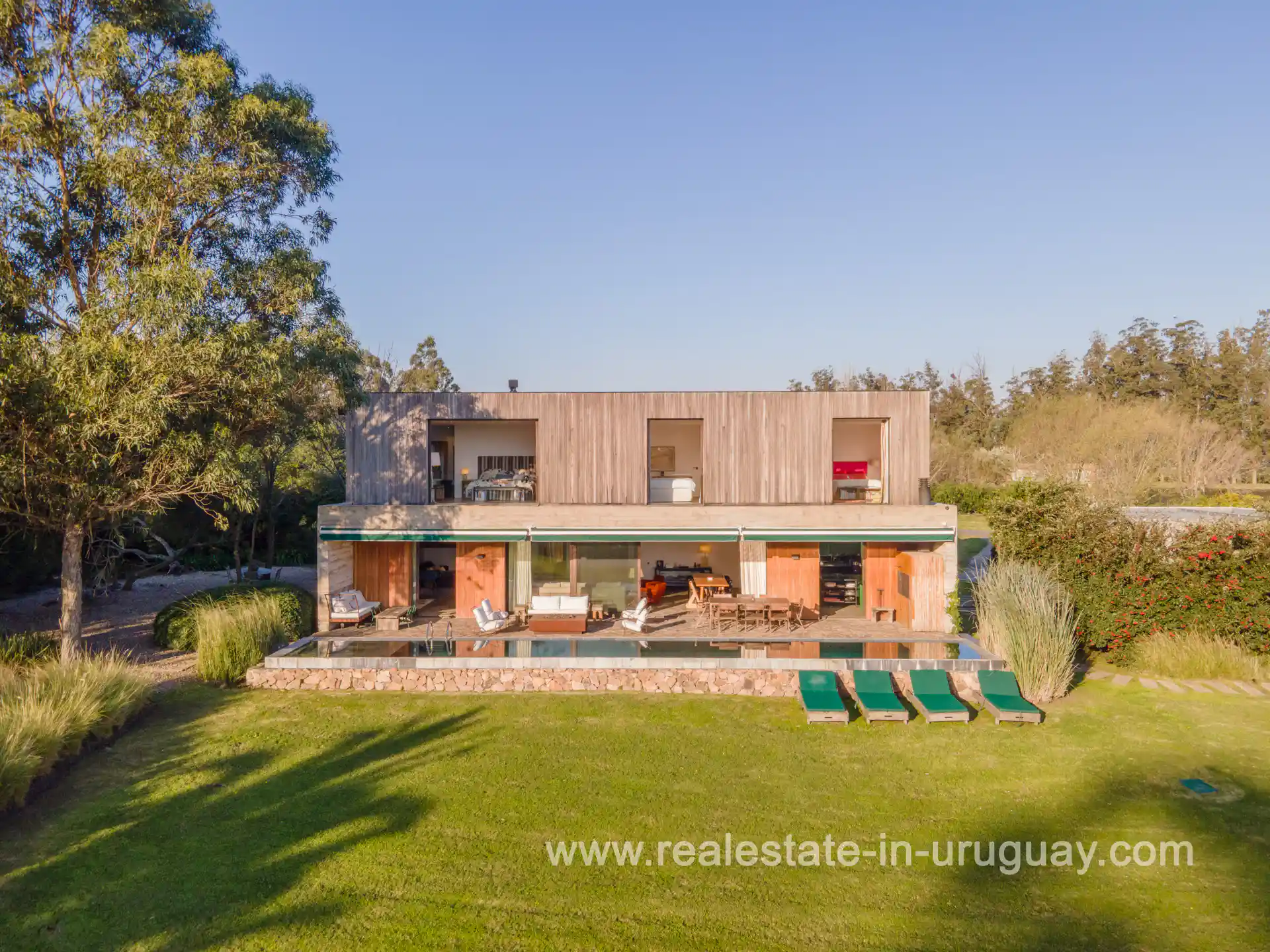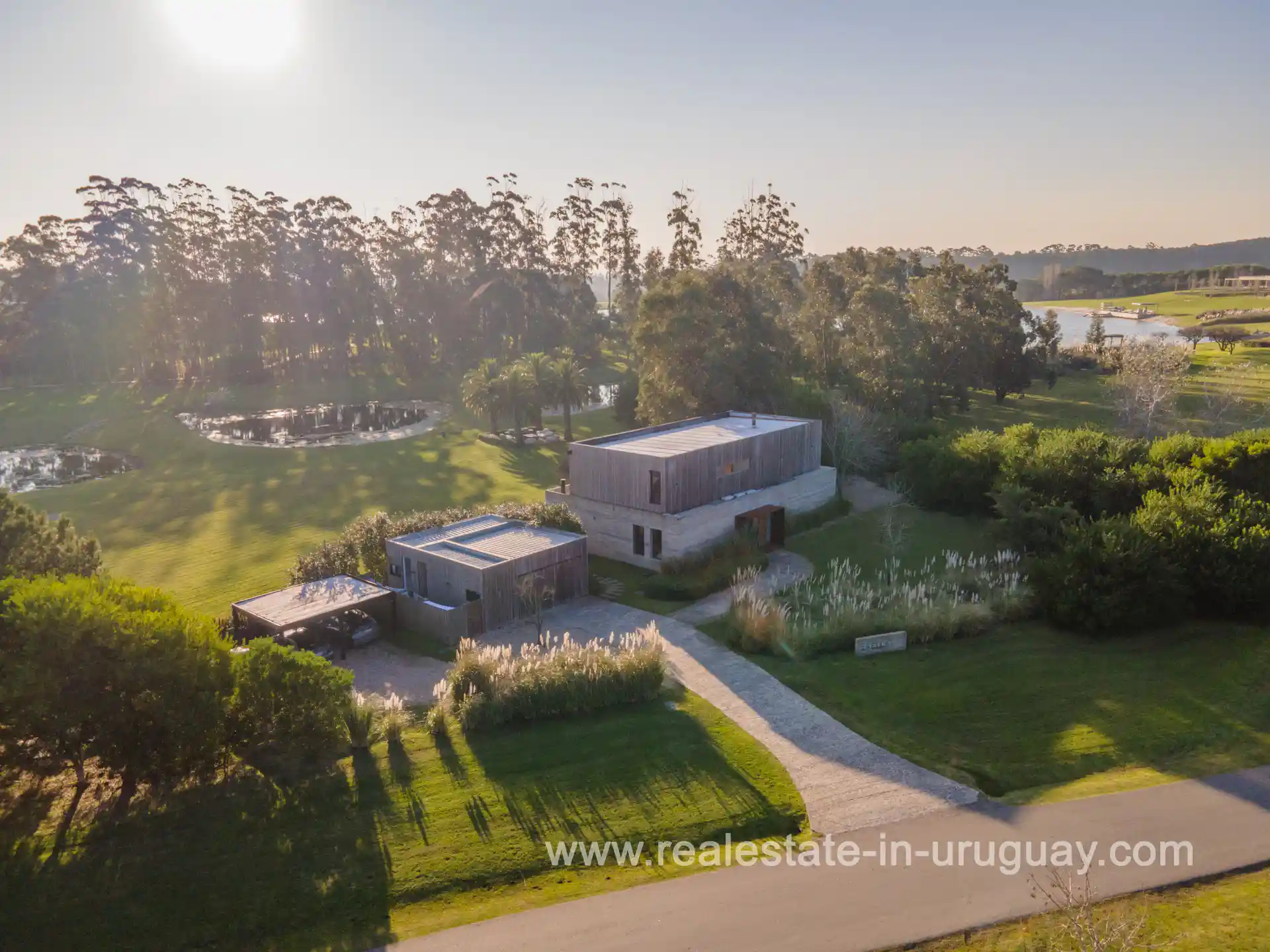 Strategically located, just 15 minutes from La Barra and 25 minutes from the emblematic Punta del Este or José Ignacio, this prestigious and secure gated community of renown fuses luxury in a natural and peaceful environment. The house is located on a privileged lot that guarantees privacy, views over the water of the lagoons and the golf course, and a north orientation that captures the warm sunlight throughout the year. Distributed on two floors with a modern design, but warm at the same time, it has an entrance hall, toilette, living-dining room, playroom, kitchen, and bedroom en suite on the ground floor. On the upper floor, there is a spacious master suite and two large bedrooms with a full bathroom. Outside, there is a barbecue, dining room, living room and swimming pool, as well as another deck further away with a fire pit to enjoy nice outside evenings. It also has a closed garage for two cars, underfloor heating, and hot/cold ducted air conditioning. The neighborhood offers a wide range of amenities including a restaurant, swimming pools, a river club, an 18-hole golf course designed by Arnold Palmer, skeet shooting, a tennis court, an equestrian center, heliport, among many other options, as well as an international airstrip for small planes. In short, this home provides a serene and safe haven to enjoy all year round, where privacy, nature, and comfort combine in perfect harmony. If you wish to see this house on an exclusive lot in Fasano, please contact us.