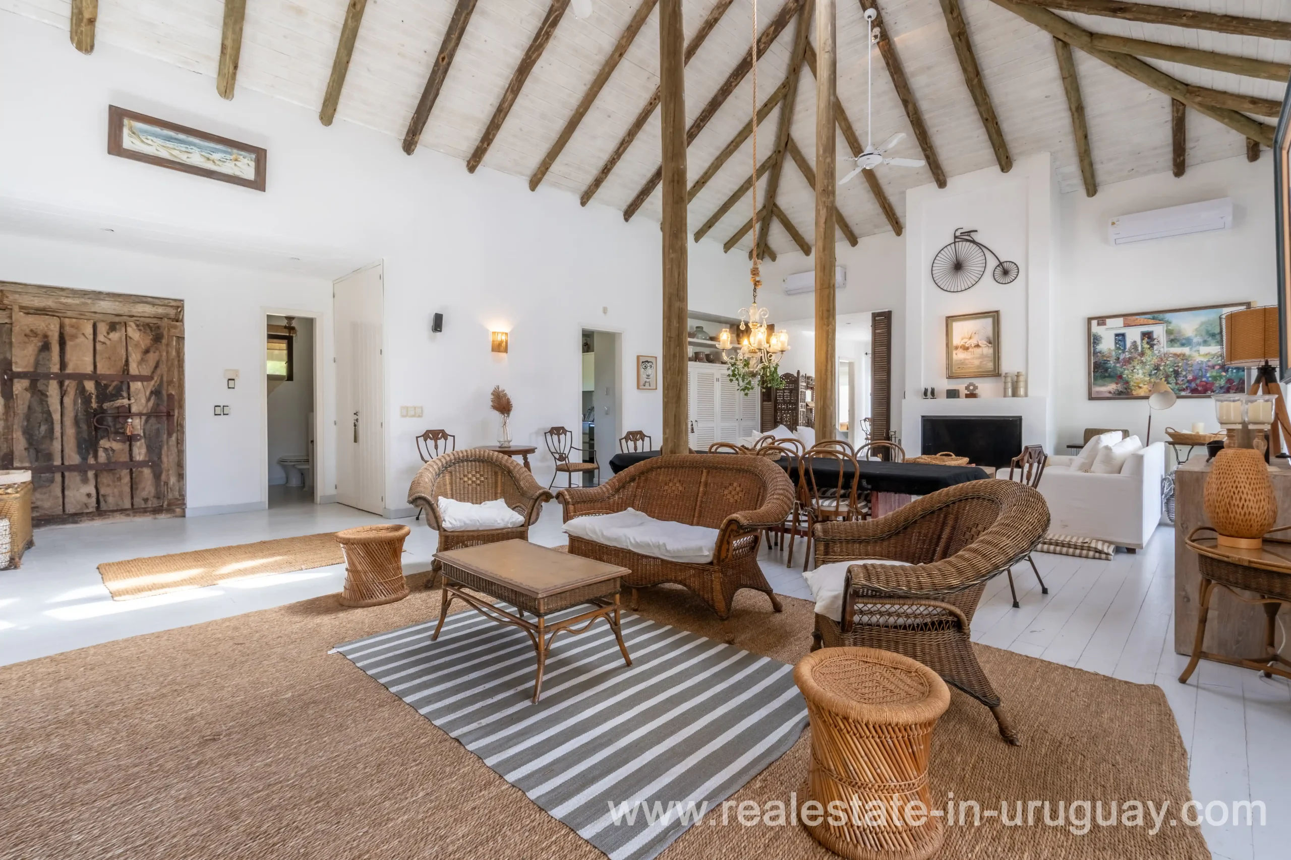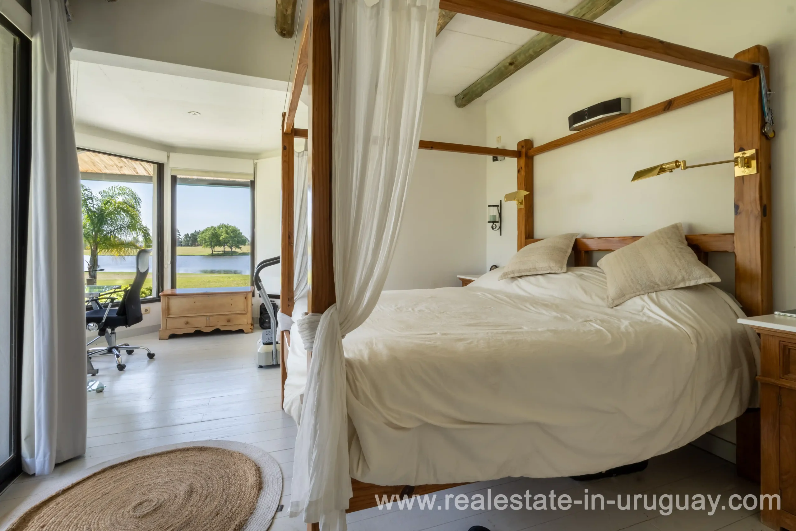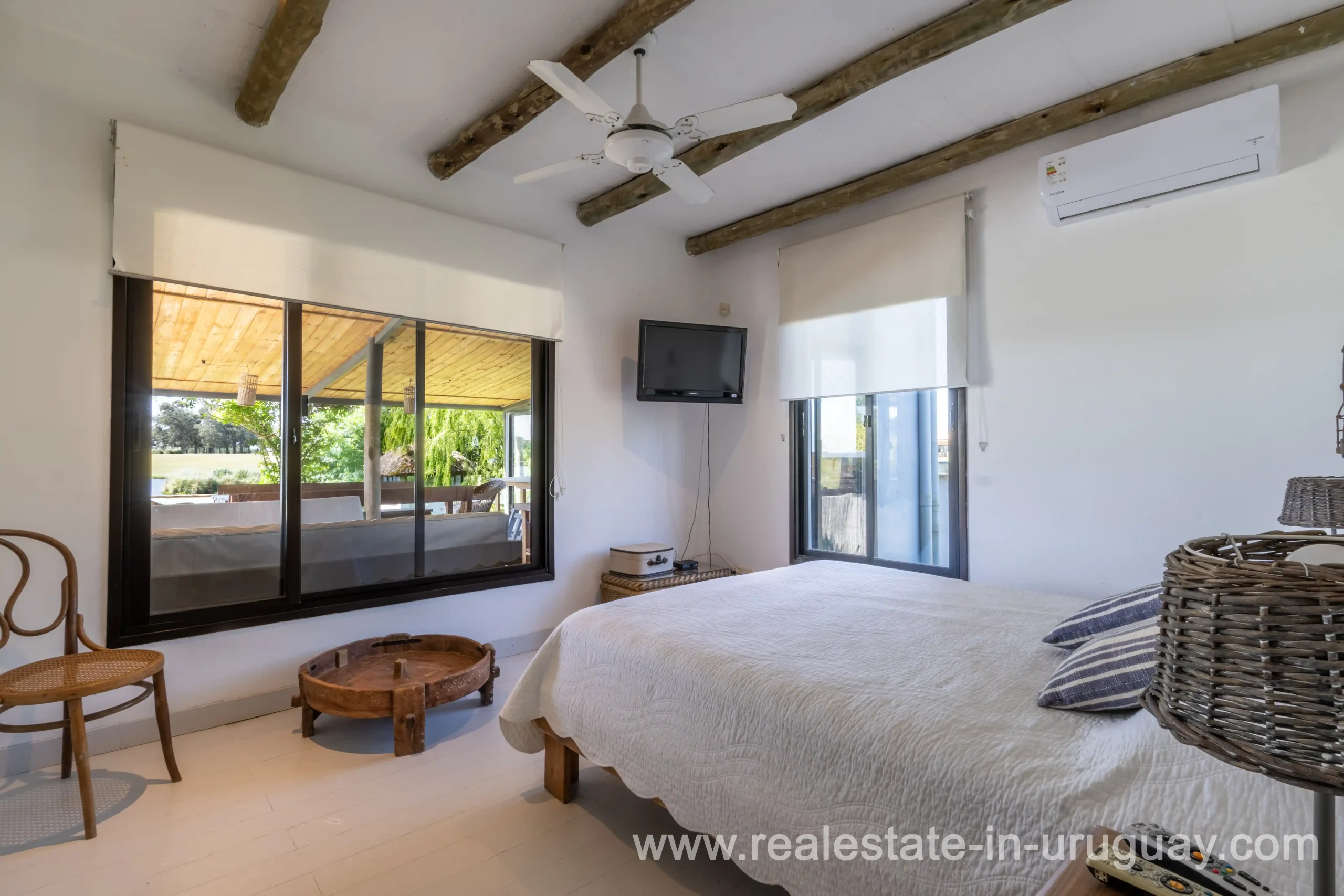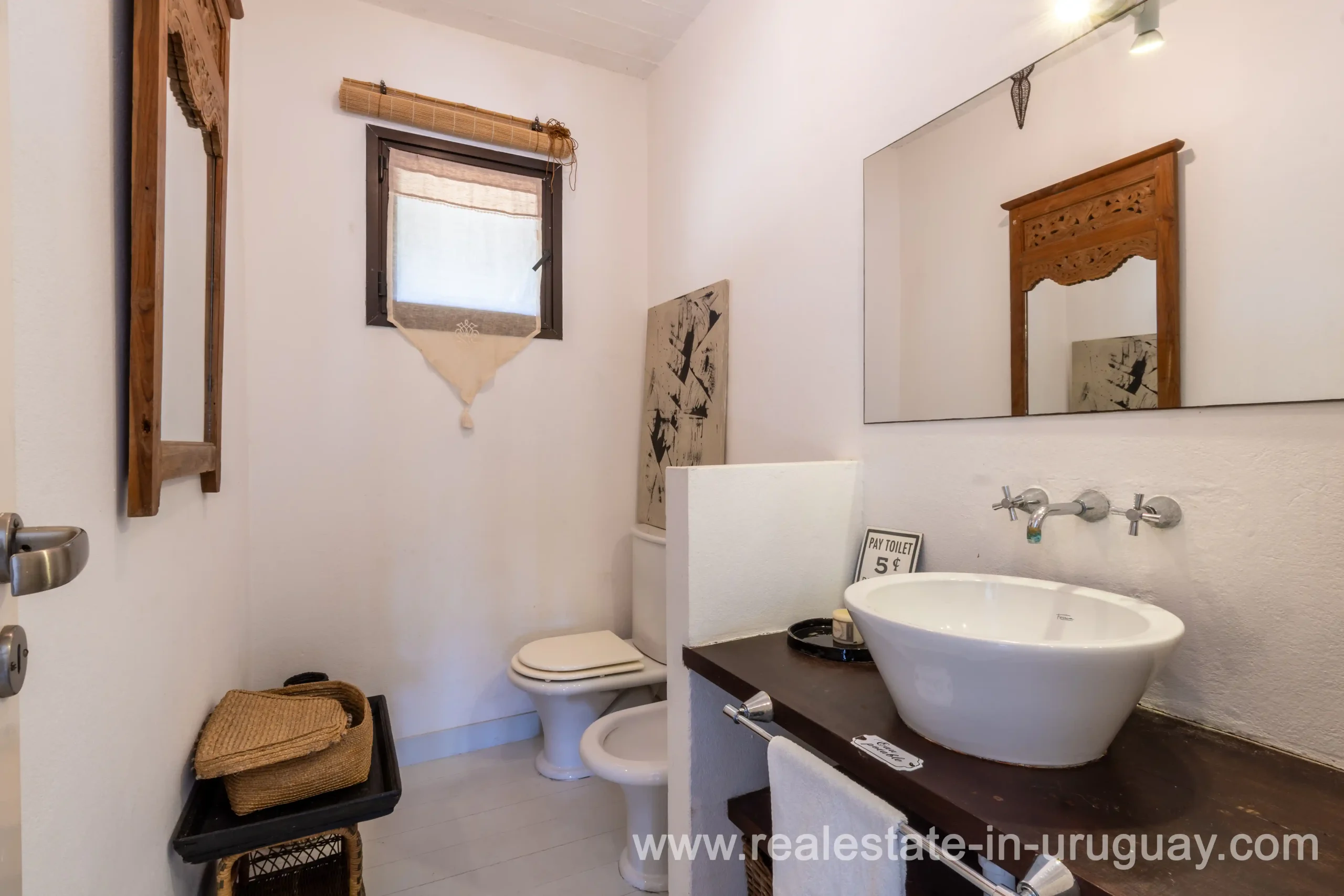 In the private gated community El Quijote, ten minutes from La Barra, we offer this property in a unique location within the private neighborhood. On first impression, its direct view of the central lagoon stands out, plus the vegetation that surrounds it and the sunset behind it due to its northwest orientation. The construction, designed by the renowned architect Pachi Firpo, combines perfectly with nature. It has a very spacious deck with a barbecue/grill and different areas for chairs and tables, plus a pool, overlooking the lagoon. As for its layout, it consists of a spacious living/dining room in the center, plus a recently renovated defined kitchen. At the sides, there are two bedrooms with en suite bathrooms in each wing, totaling four bedrooms. Of those, two have double beds, and two, have single beds. Also, next to the kitchen, there is a staff bedroom with a bathroom. There is also a complete laundry room to one side next to the open-covered garage. The construction is traditional and very well-maintained, and the house is naturally bright due to its windows and skylights. The house has two lots, one on which it is situated, and one at the rear. Contact us for more information.