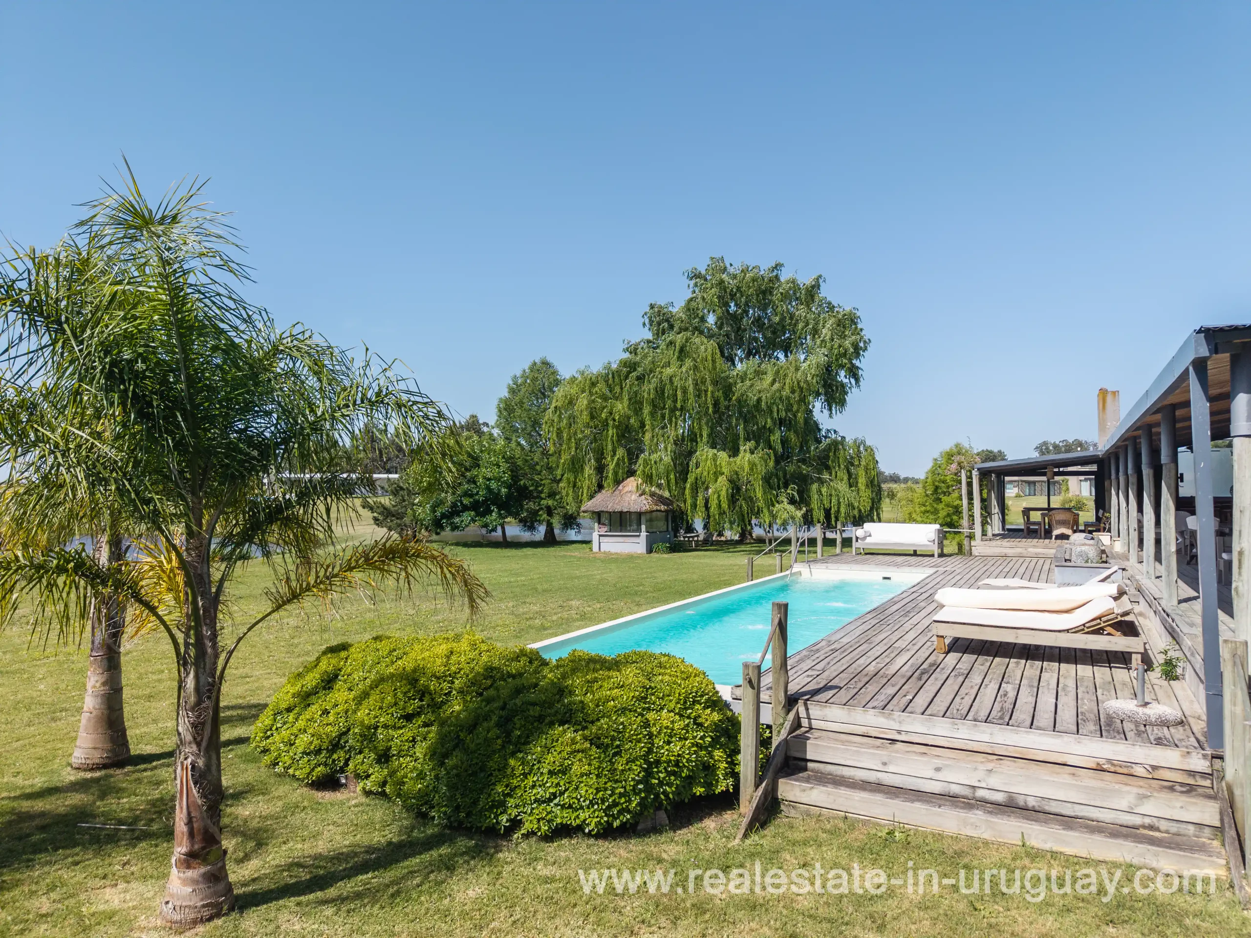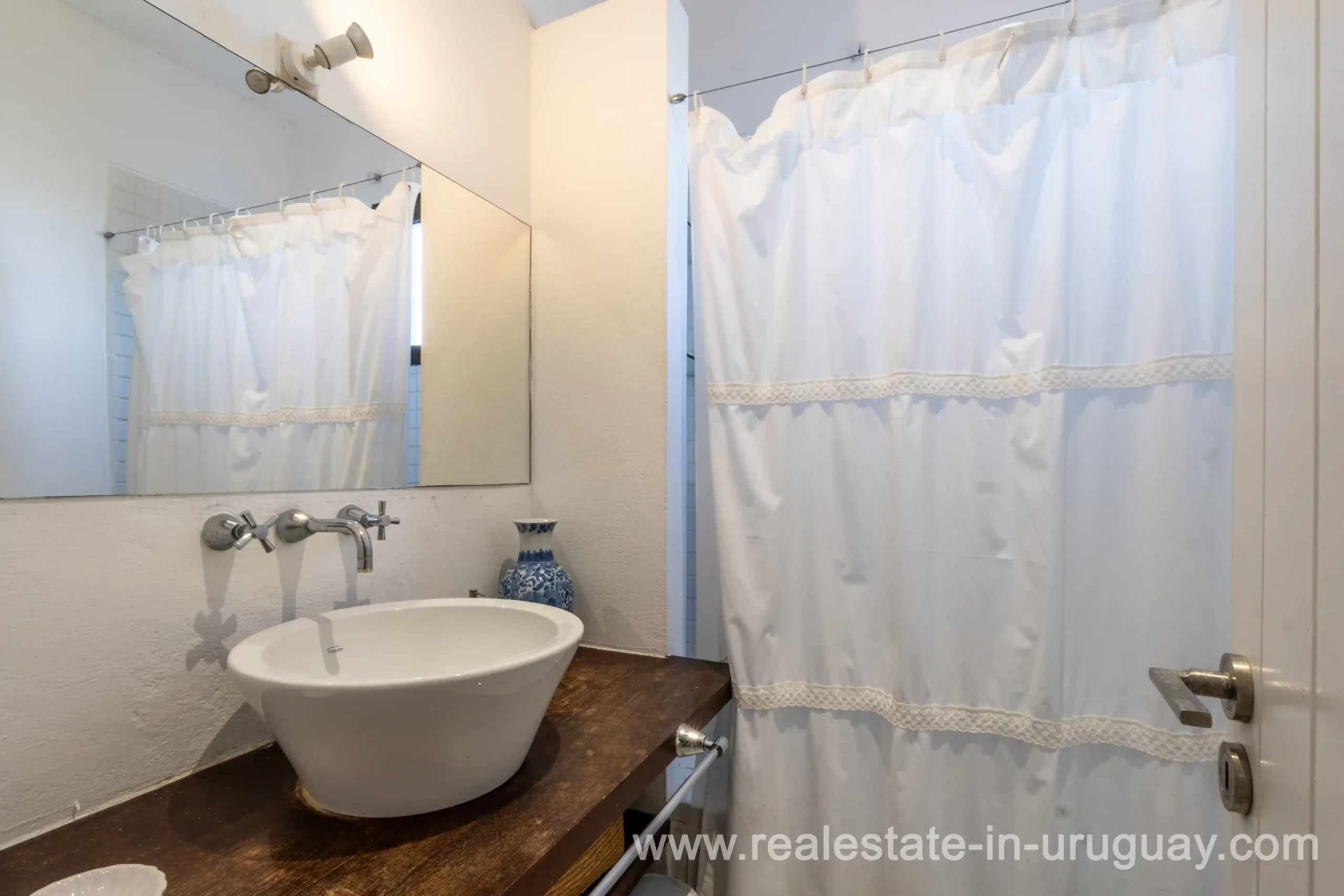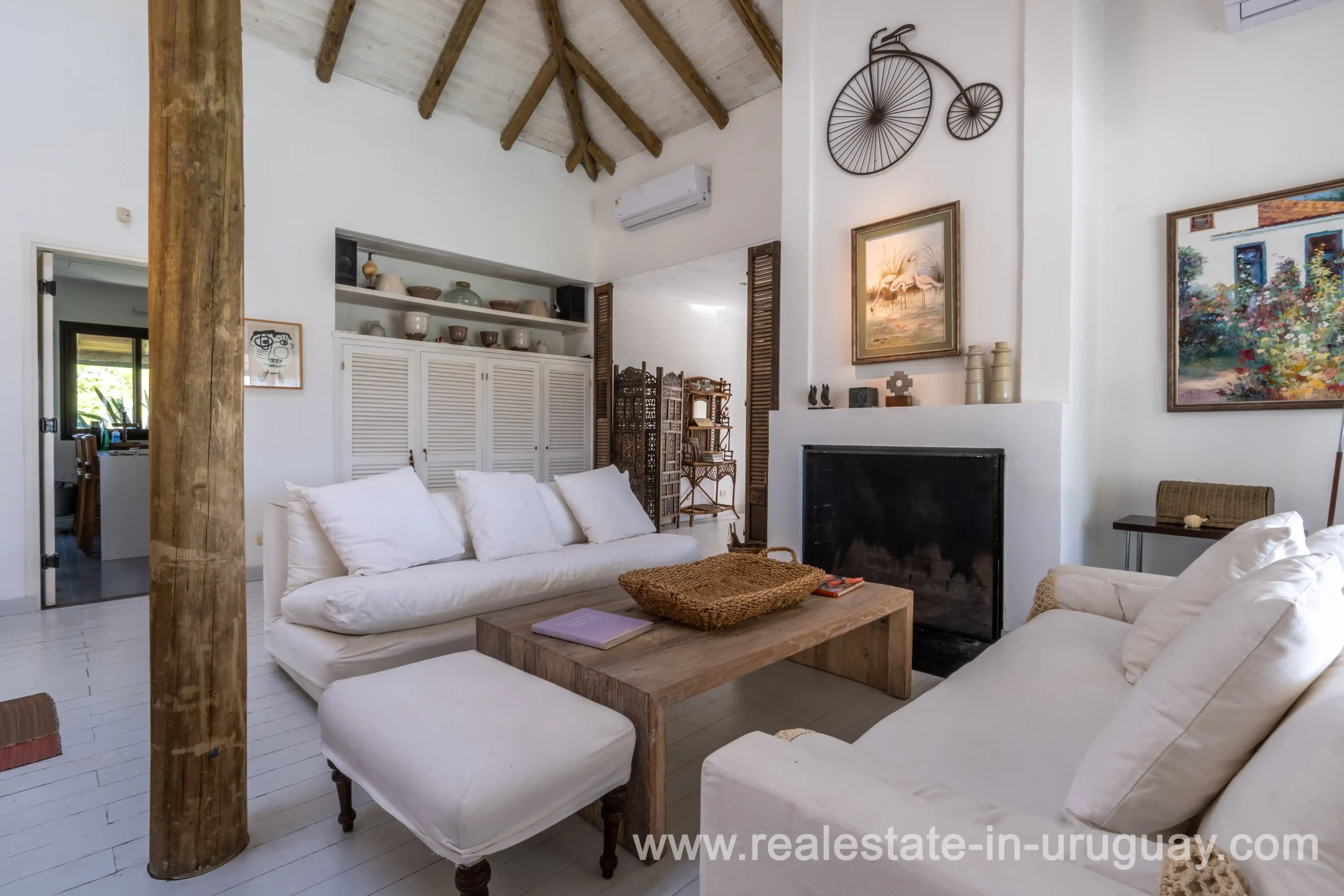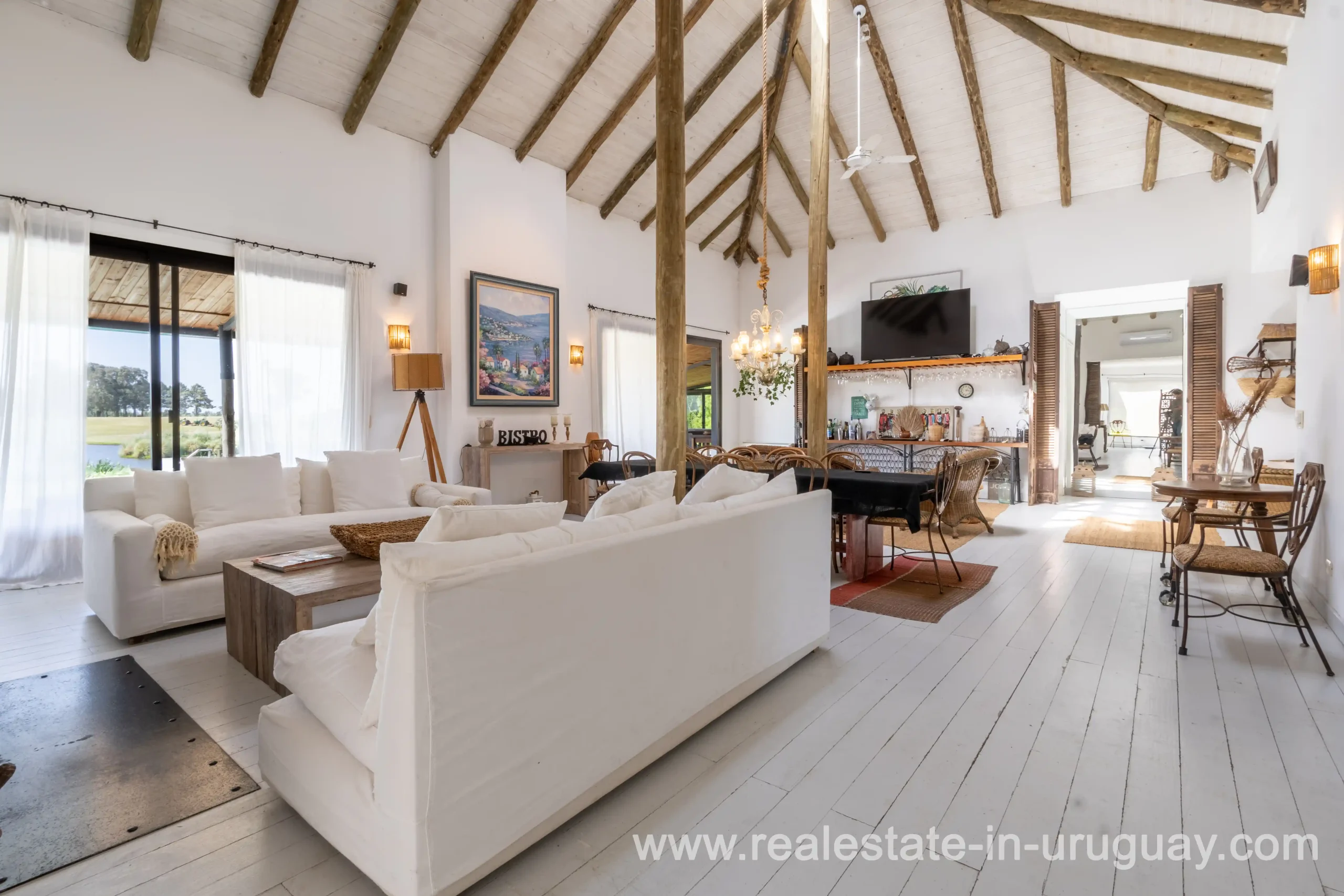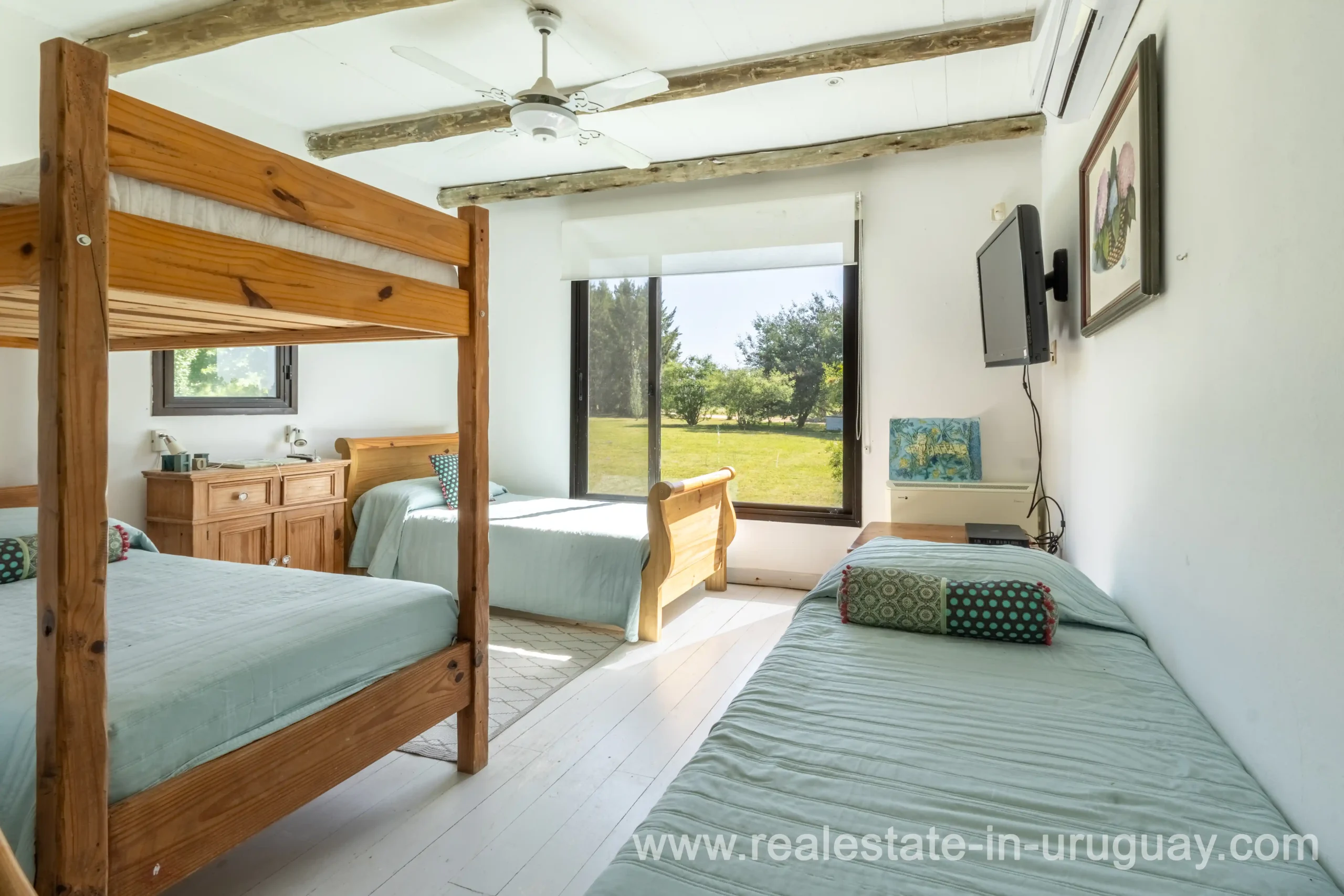 In the private gated community El Quijote, ten minutes from La Barra, we offer this property in a unique location within the private neighborhood. On first impression, its direct view of the central lagoon stands out, plus the vegetation that surrounds it and the sunset behind it due to its northwest orientation. The construction, designed by the renowned architect Pachi Firpo, combines perfectly with nature. It has a very spacious deck with a barbecue/grill and different areas for chairs and tables, plus a pool, overlooking the lagoon. As for its layout, it consists of a spacious living/dining room in the center, plus a recently renovated defined kitchen. At the sides, there are two bedrooms with en suite bathrooms in each wing, totaling four bedrooms. Of those, two have double beds, and two, have single beds. Also, next to the kitchen, there is a staff bedroom with a bathroom. There is also a complete laundry room to one side next to the open-covered garage. The construction is traditional and very well-maintained, and the house is naturally bright due to its windows and skylights. The house has two lots, one on which it is situated, and one at the rear. Contact us for more information.